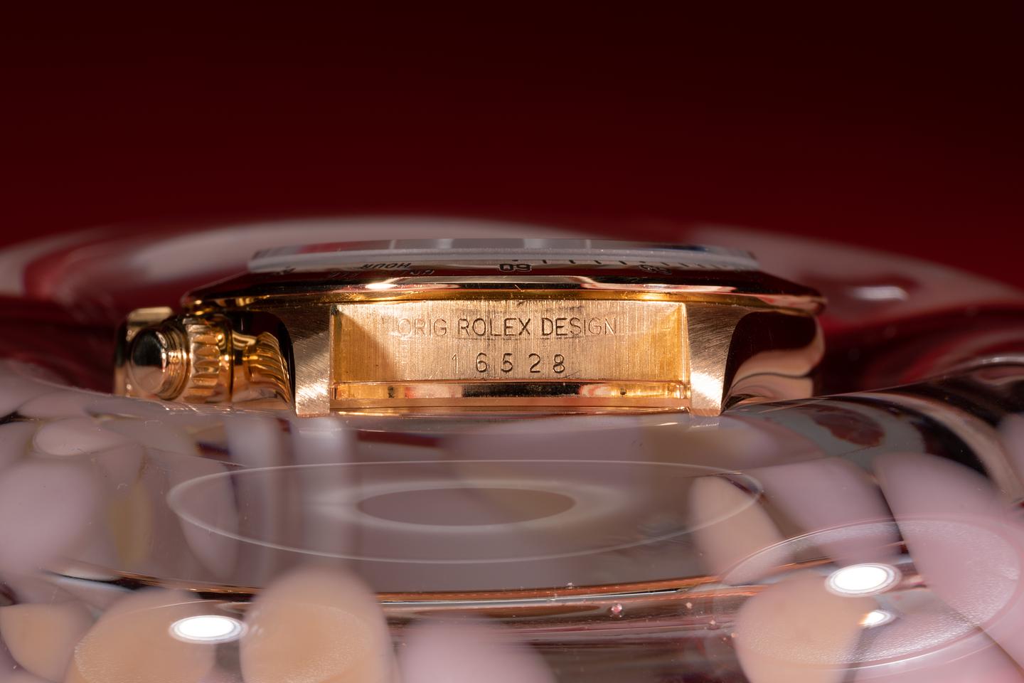 Bracelet: The 13 link 18K yellow gold Oyster bracelet is excellent showing extremely light stretch for its age. The clasp is stamped with a 1993 date code.