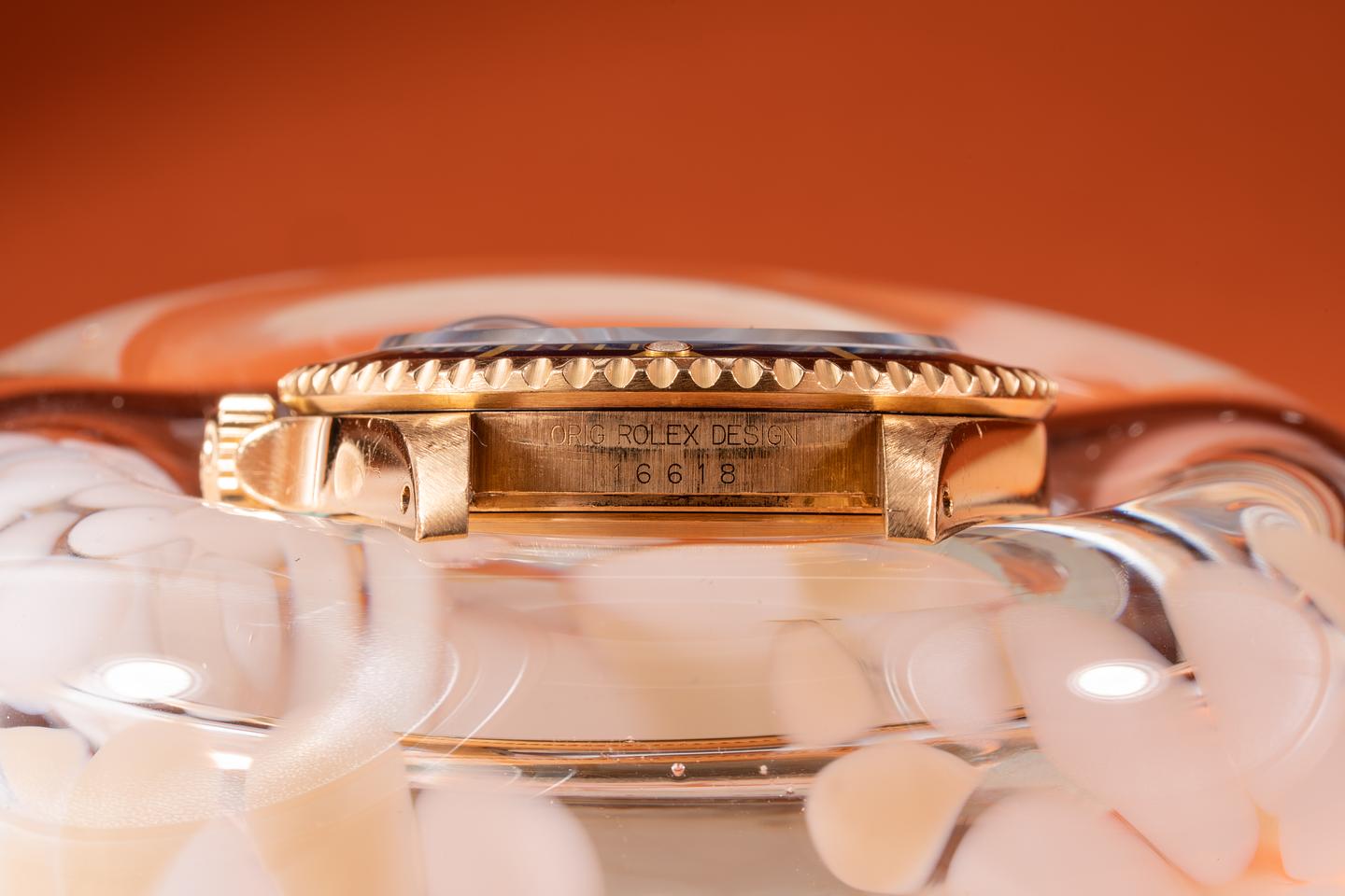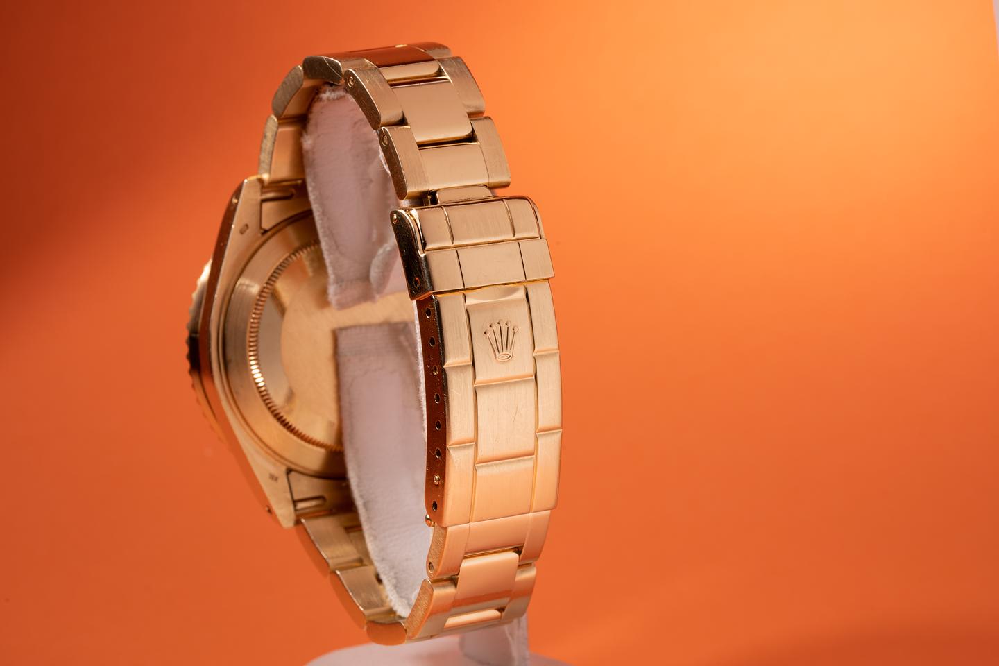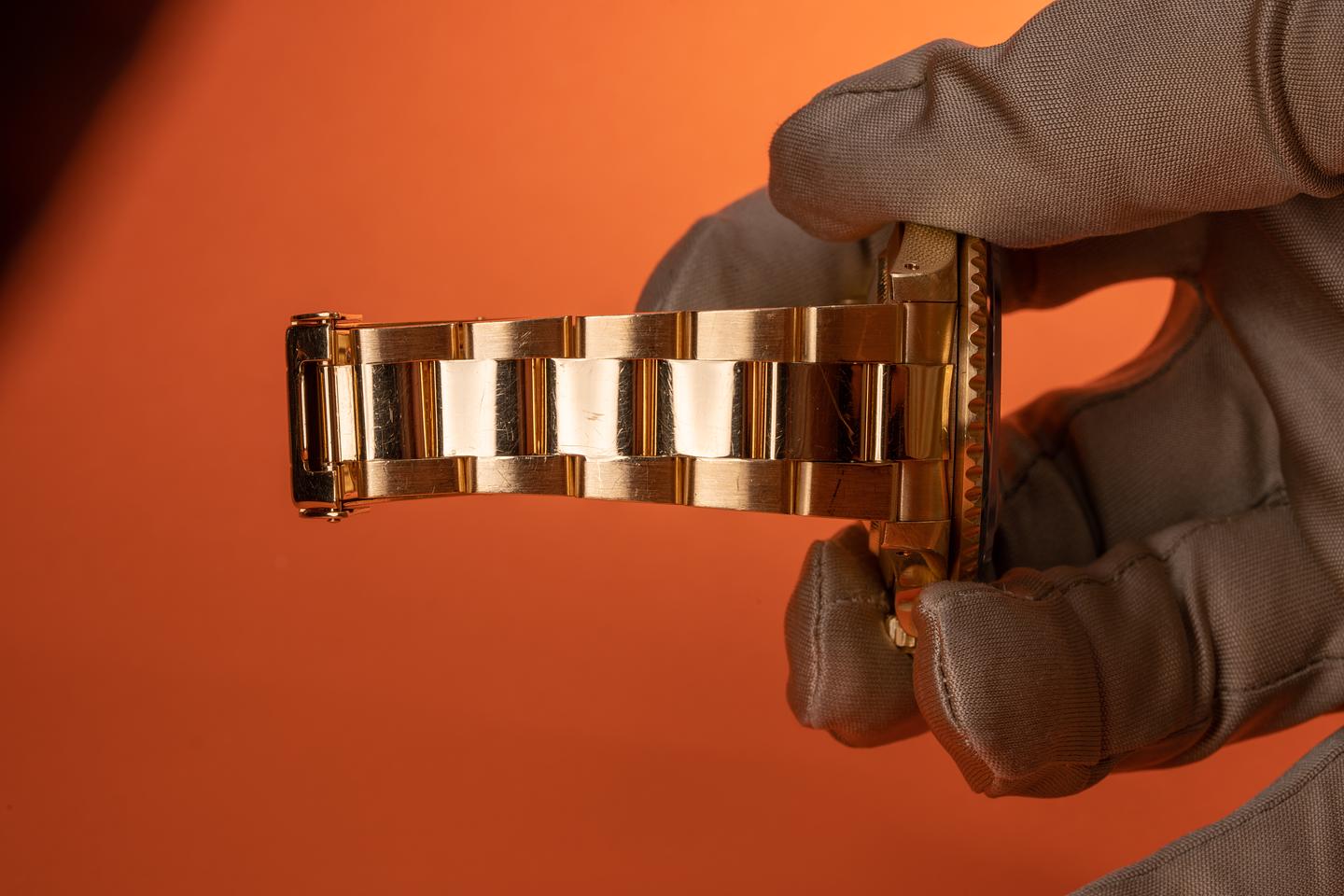 Bracelet: The 10 link 18K yellow gold Oyster bracelet is excellent showing no perceivable stretch for its age. The clasp is stamped with a 1993 date code.