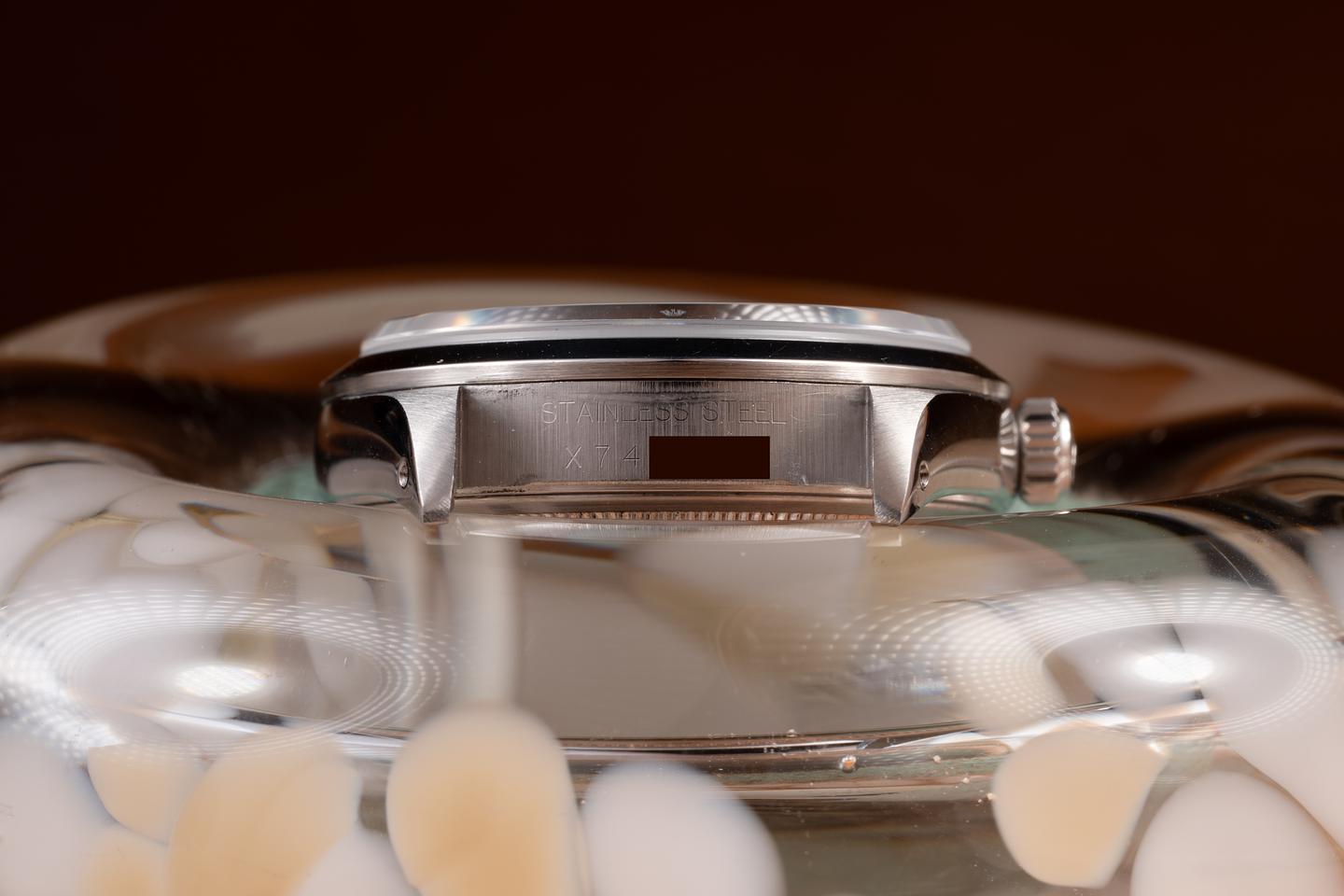 Case: The sharp 34mm case is excellent, showing only very light wear from use. The smooth stainless bezel is also in excellent condition, showing only very light wear from use.