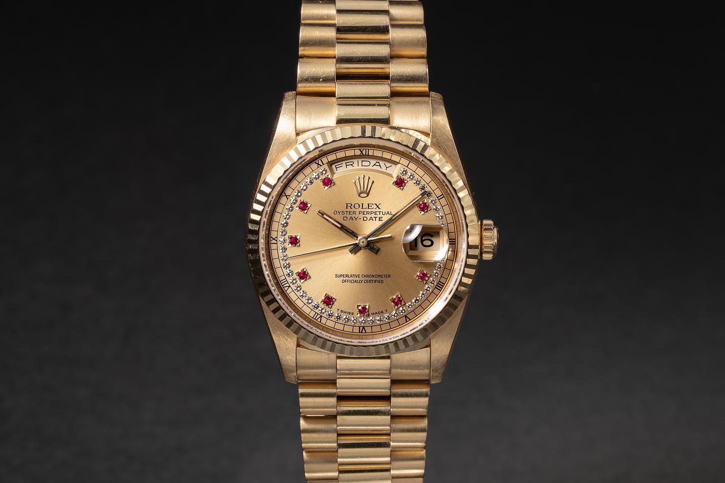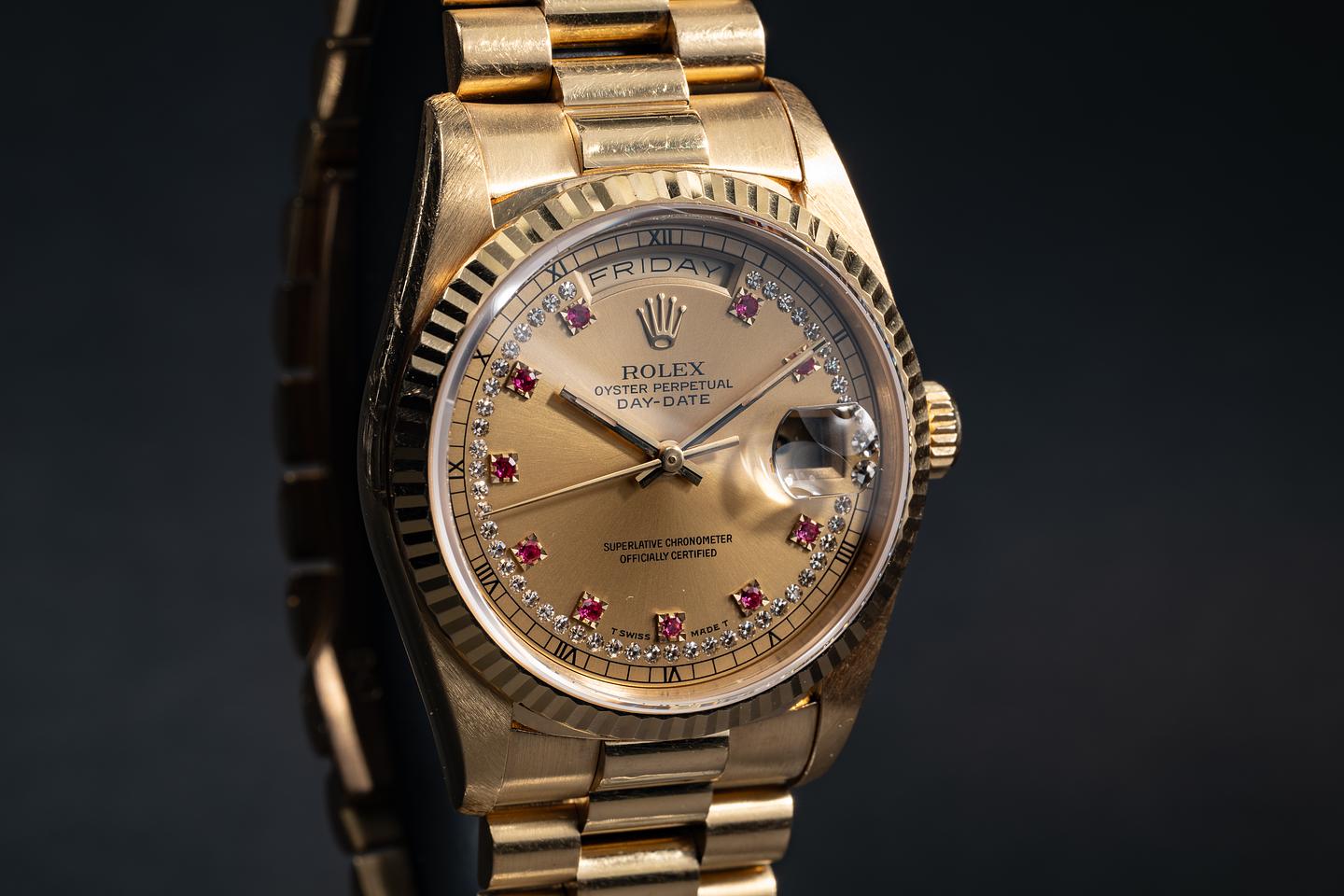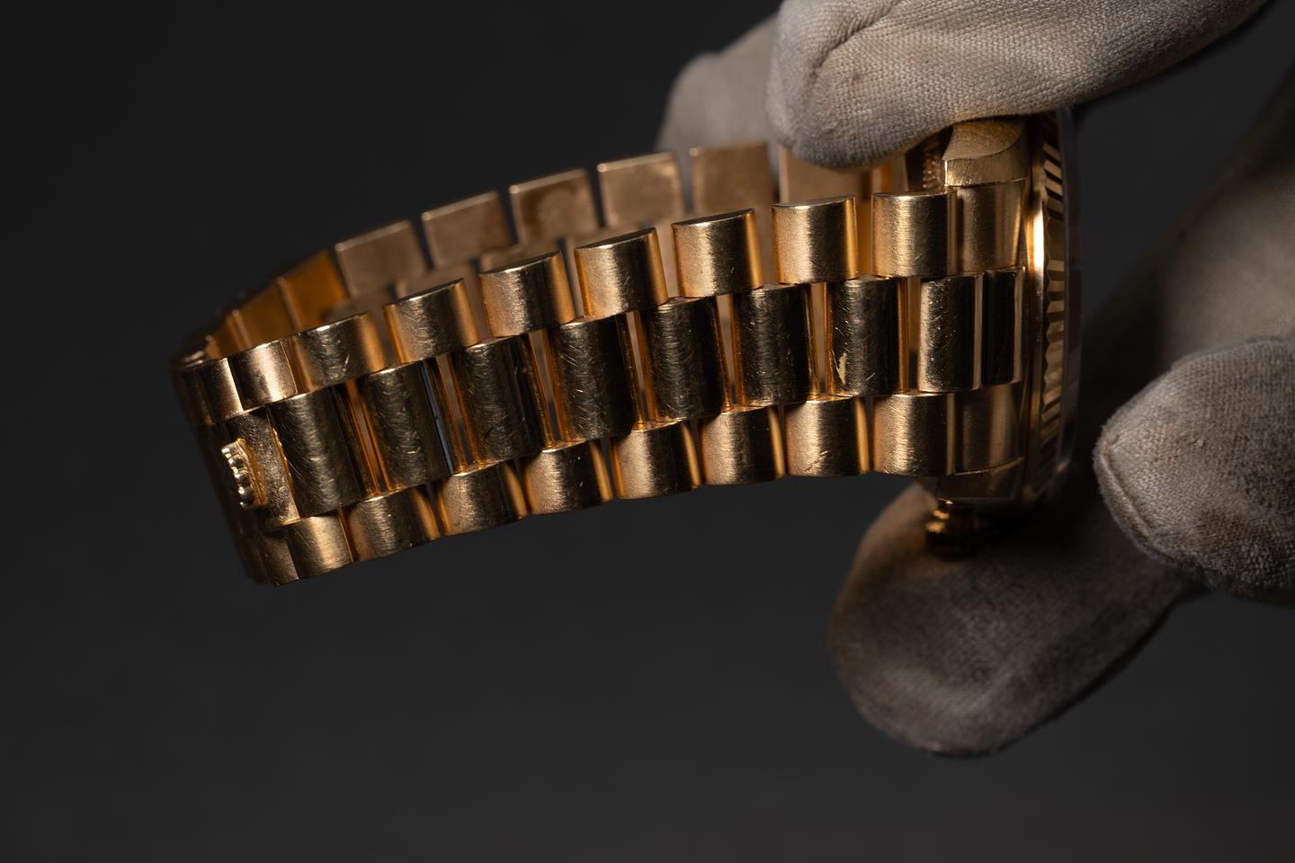 Bracelet: The 22-link 18K yellow gold President bracelet is excellent, showing only very light stretch for its age.