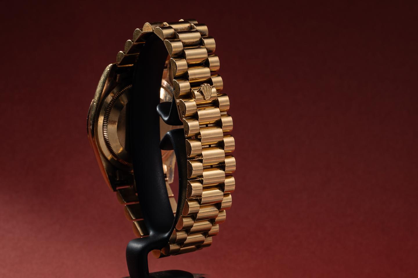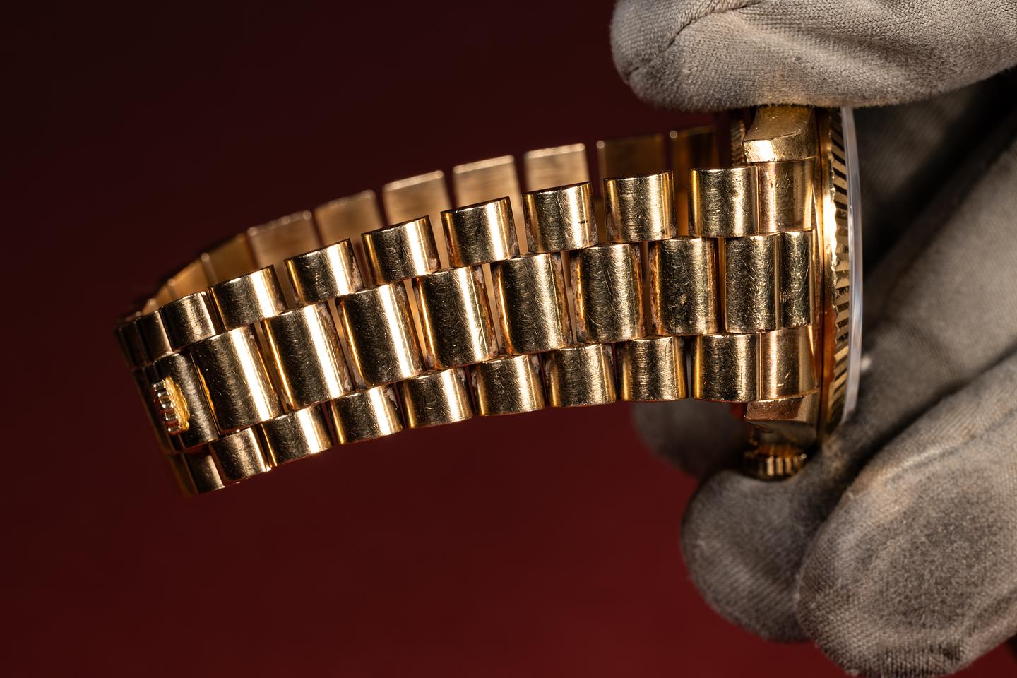 Bracelet: The 22-link 18K yellow gold President bracelet is excellent, showing only very light stretch for its age.
