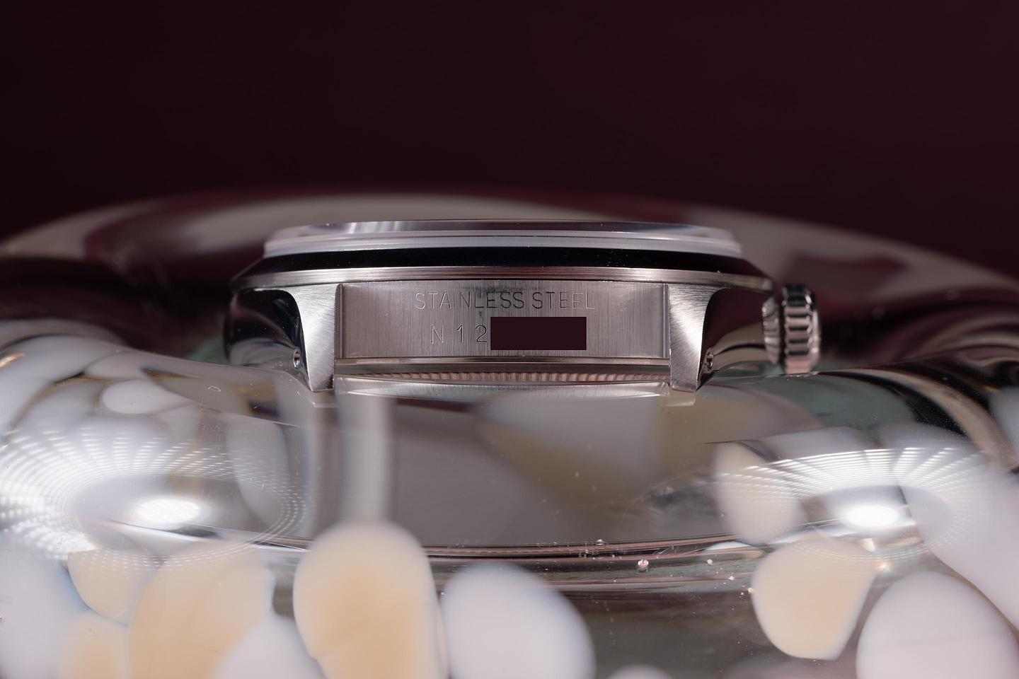 Case: The sharp 36mm case is excellent, showing only light wear from use. The smooth stainless bezel is also in excellent condition, showing only light wear from use.