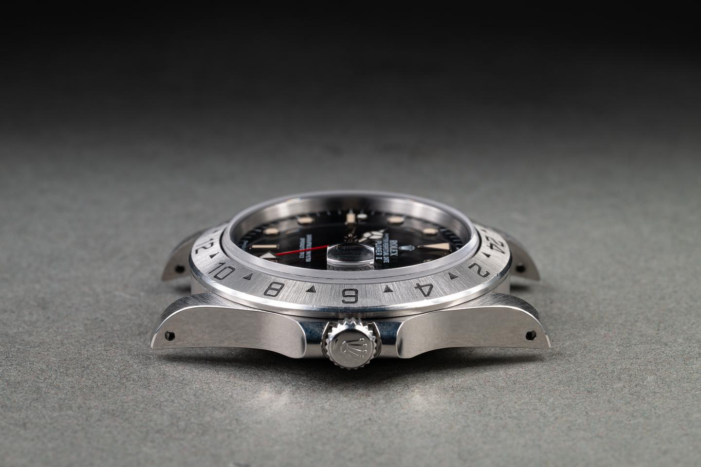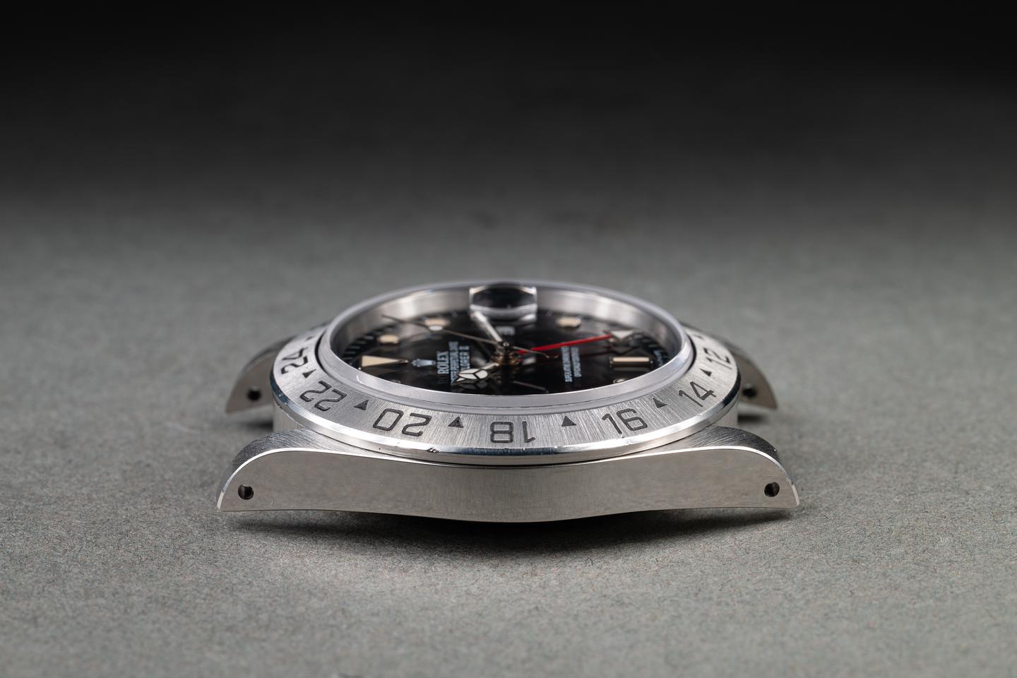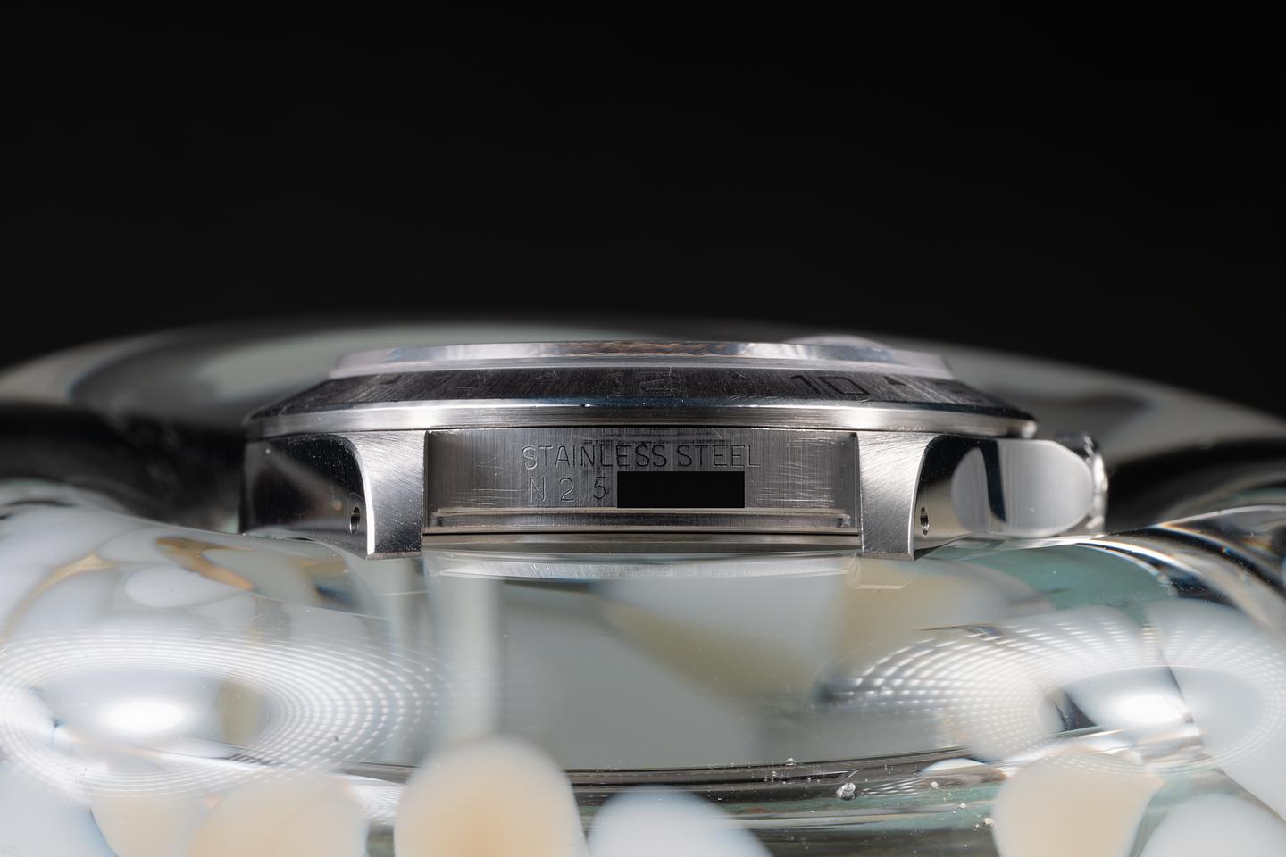 Case: The previously polished case is excellent, showing prominent bevels and only light wear from use. The stainless bezel is also in excellent condition, showing a sharp well defined sunburst finish and only light wear.