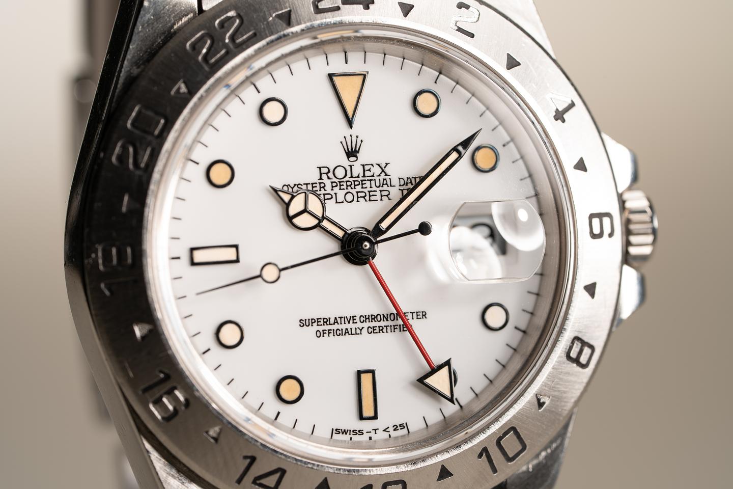 Bracelet: Excellent 11 link oyster bracelet with very light stretch for its age. The clasp is stamped with a matching 1991 date code.
