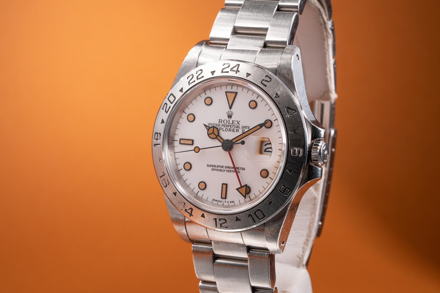 Dial: The white dial is excellent showing only very light wear overall. The very edge of the dial between the 3 and 6 o'clock markers is beginning to age to a creamy hue. The lume has aged to a rich vibrant pumpkin hue and the hands have been relumed and color matched to the dial.