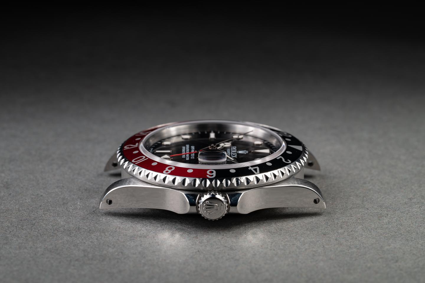Case: The recently polished case is excellent, showing sharp, prominent bevels and only very light wear. The black and red "Coke" bezel is also in excellent condition, showing only very light wear from use.