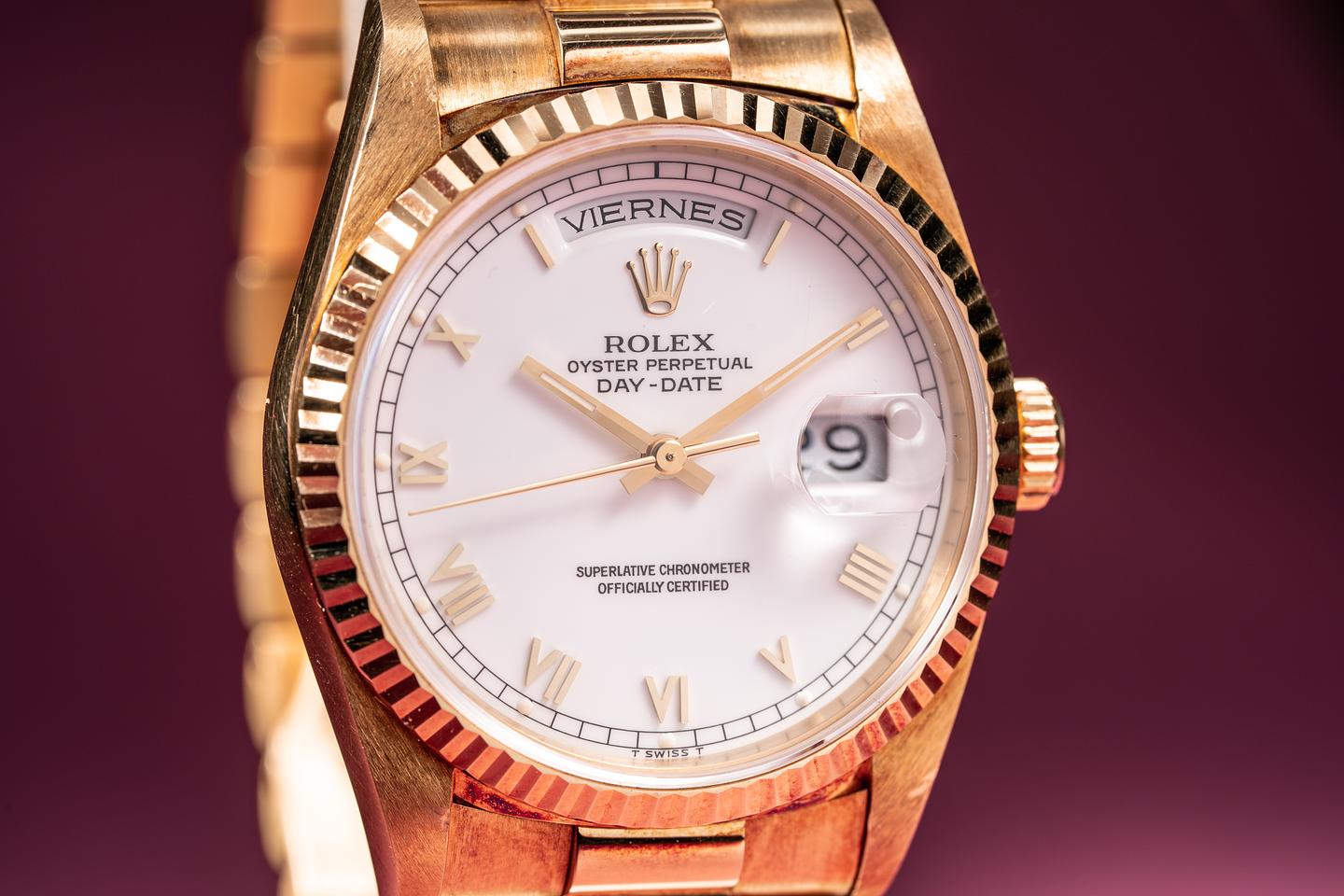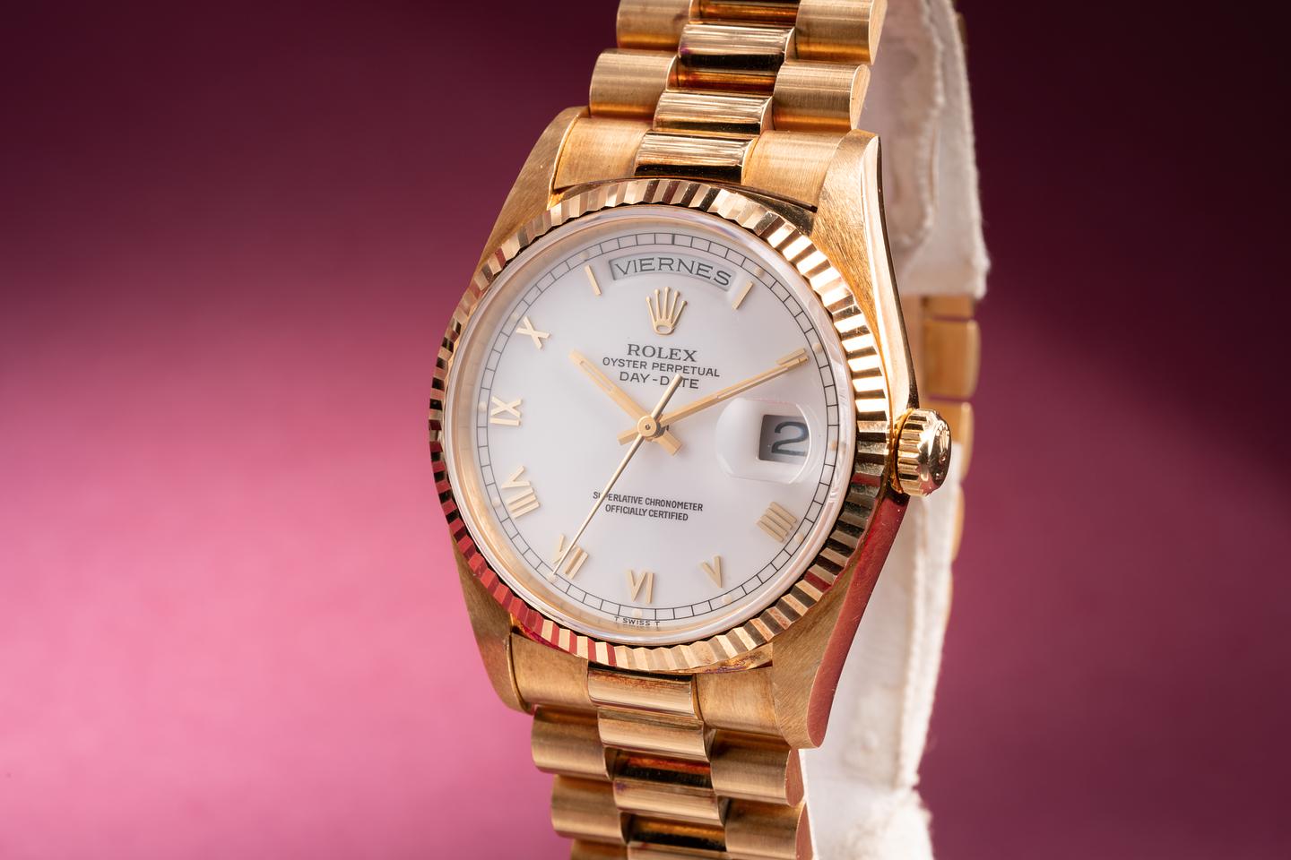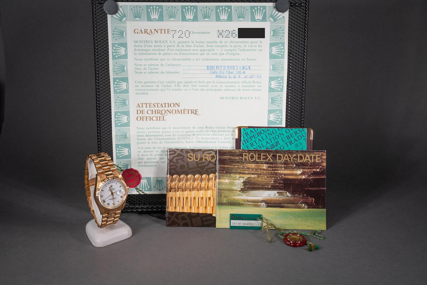 Bracelet: The 23 link 18k yg President bracelet is excellent showing only light stretch for its age. The clasp is stamped with a 1993 date code.