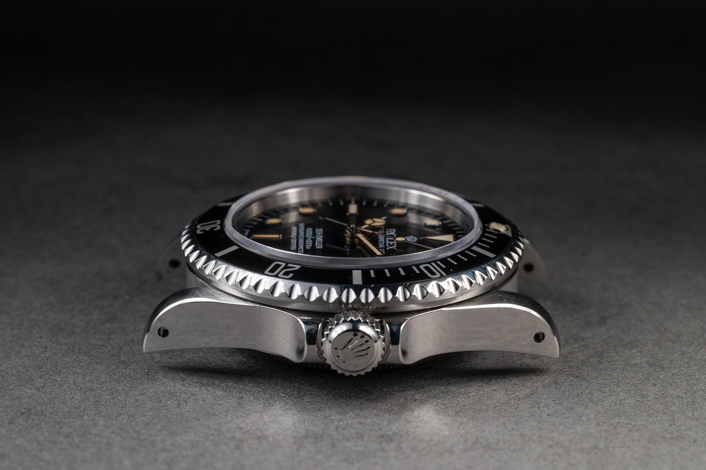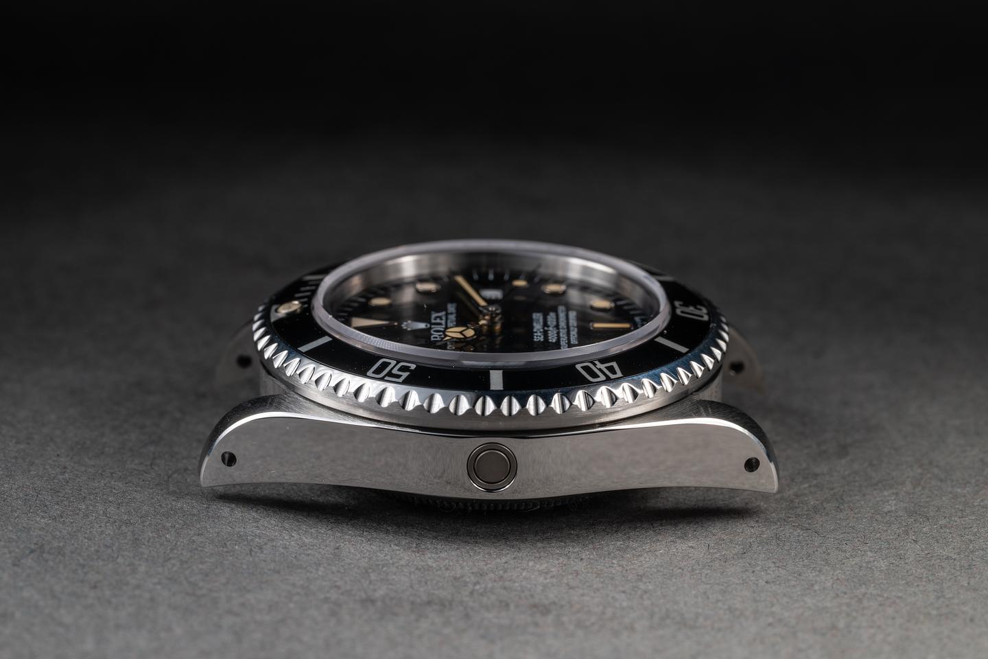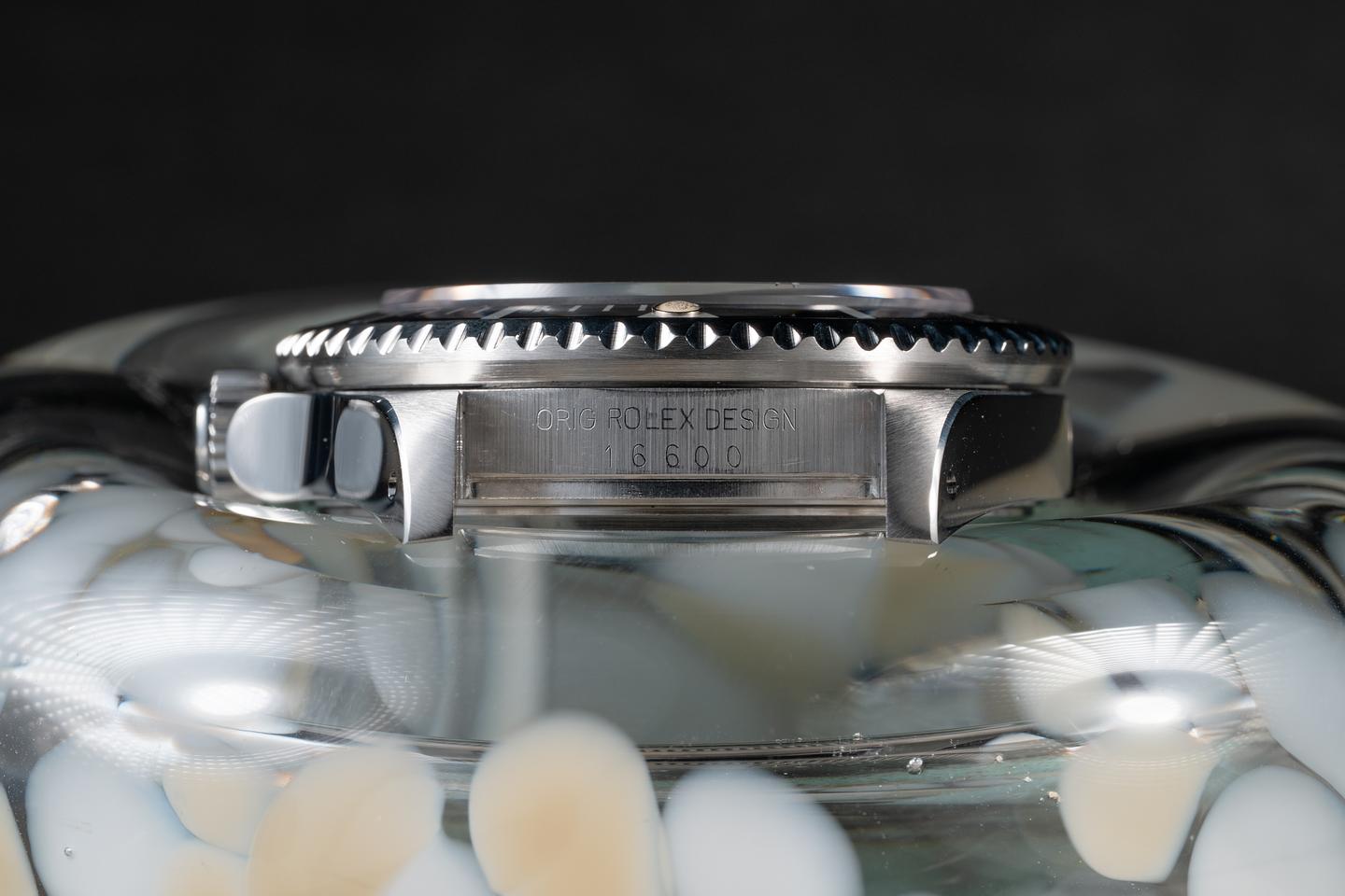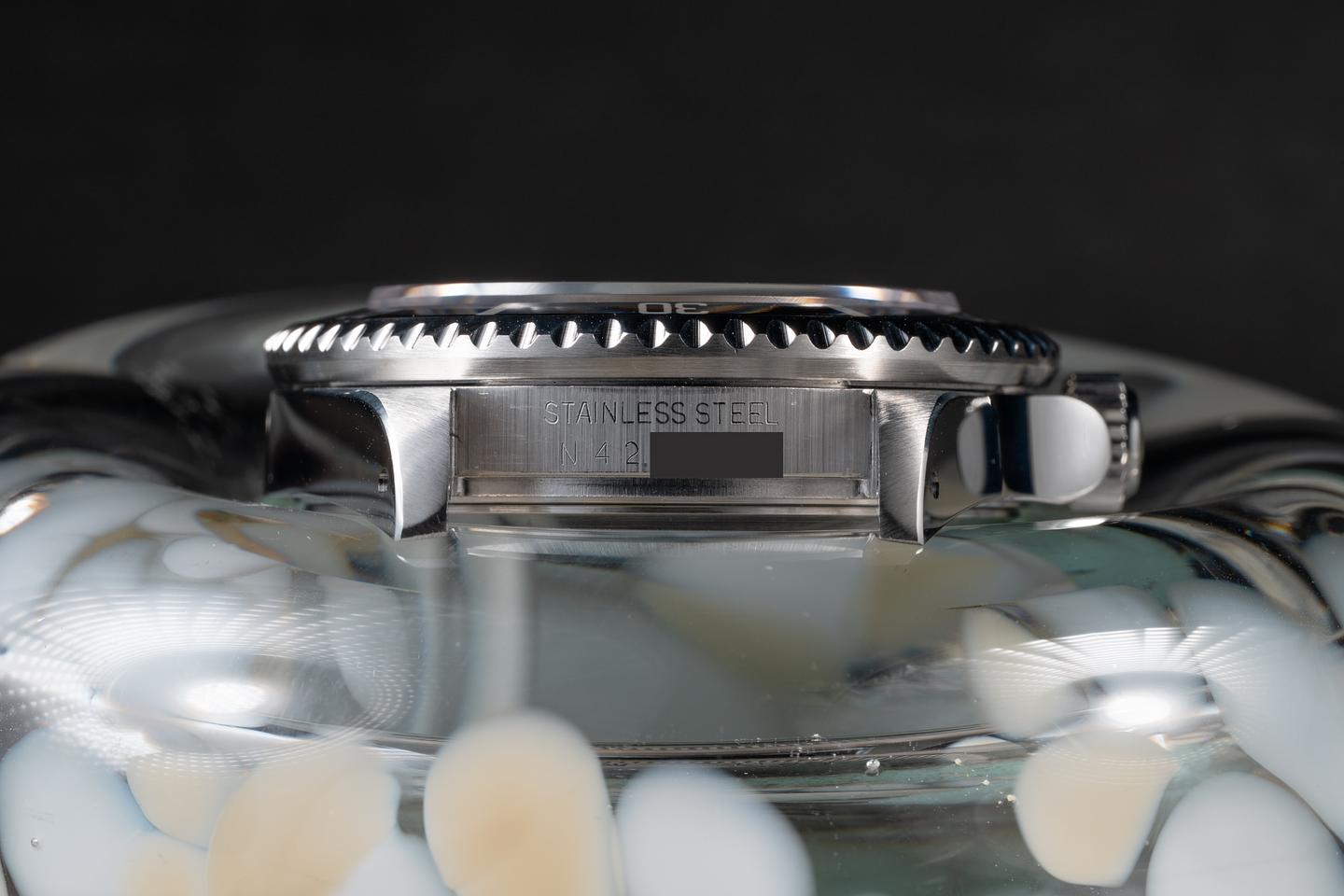 Case: The recently polished case is excellent, showing sharp, prominent bevels and only very light wear. The black bezel insert is also in excellent condition, showing only light wear from use.