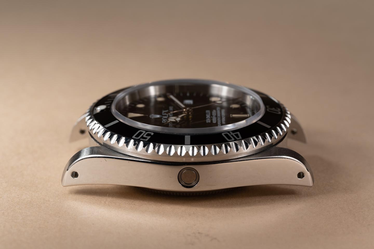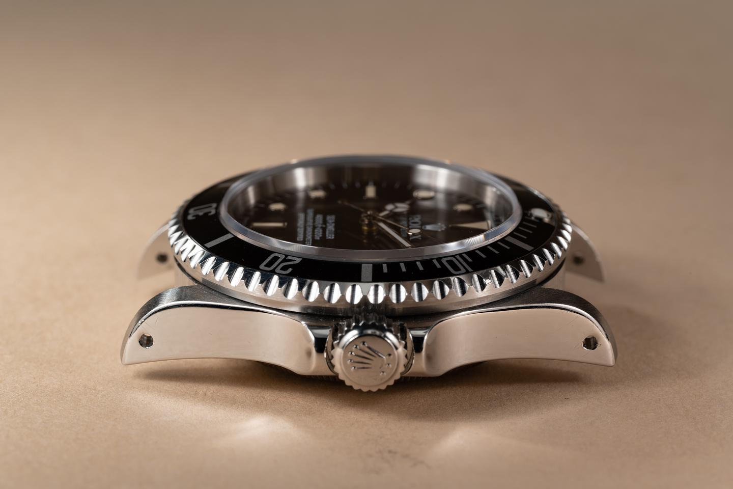 Case: The thick, even case is excellent showing sharp prominent bevels and only light wear from use. The black bezel is also in excellent condition showing only light wear from use.