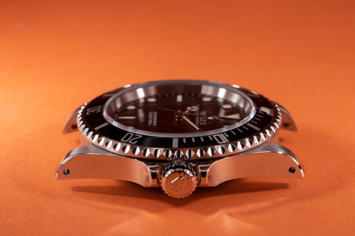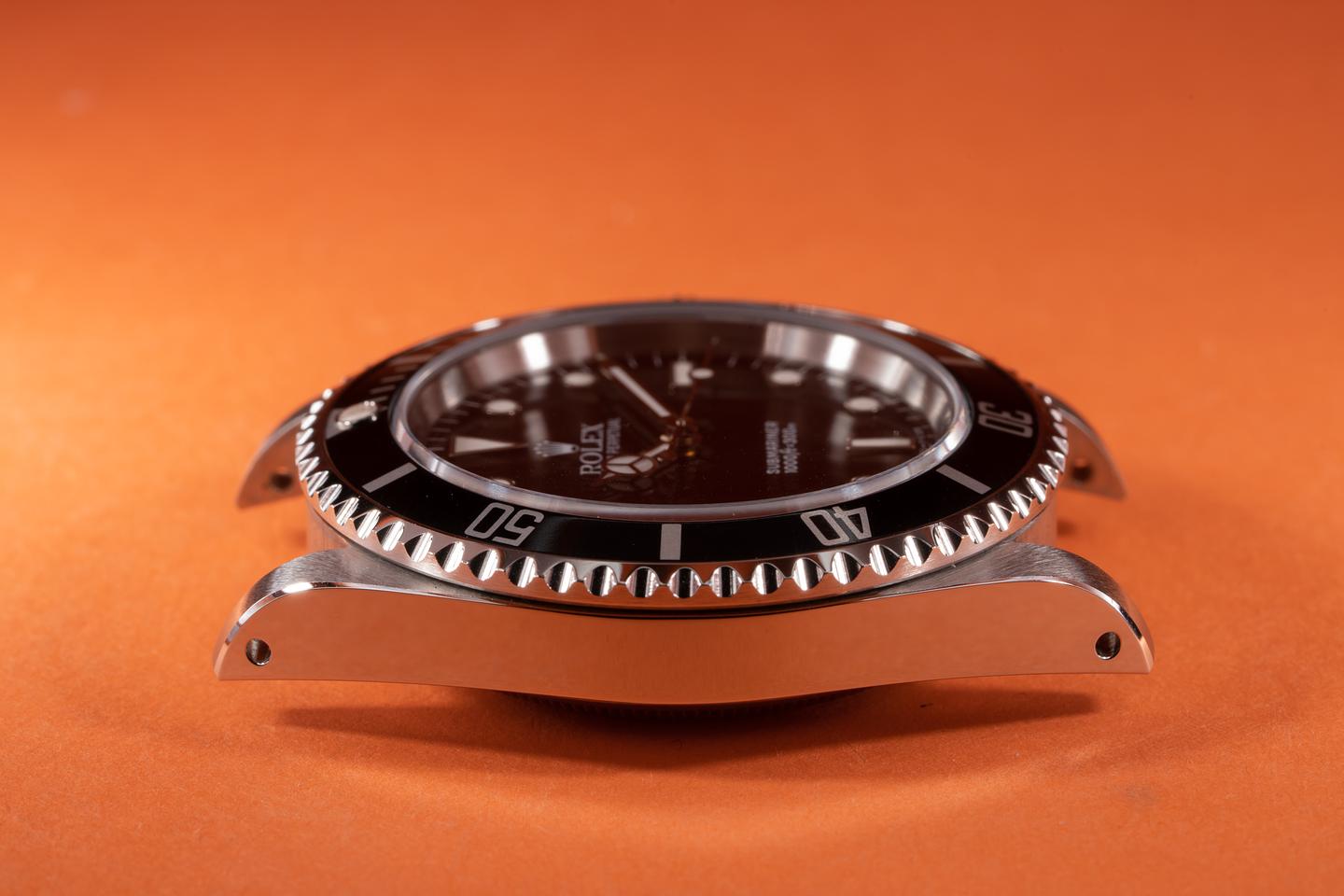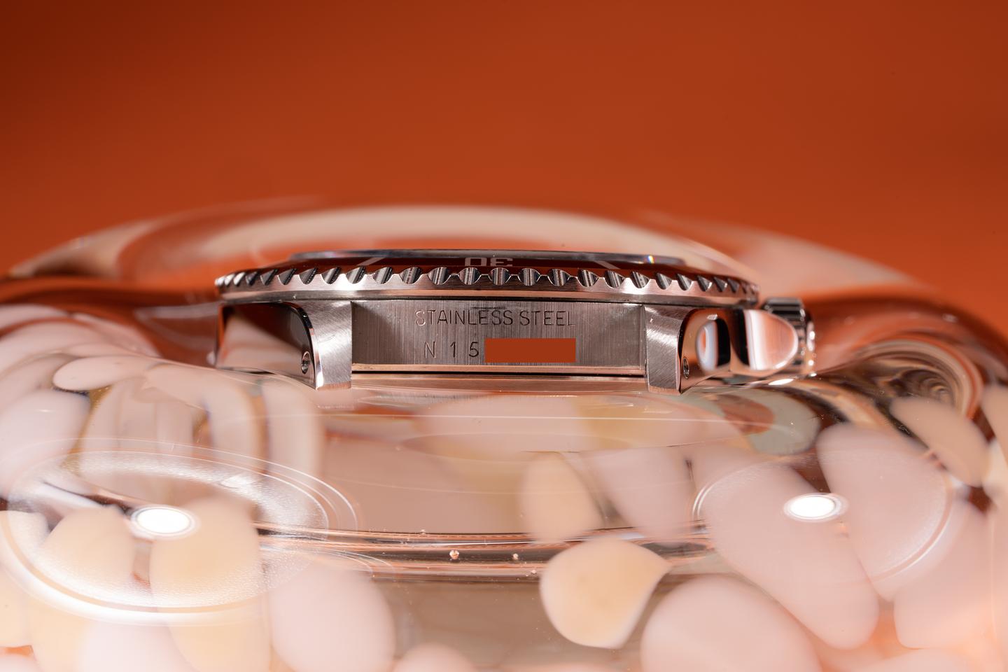 Case: The recently polished case is excellent showing sharp prominent bevels and only light wear from use. The black bezel insert is also in excellent condition showing only very light wear from use.