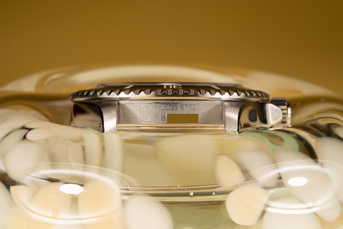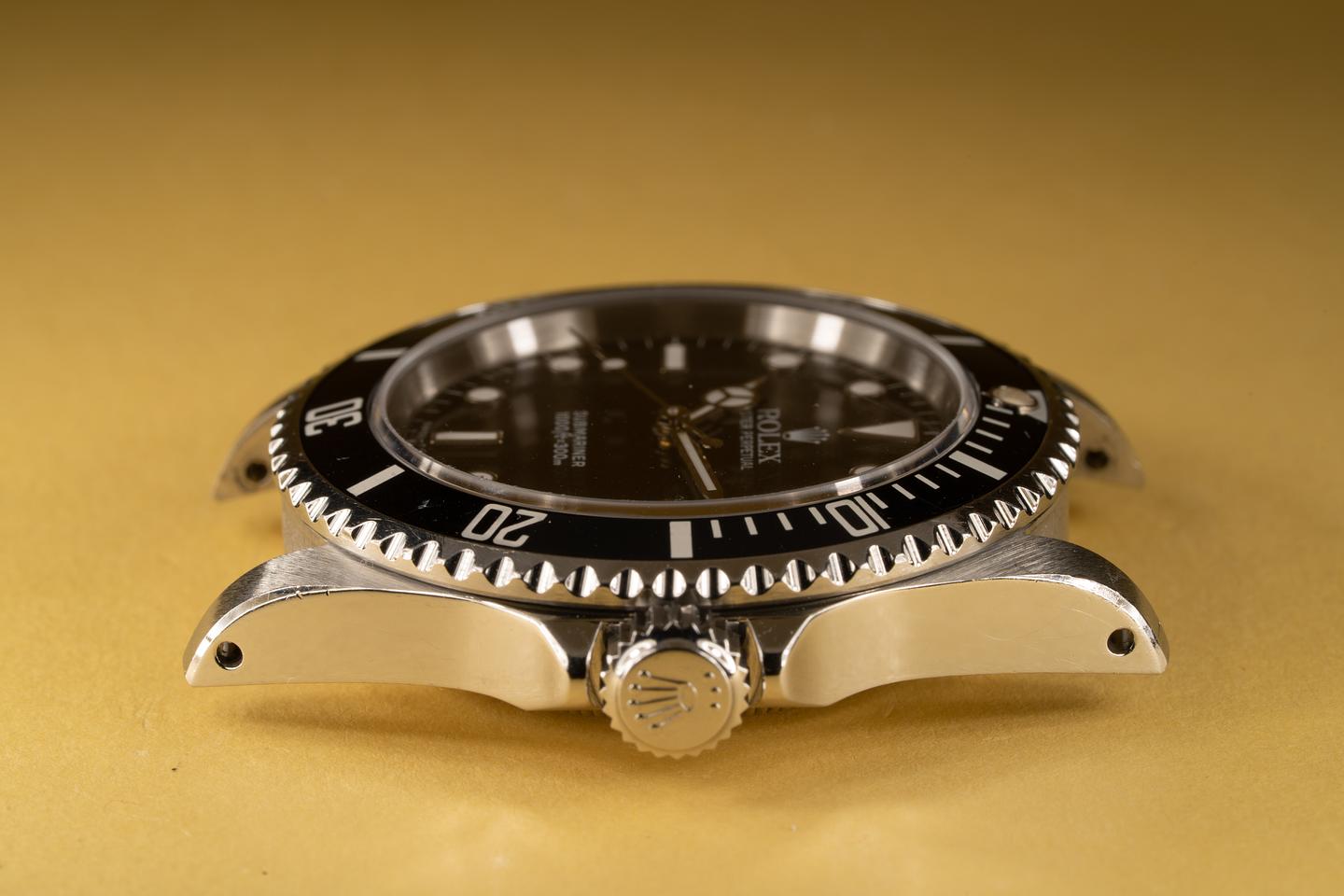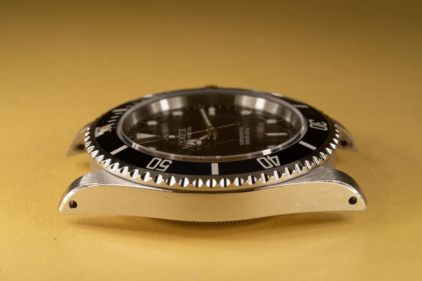 Case: The previously polished case is excellent showing sharp prominent bevels. The black bezel insert is also in excellent condition and shows some light wear from use.