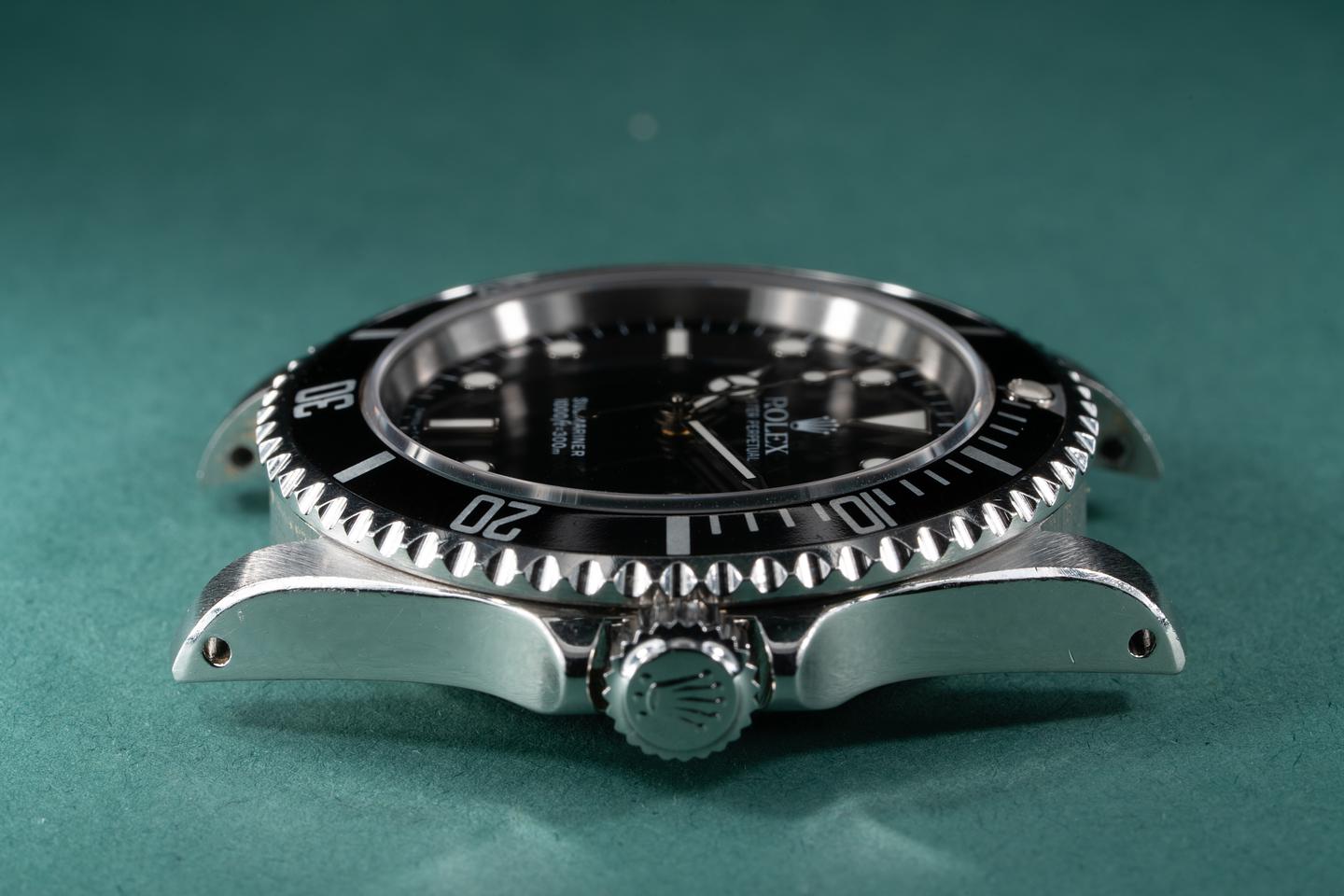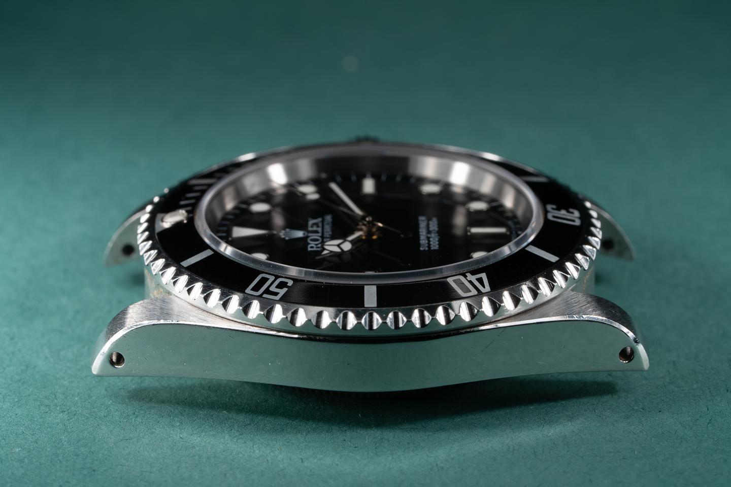 Case: The thick and even case is excellent showing wide prominent bevels and some wear from use. The black bezel insert is also in excellent condition showing only very light wear.