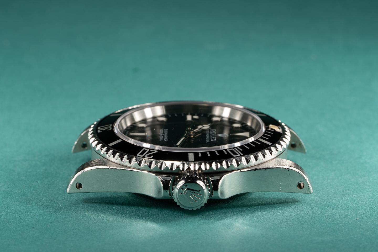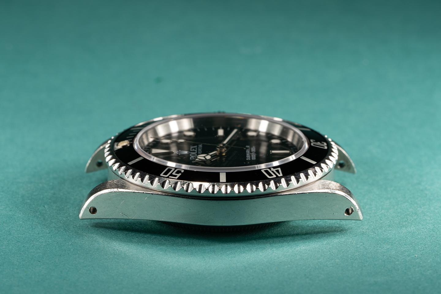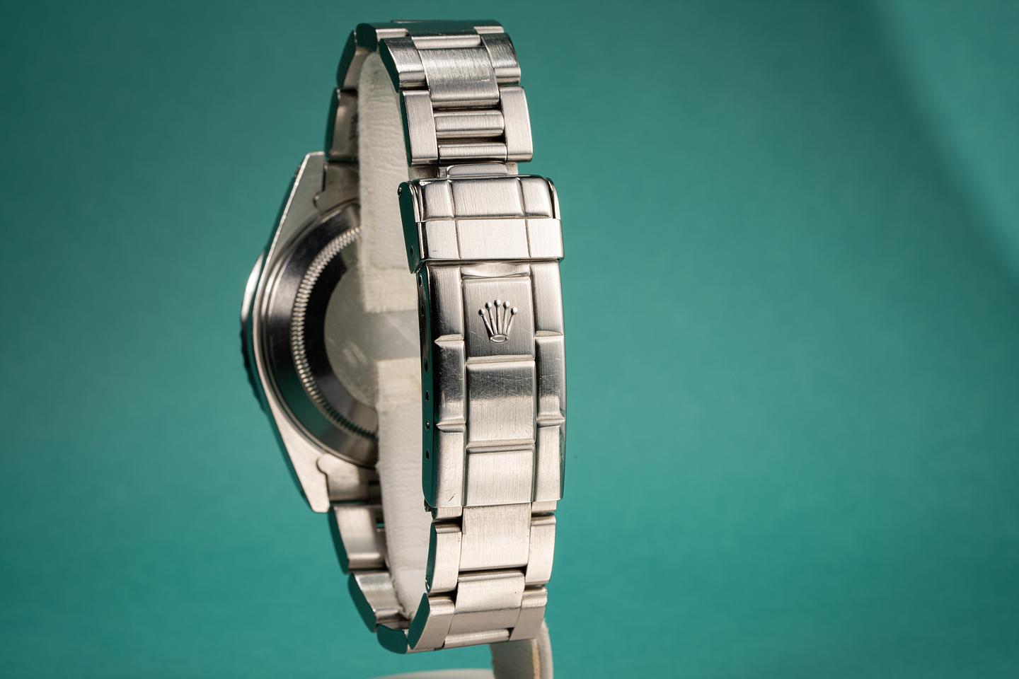 Case: Excellent sharp and unpolished case that shows the average wear for an almost 30 year old watch. The black bezel is original to the watch and shows light wear.