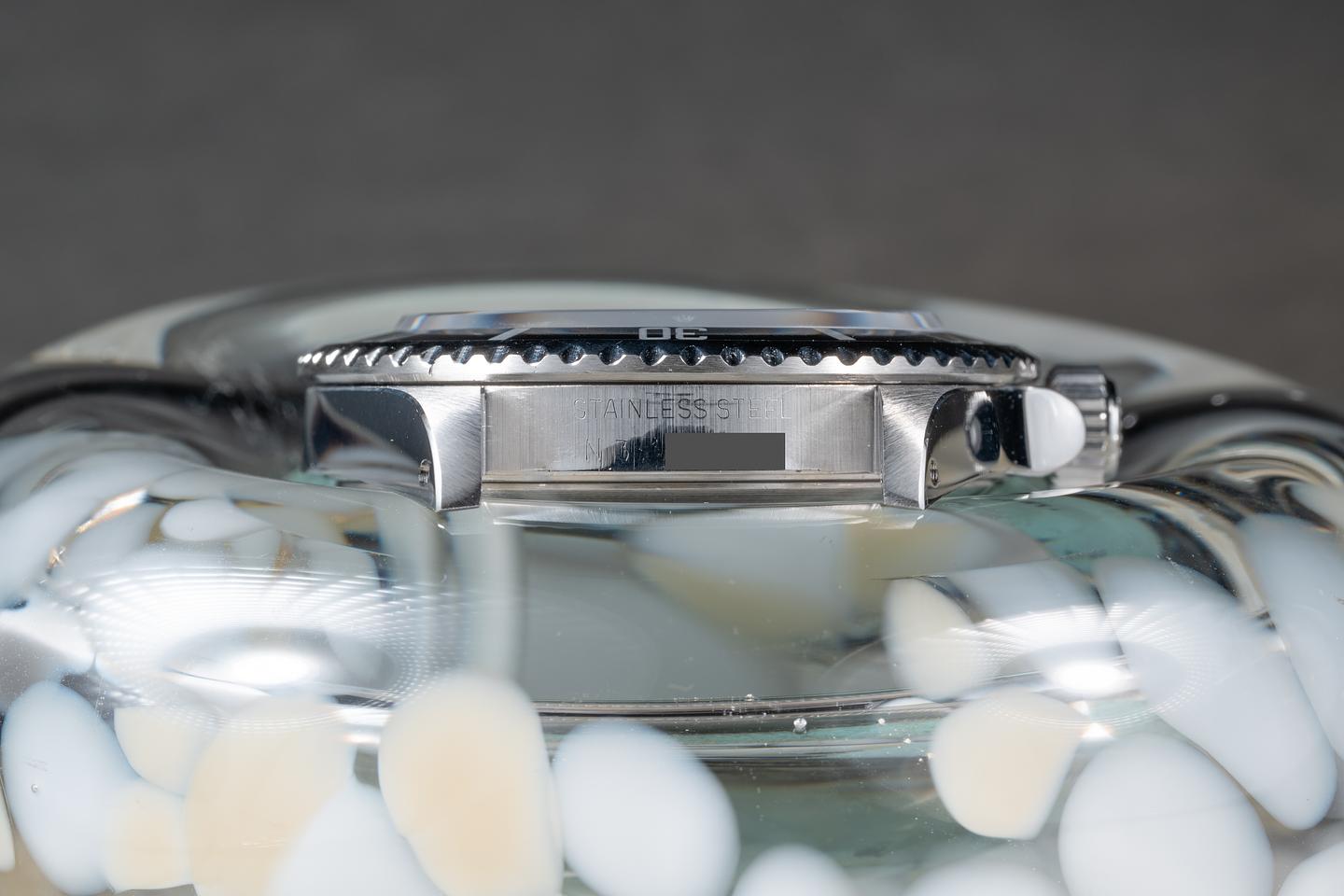 Case: The thick and even case is excellent showing sharp prominent bevels and only light wear from use. The black bezel insert is also in excellent condition showing only light wear from use.
