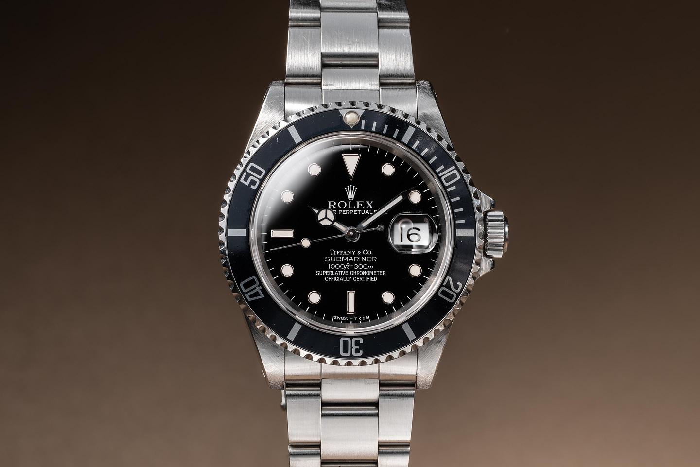 Dial: The glossy black Tiffany & Co. dial is excellent, showing little if any wear for its age. The lume has aged to a warm, creamy hue, and the hands match perfectly.