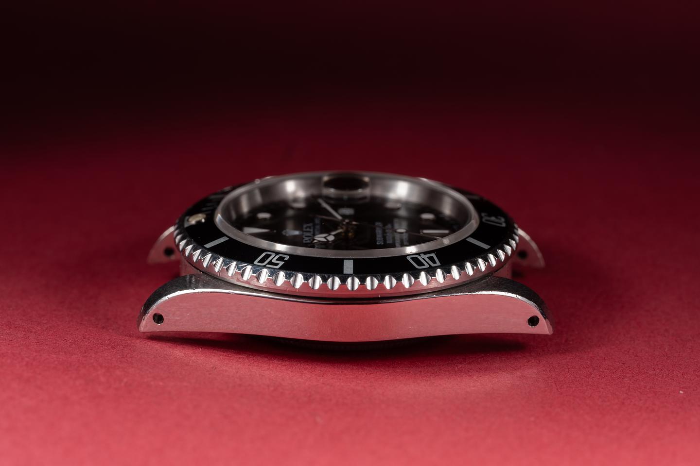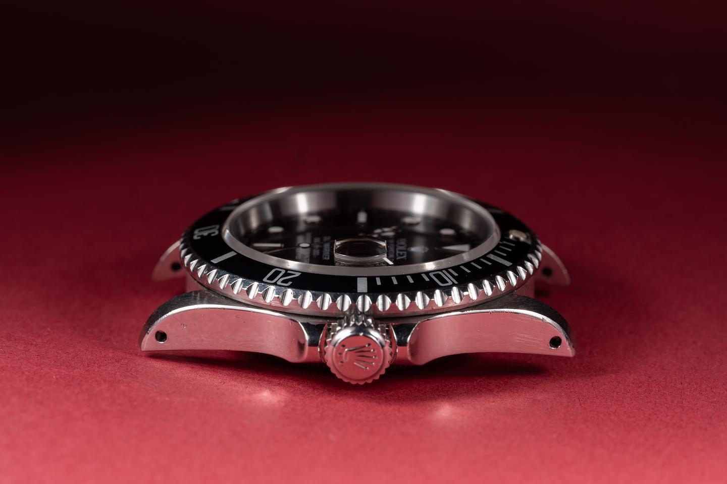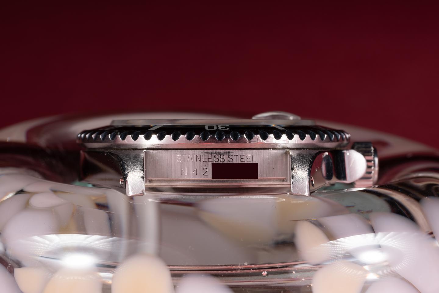 Case: The thick and even case is excellent showing sharp prominent bevels and light to average wear from use. The black bezel insert is also in excellent condition and has aged to a dark navy blue hue.