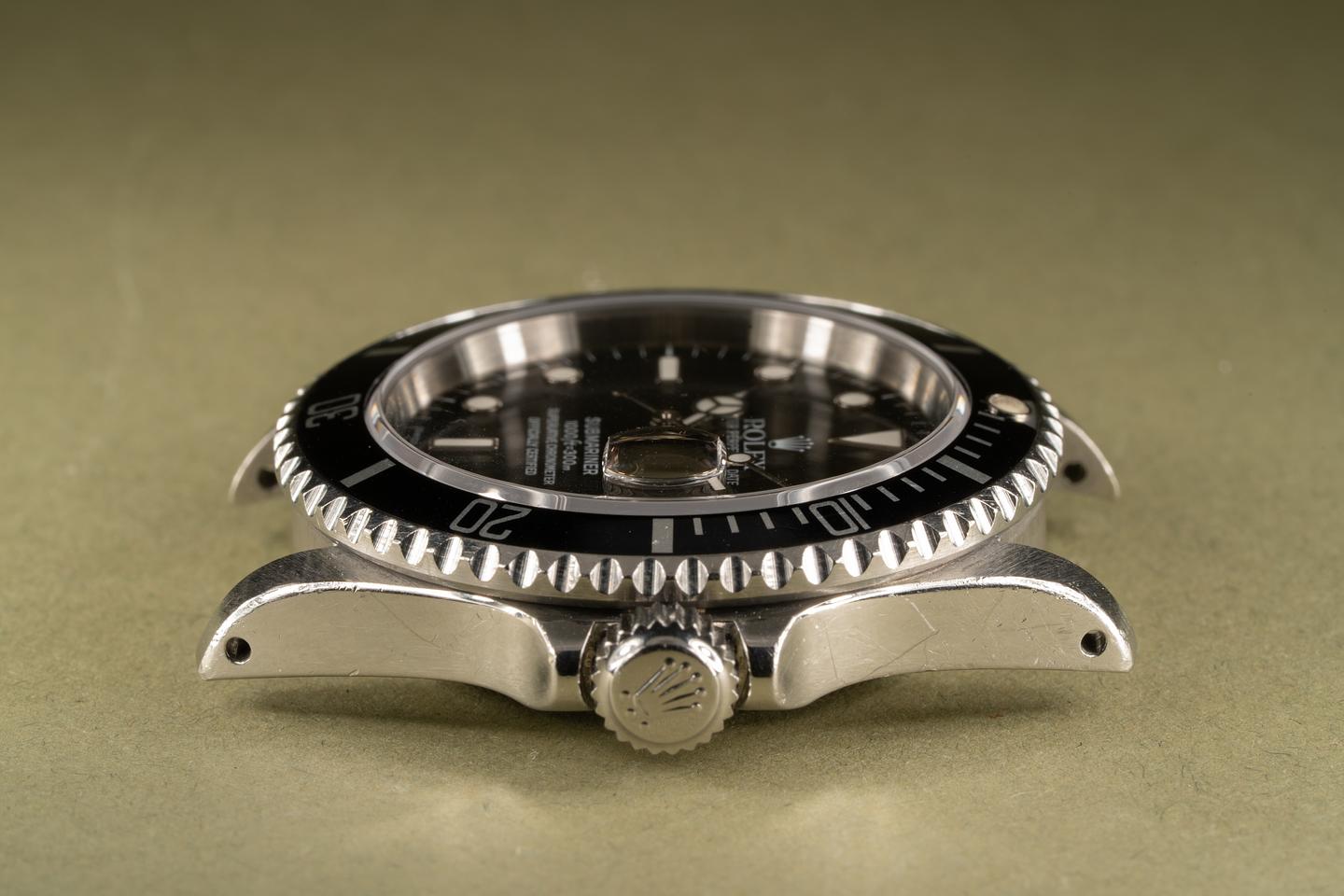 Case: The unpolished case is excellent with intact factory bevels and shows some wear from use. The black bezel insert is also in excellent condition and has faded to a dark navy blue hue.