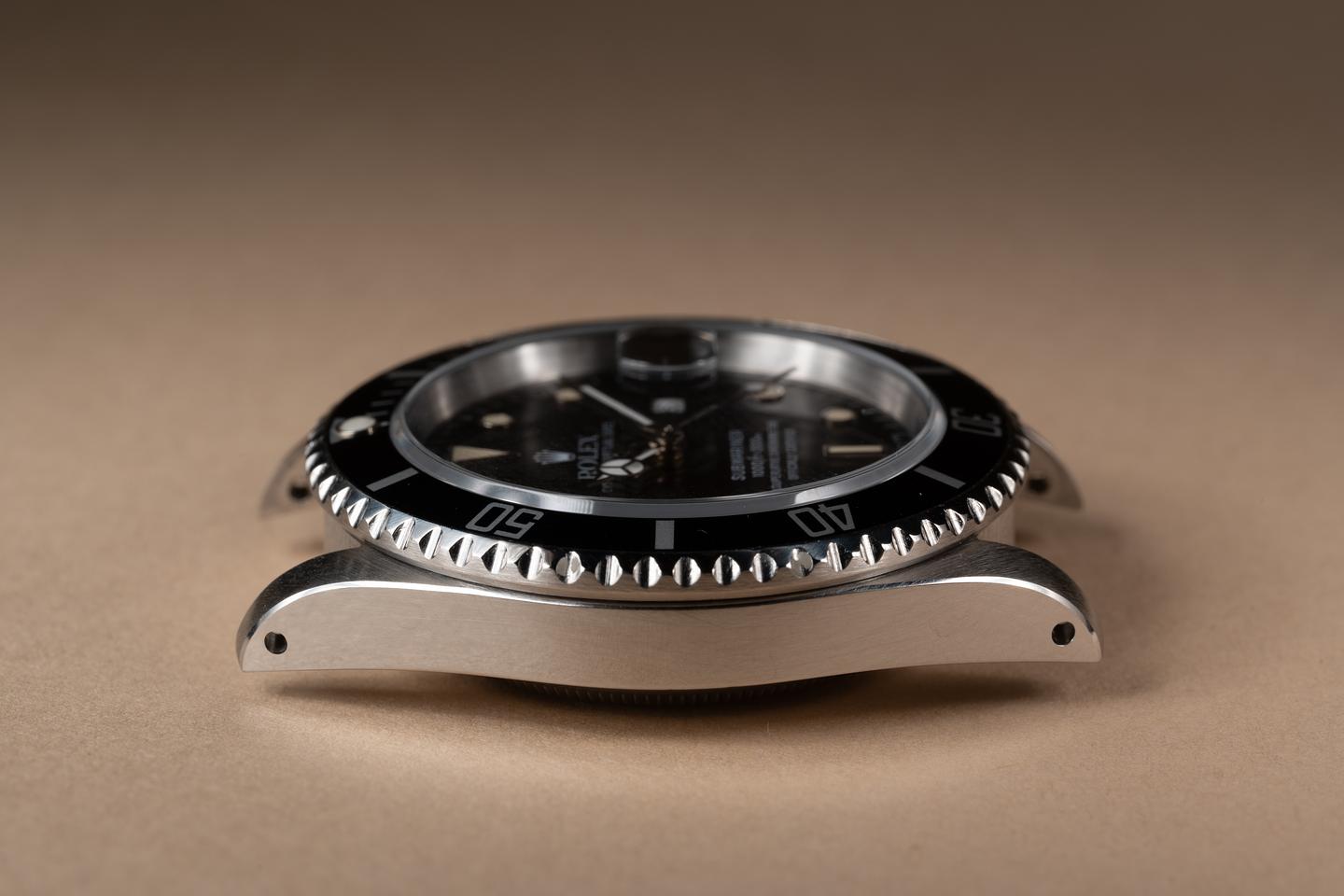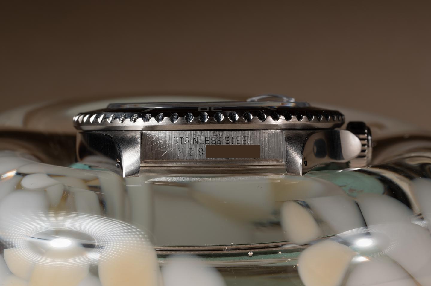Case: The excellent case has just returned from polishing showing sharp prominent bevels. The black bezel insert is also in excellent condition showing only light wear from use.
