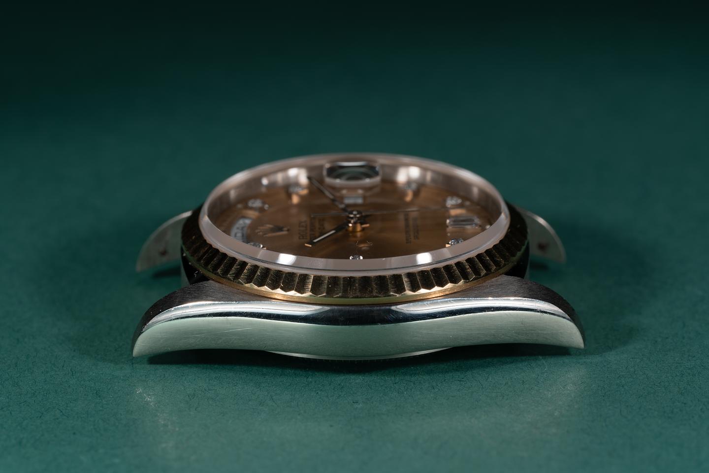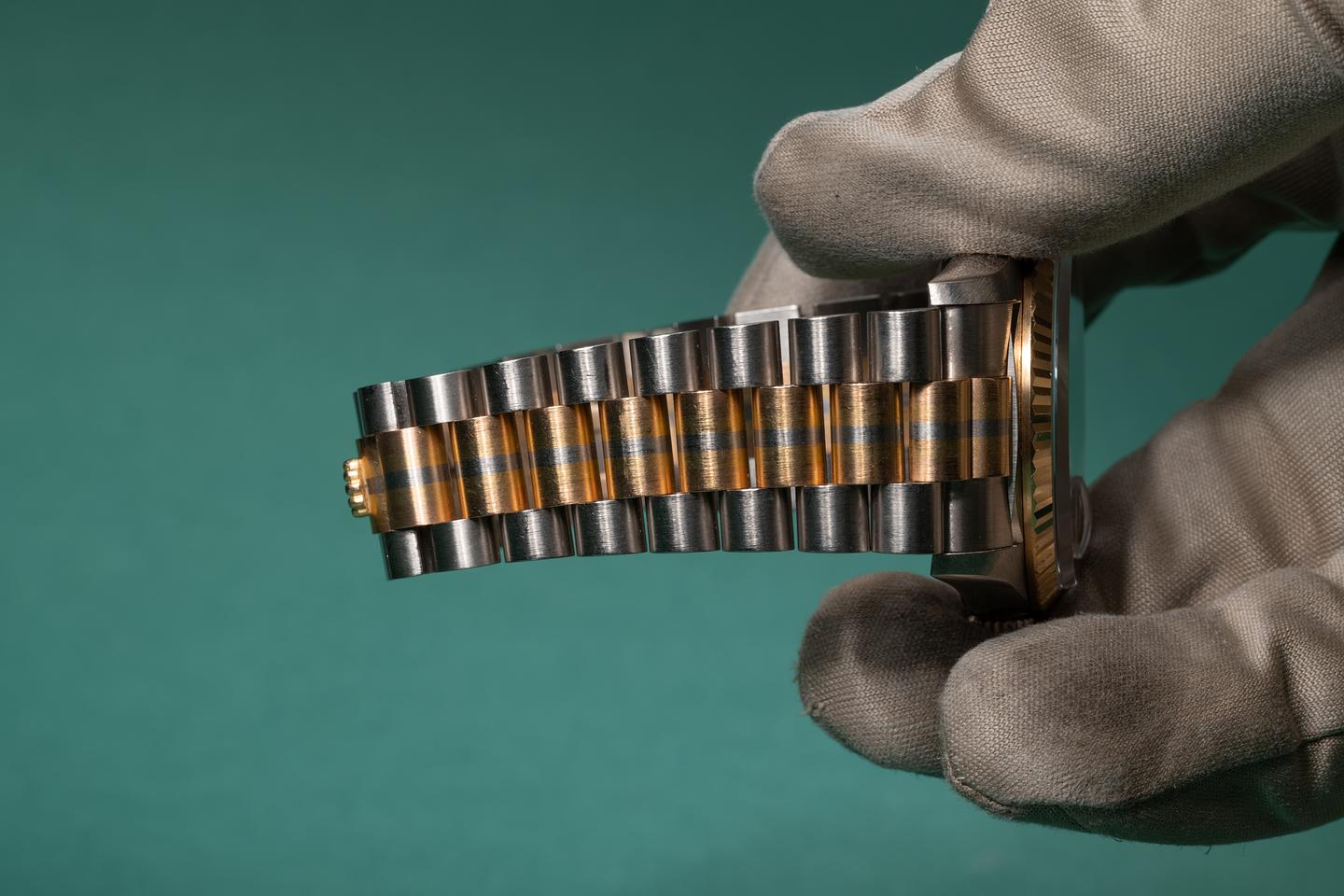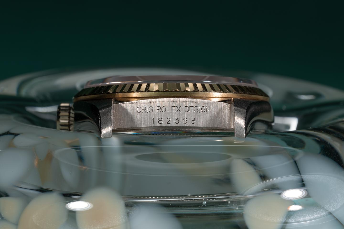Case: The 18k White Gold case is excellent showing only light wear from use. The sharp 18k yellow gold fluted bezel is also in excellent condition showing only light wear from use.