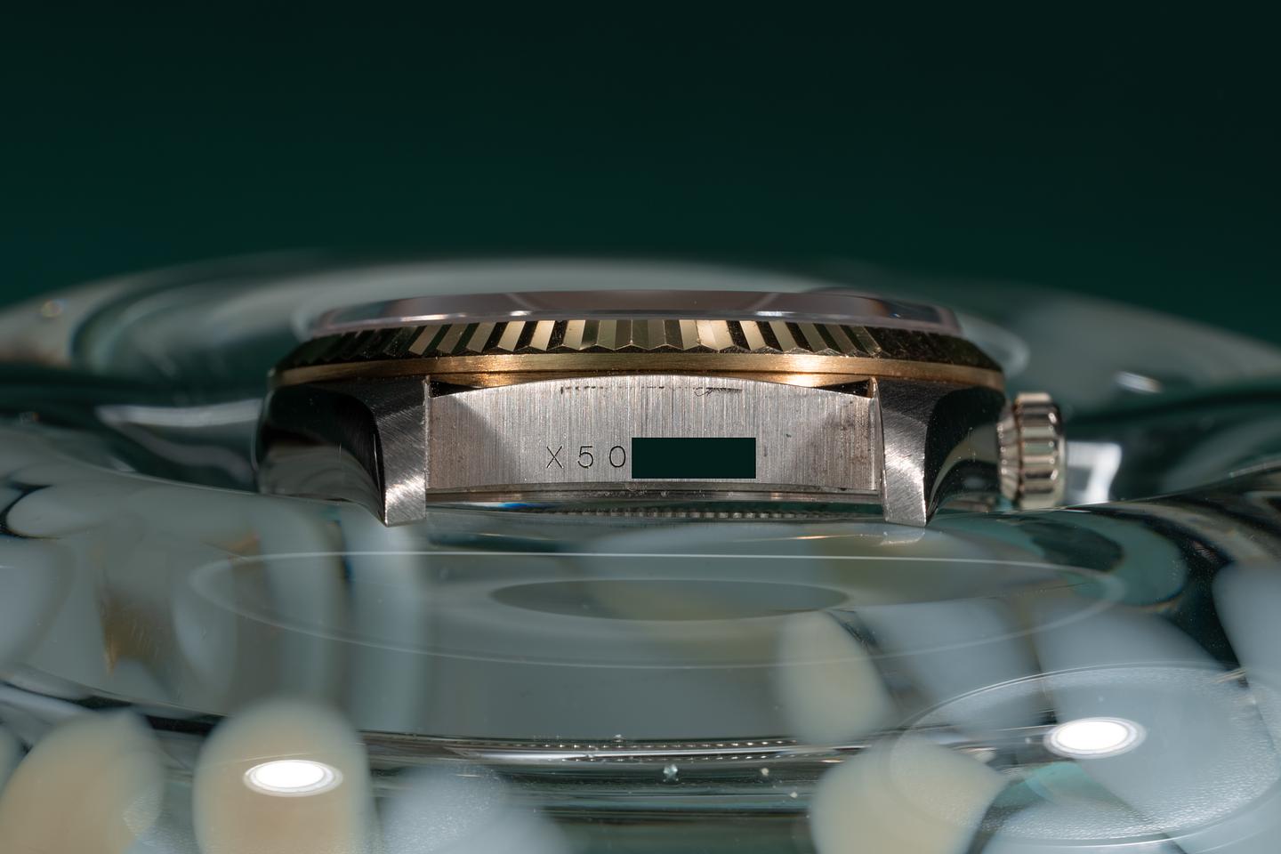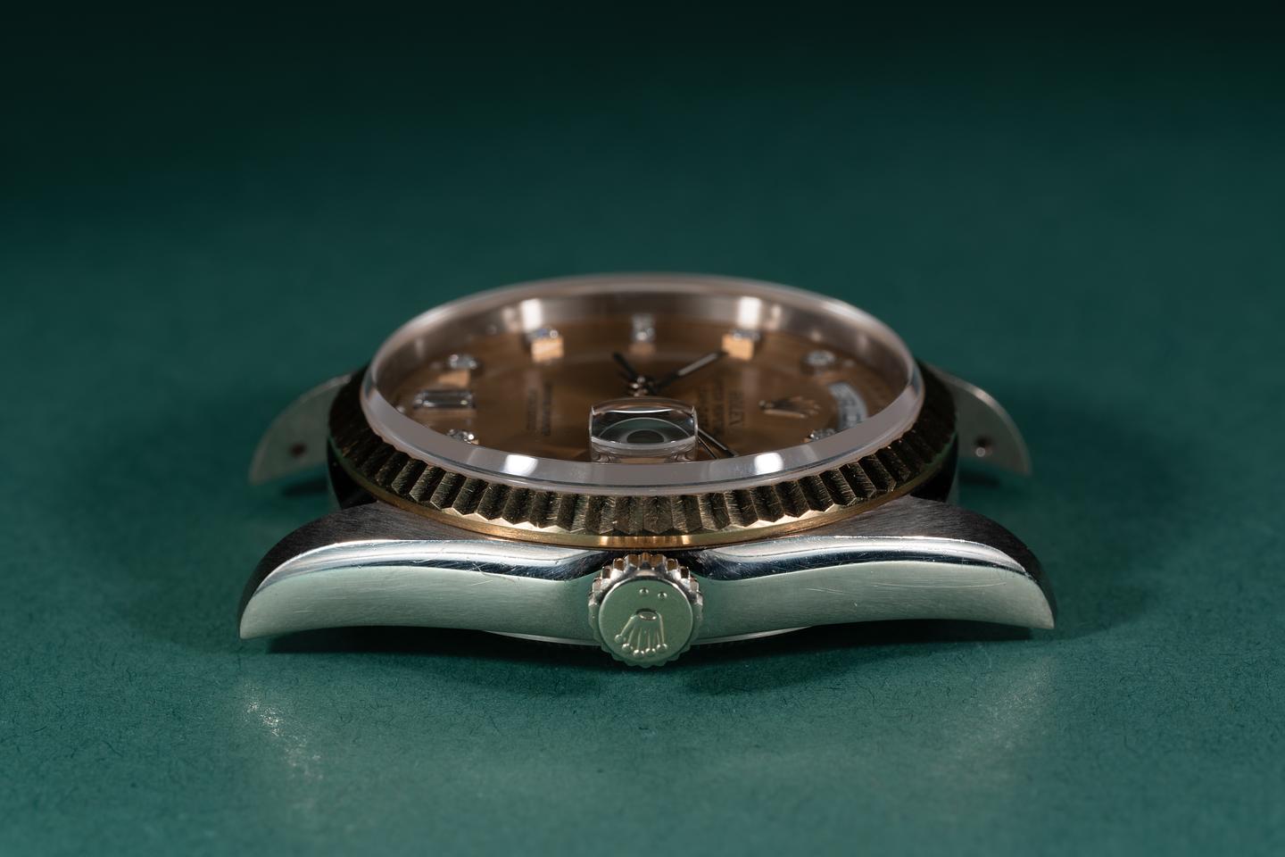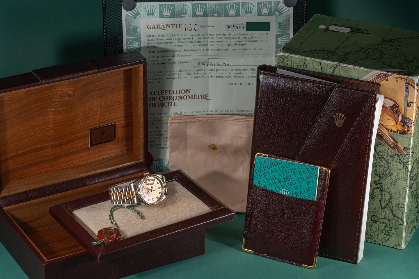 Case: The 18k White Gold case is excellent showing only light wear from use. The sharp 18k yellow gold fluted bezel is also in excellent condition showing only light wear from use.