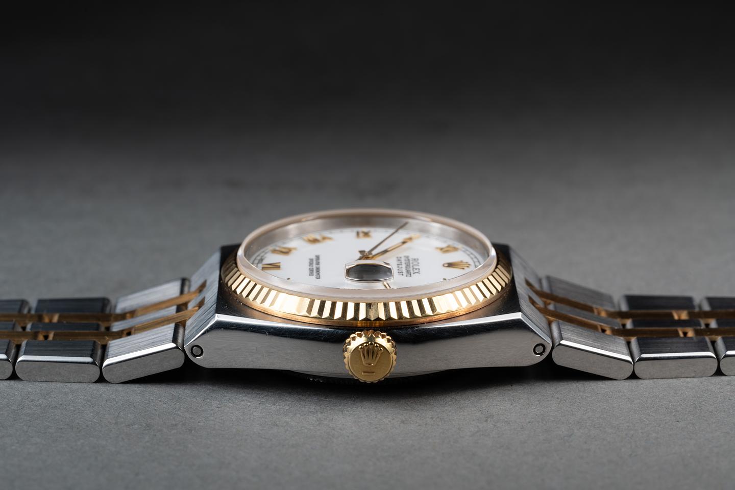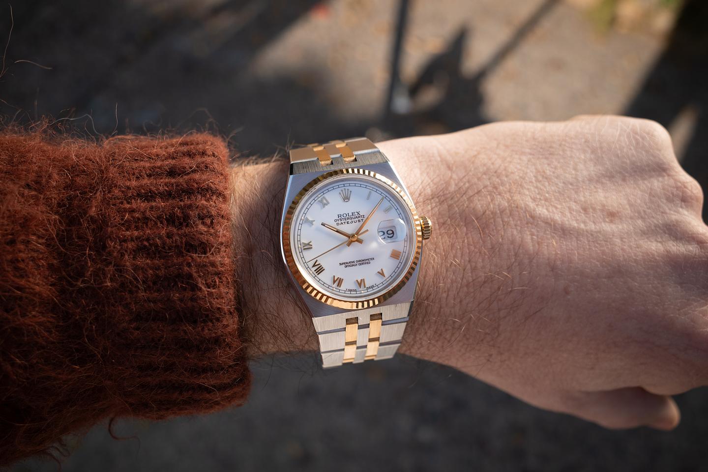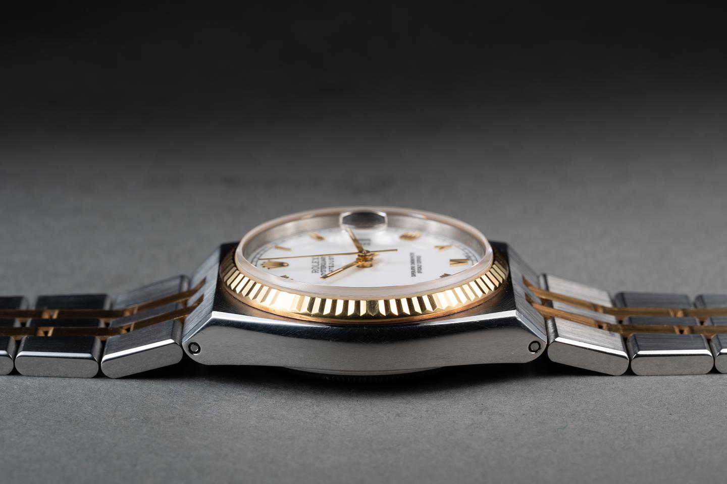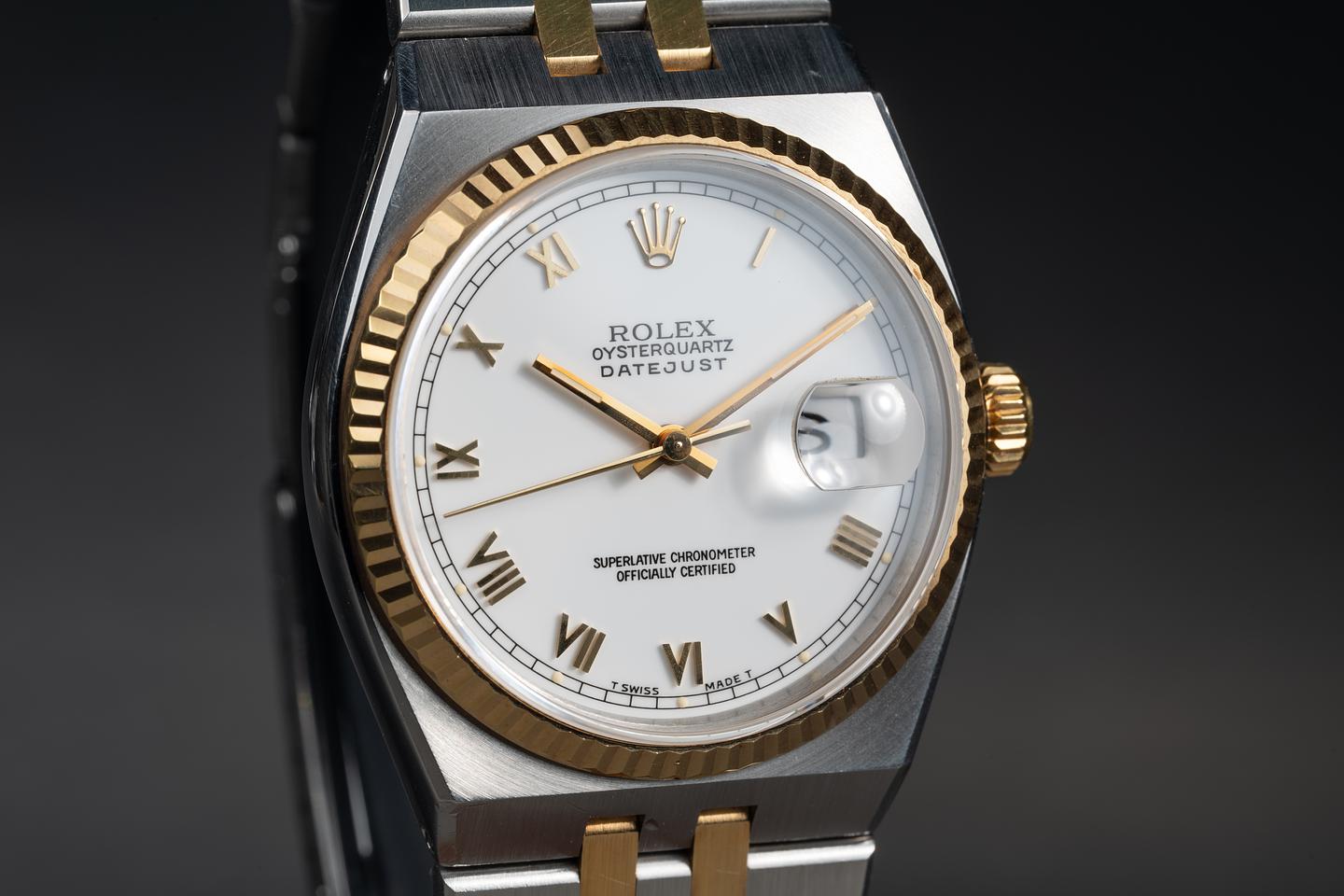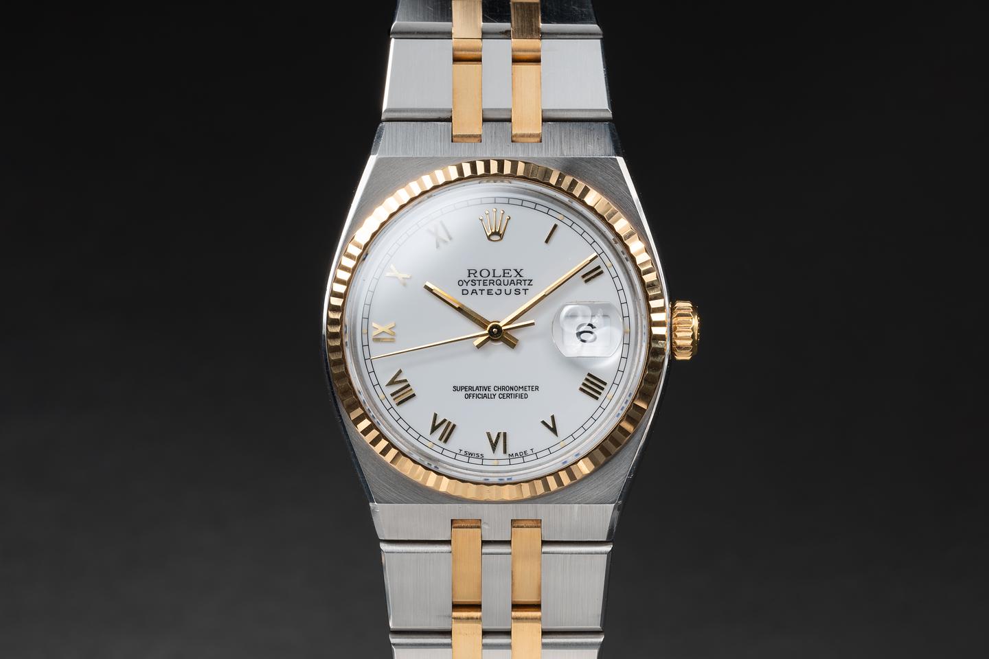 Bracelet: The 12 link two-tone OysterQuartz bracelet is excellent showing only very light stretch for its age. The clasp is stamped with a matching 1991 date code. The bracelet will fit up to a 17.4 cm . / 6.8" wrist.