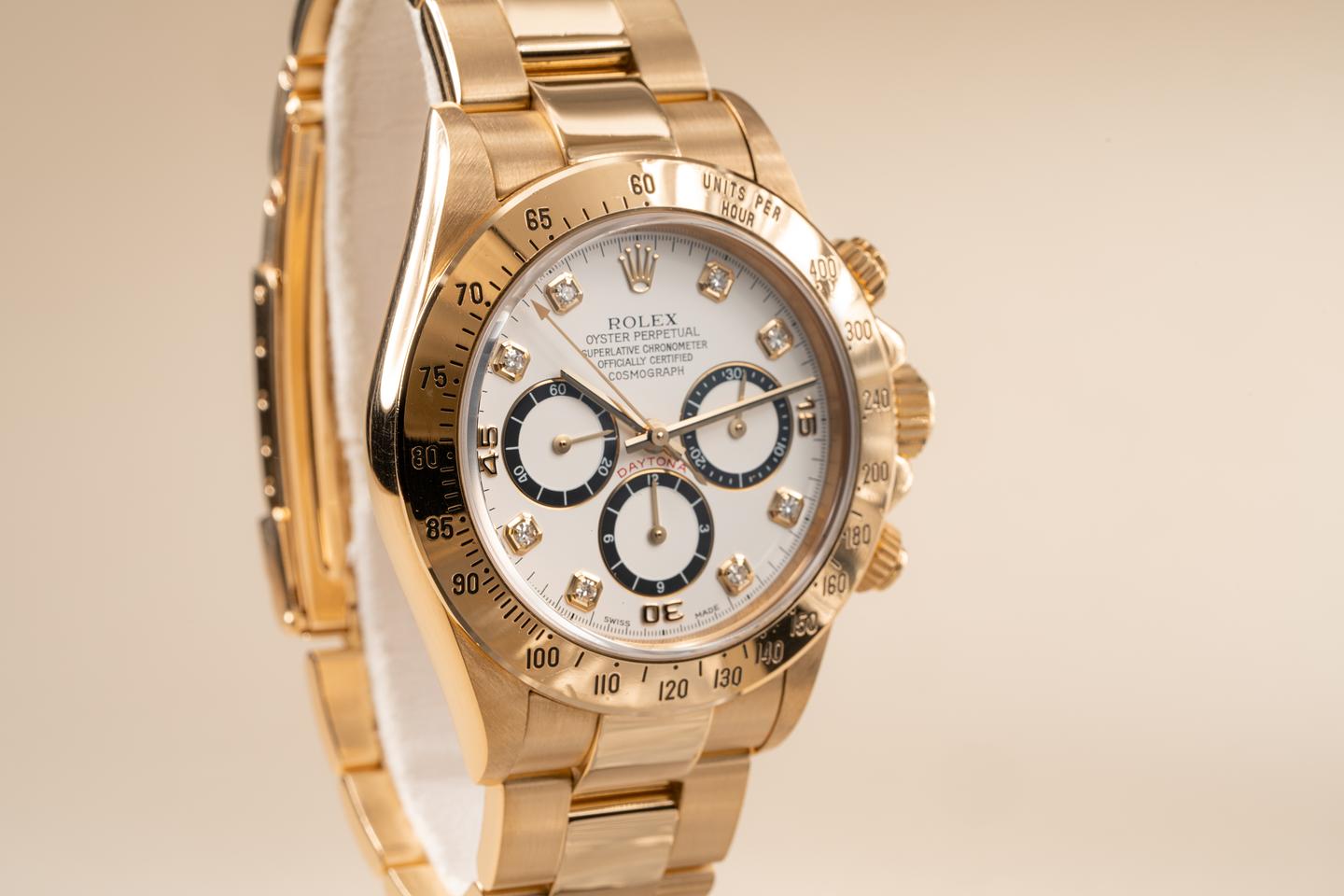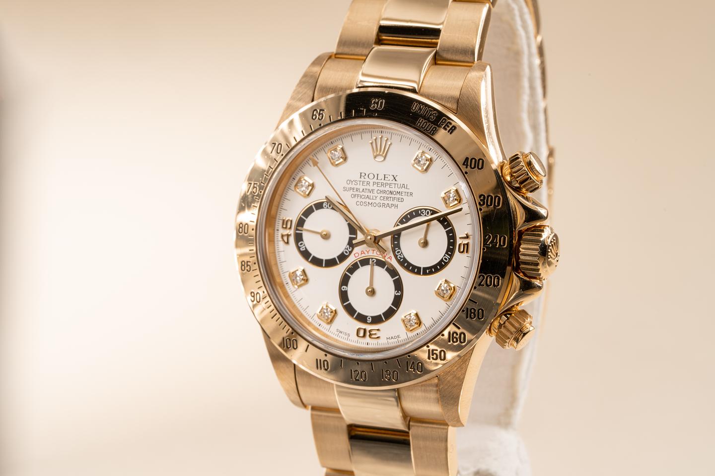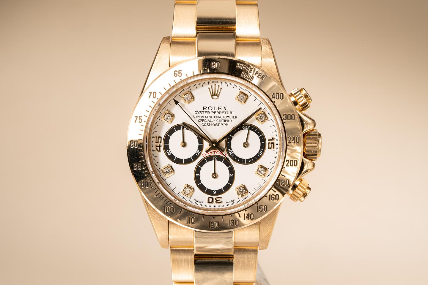 Dial: Excellent white inverted 6 diamond dial with correct non luminous Daytona hands.