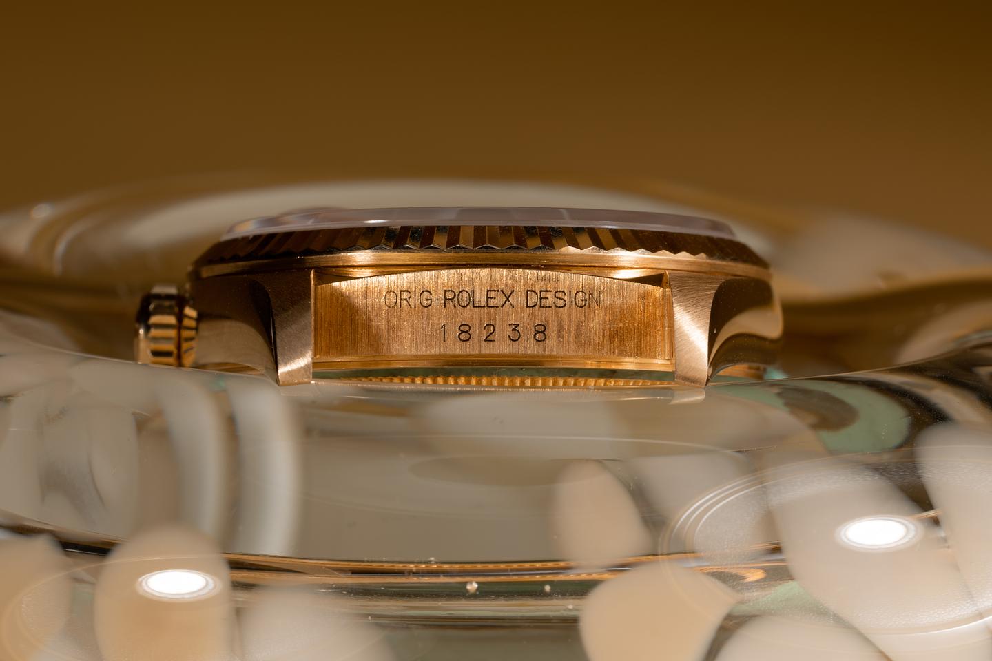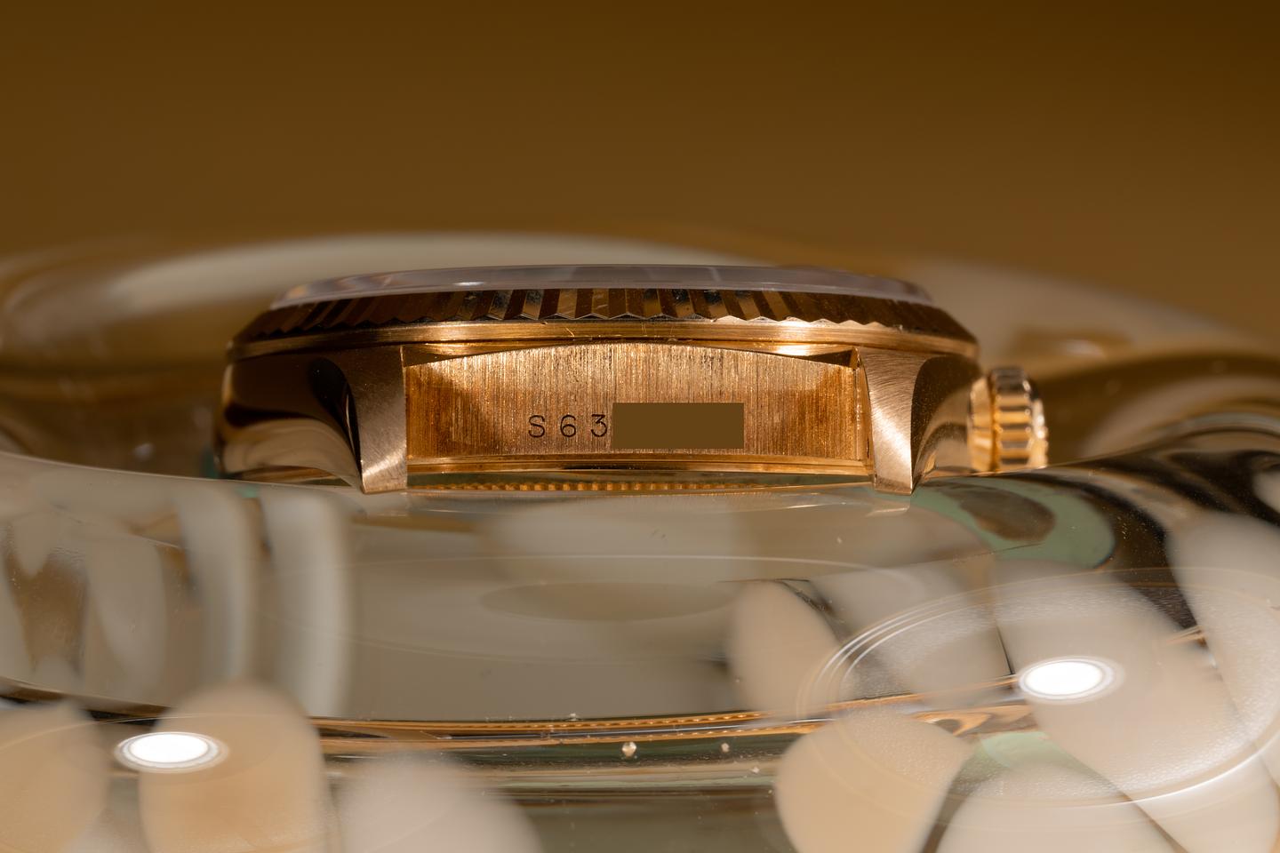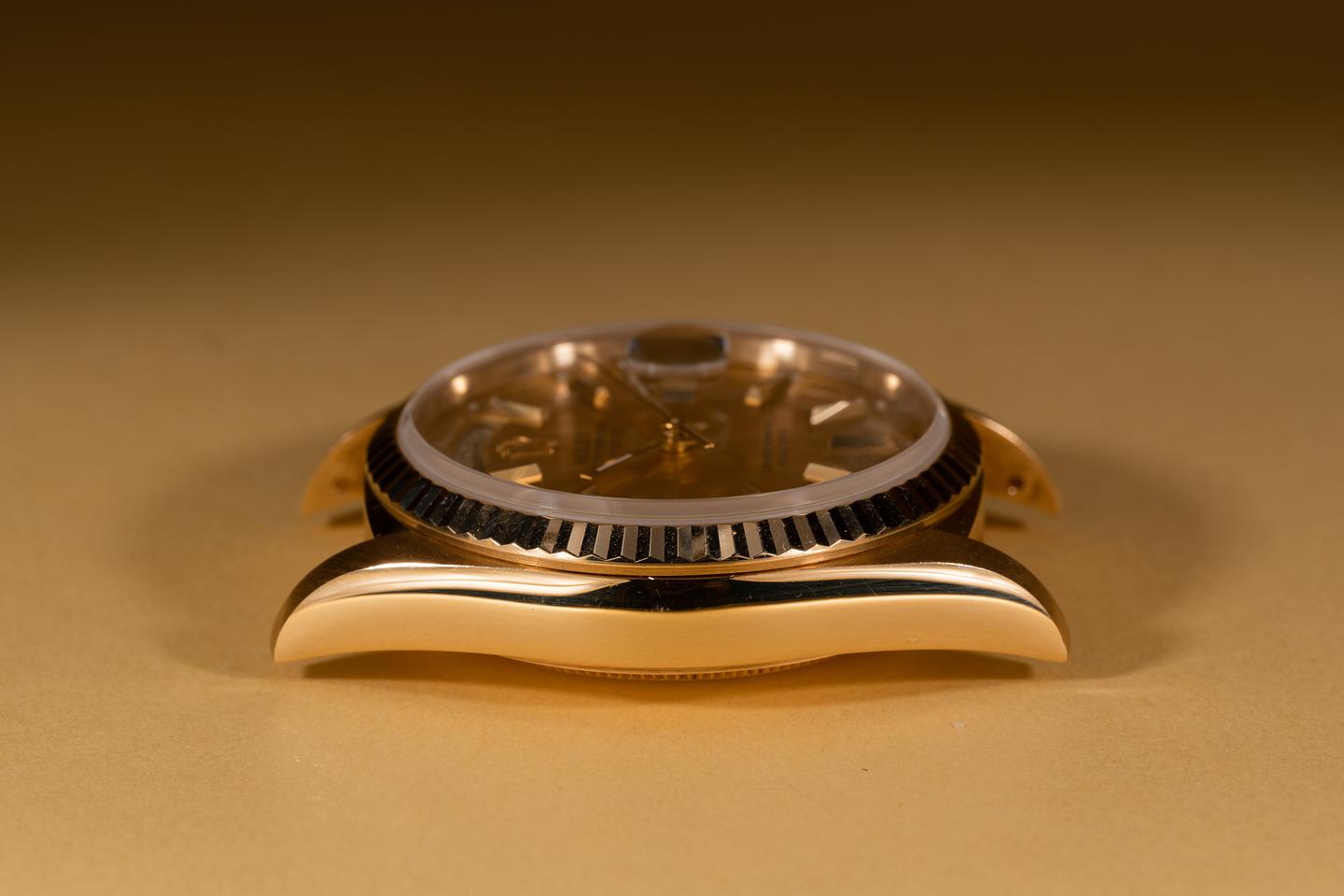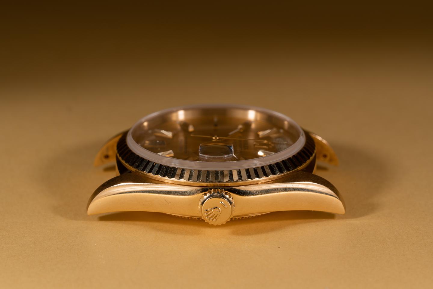 Case: The 18k yellow gold case is excellent showing only very light wear from use. The sharp 18k yellow gold fluted bezel is also in excellent condition showing only very light wear from use.