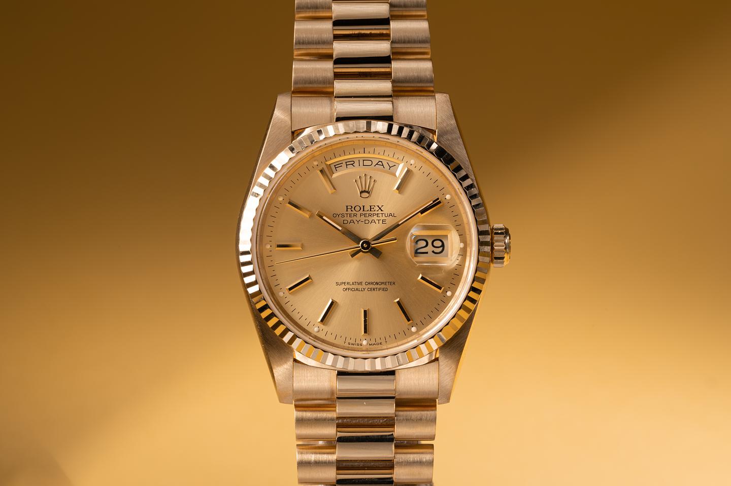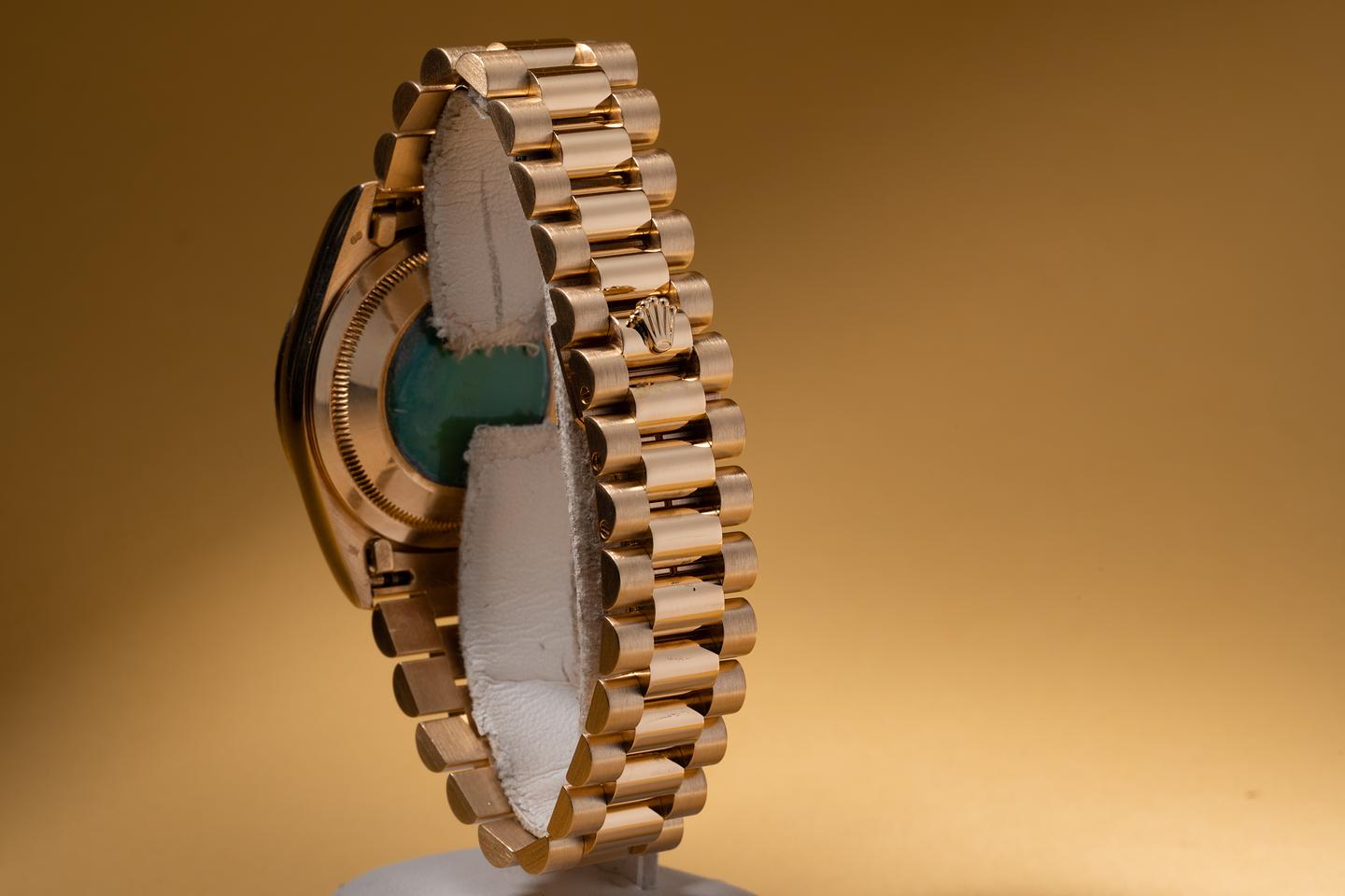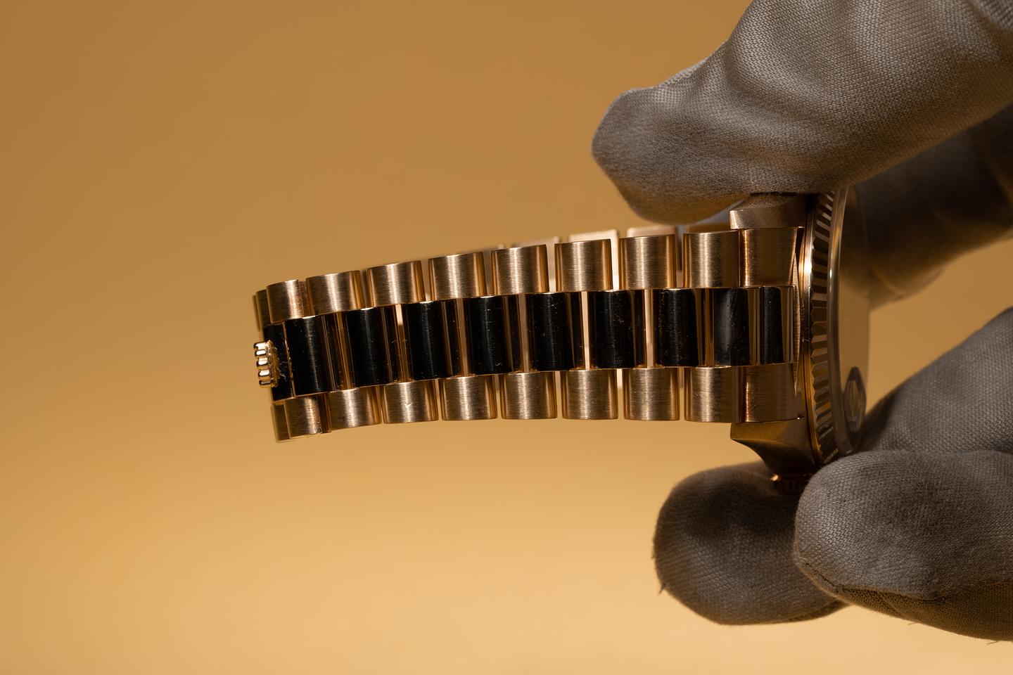 Bracelet: The 22 link 18K yellow gold President bracelet is excellent showing only very light stretch. The clasp is stamped with a 1995 date code.