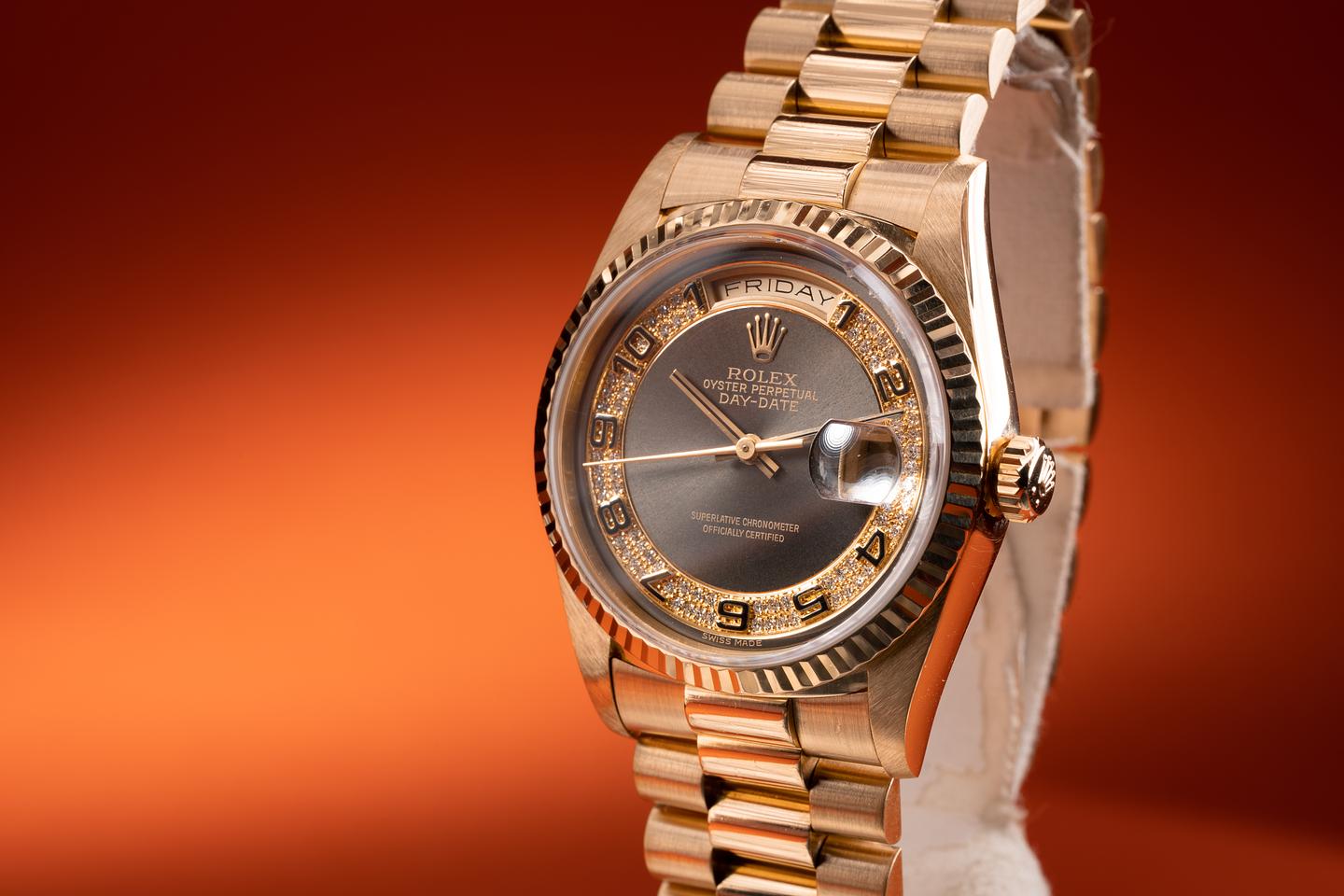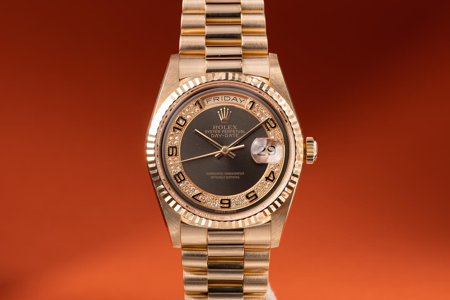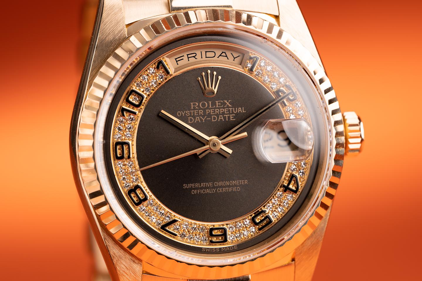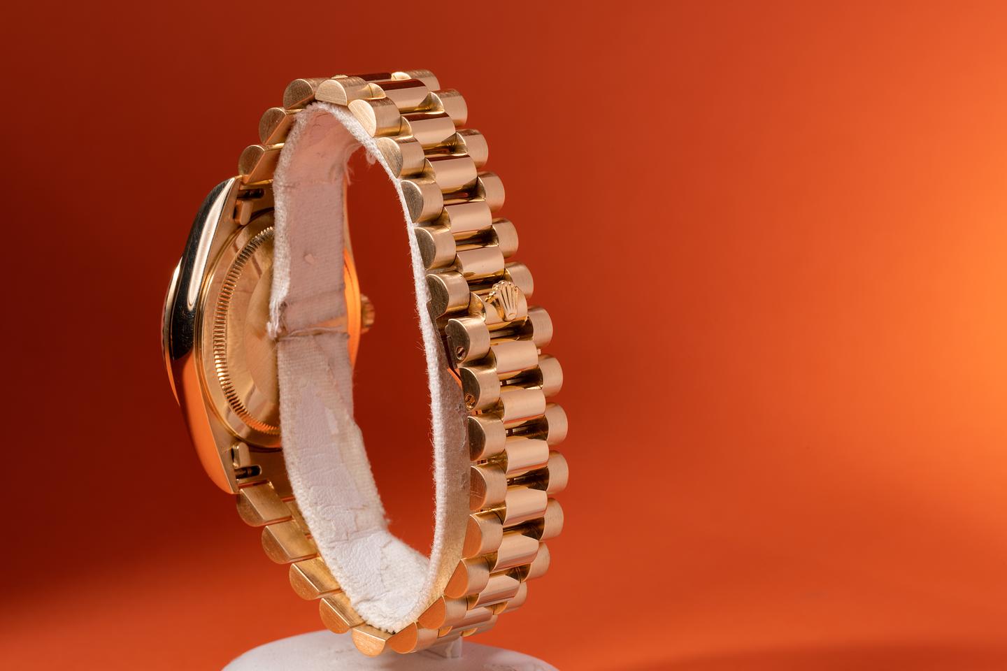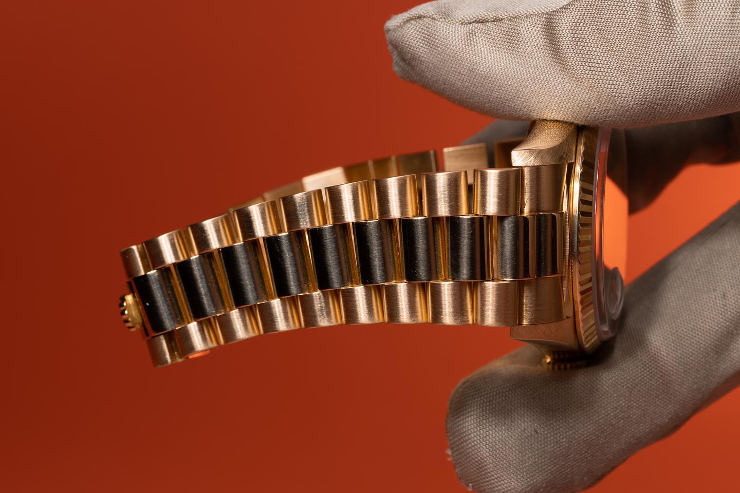 Bracelet: The 22 link 18K yellow gold President bracelet is excellent showing only very light stretch for its age. The clasp is stamped with a 1995 date code.