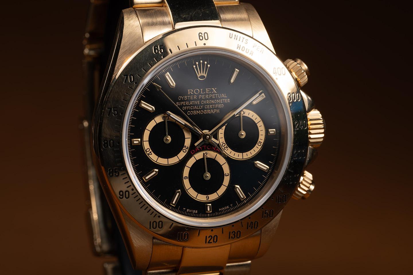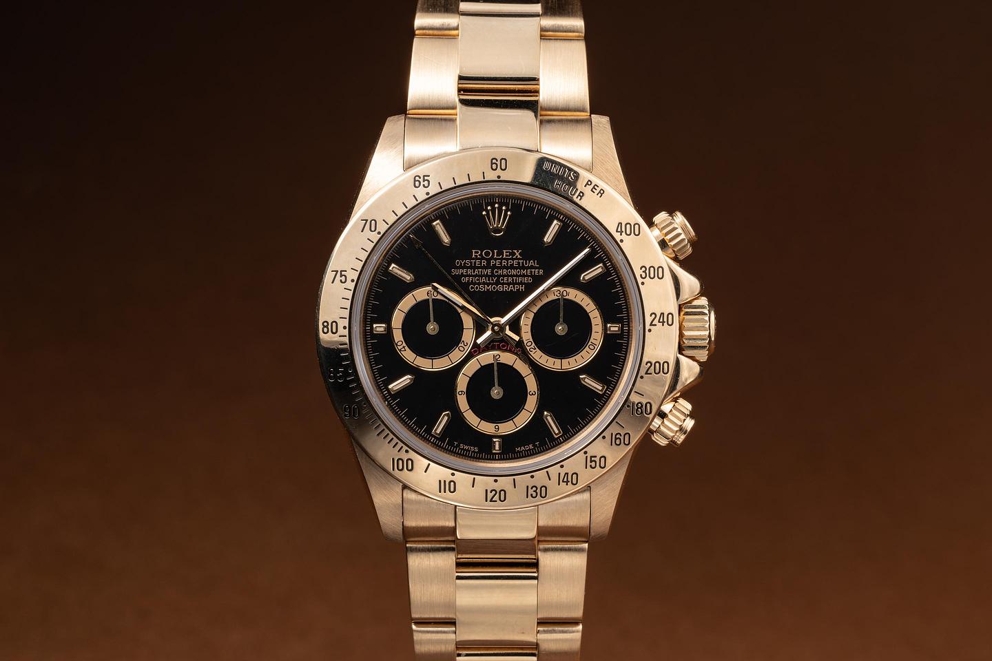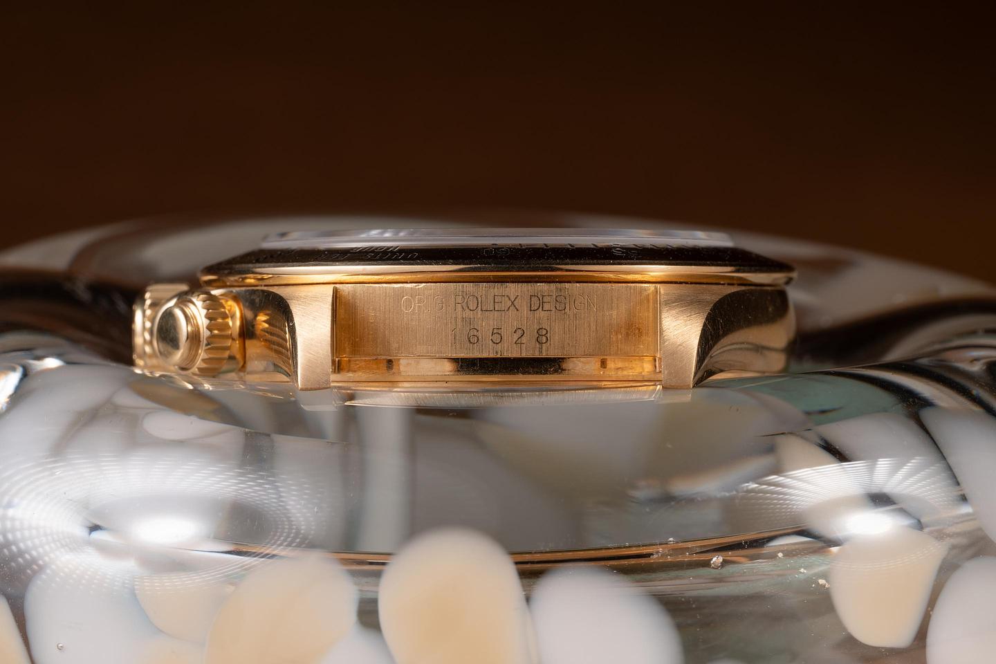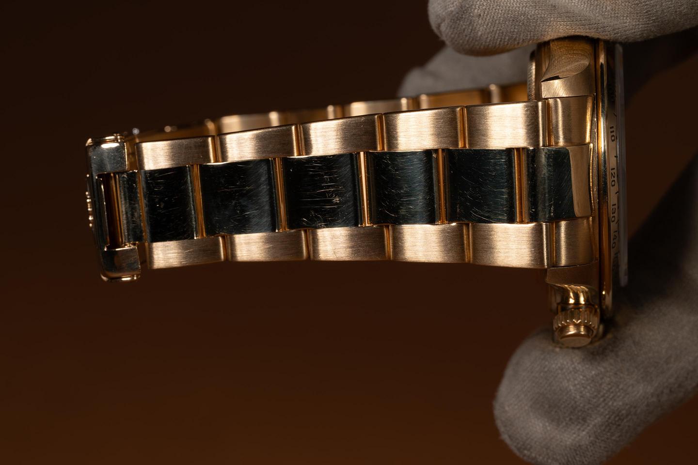 Bracelet: The 12-link 18K yellow gold Oyster bracelet is excellent, showing only very light stretch for its age.