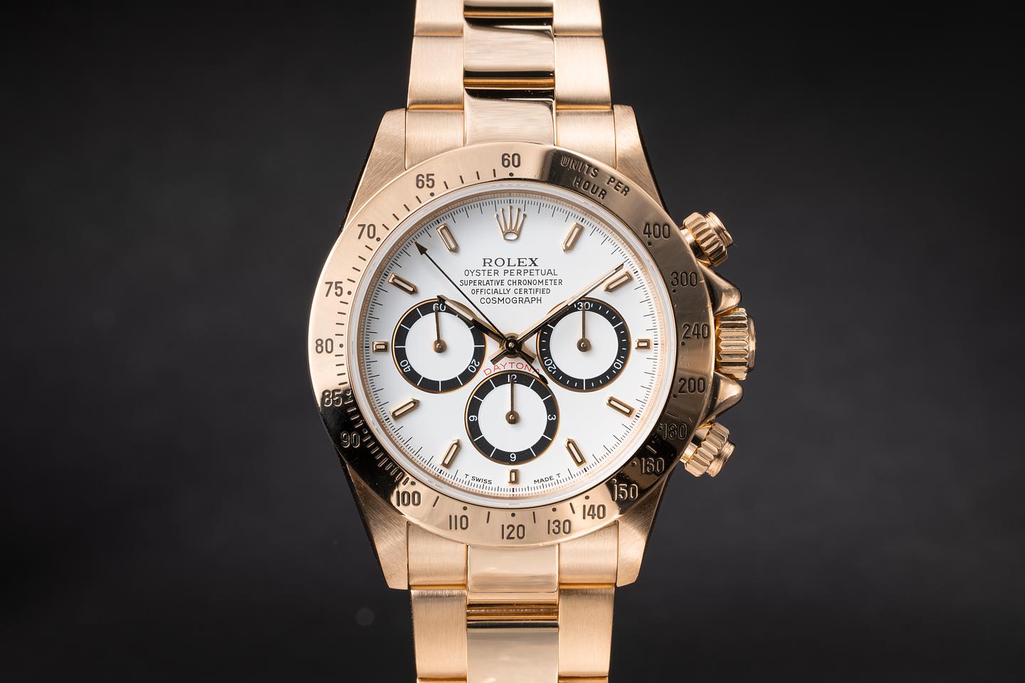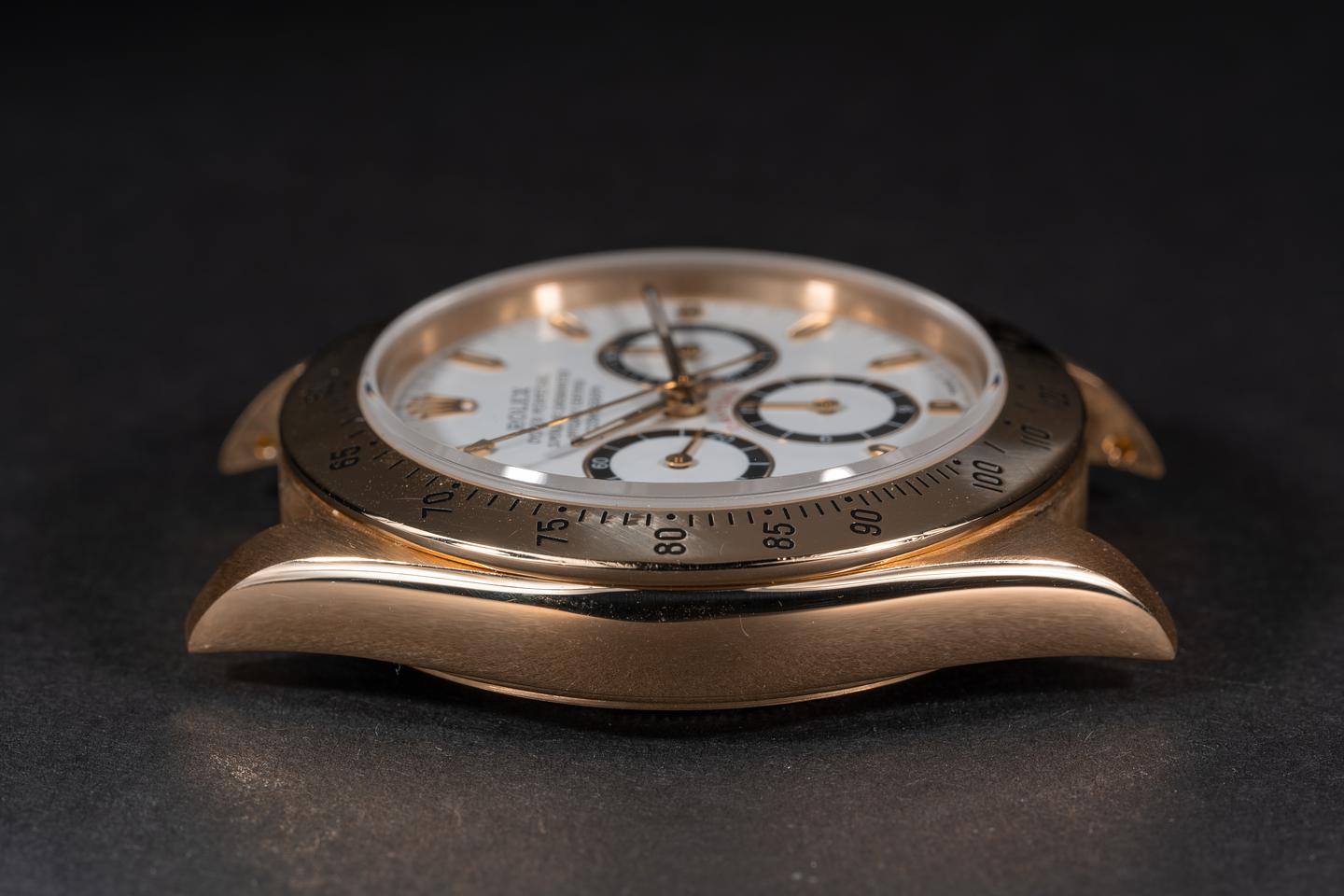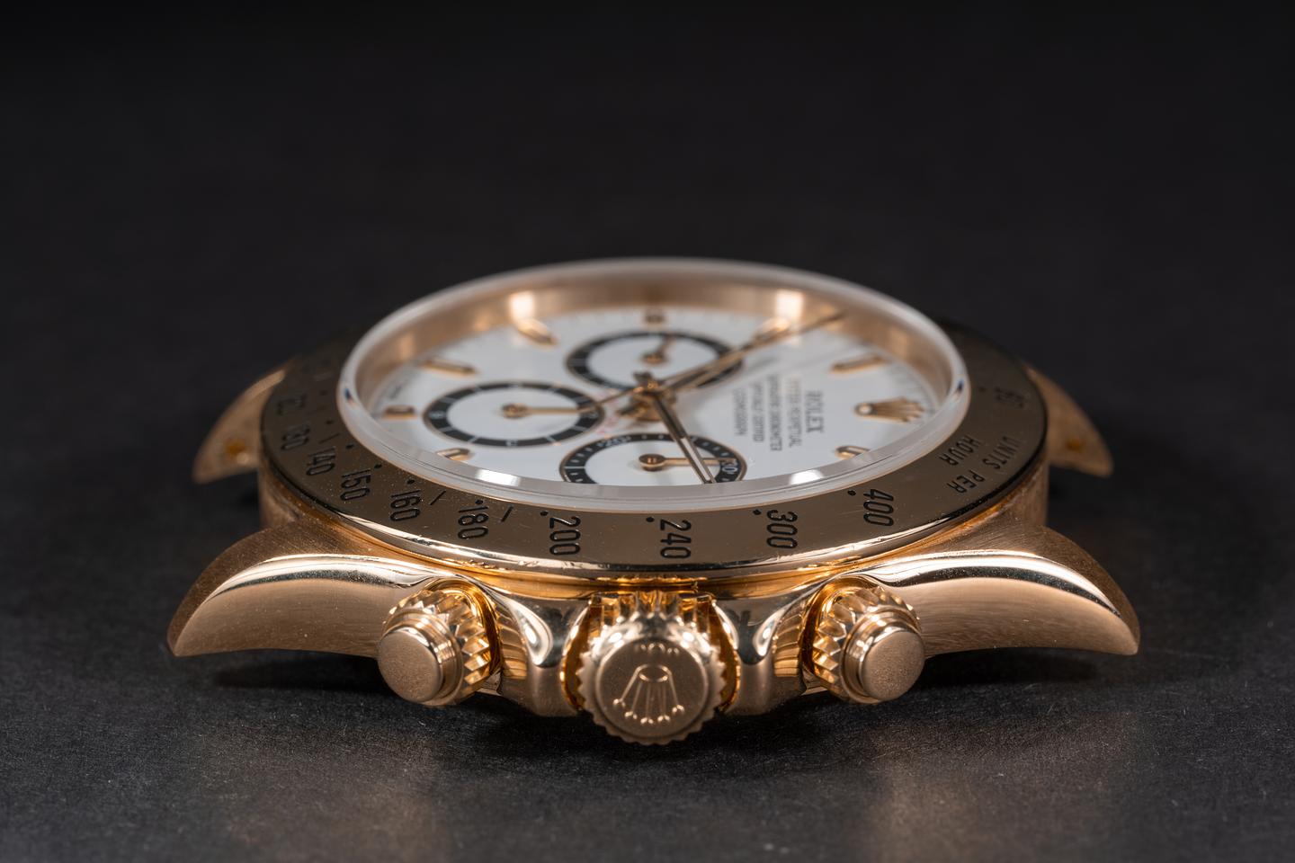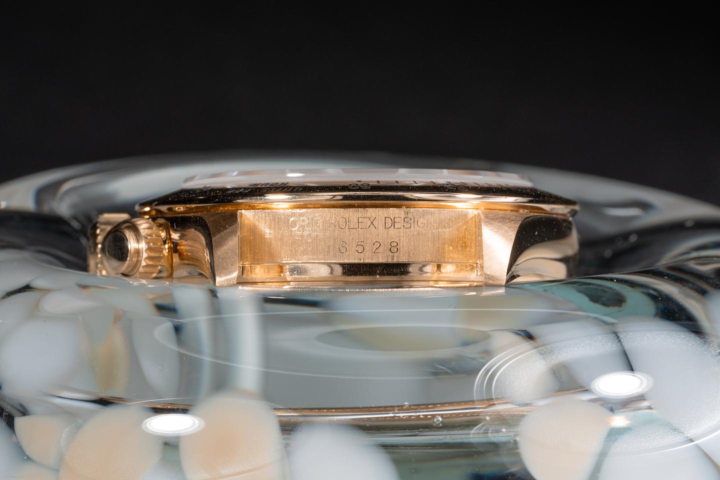 Case: The thick and even 18k yellow gold case is excellent showing only very light wear from use. The 18k yellow gold bezel is also in excellent condition showing only very light wear from use.