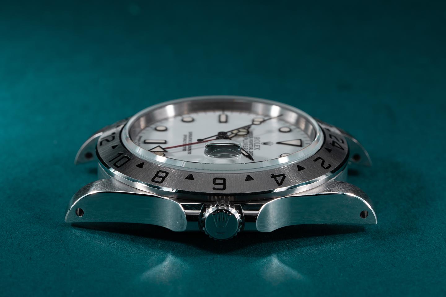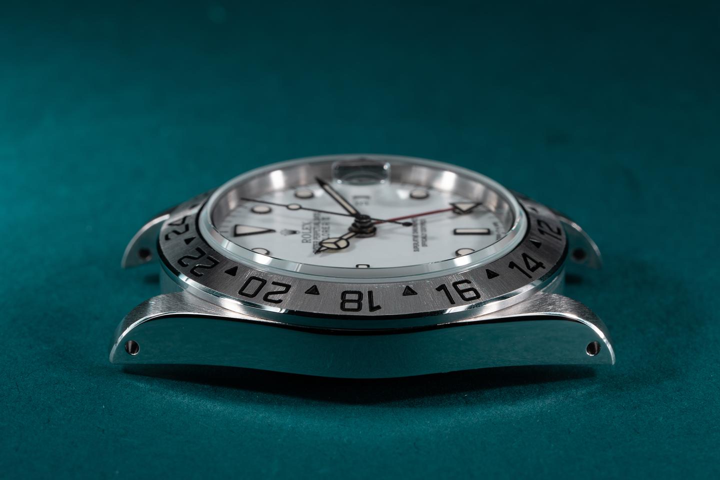Case: The previously polished case is excellent showing sharp prominent bevels and only light wear from use. The stainless bezel is also in excellent condition showing a sharp well defined sunburst finish and only very light wear from use.