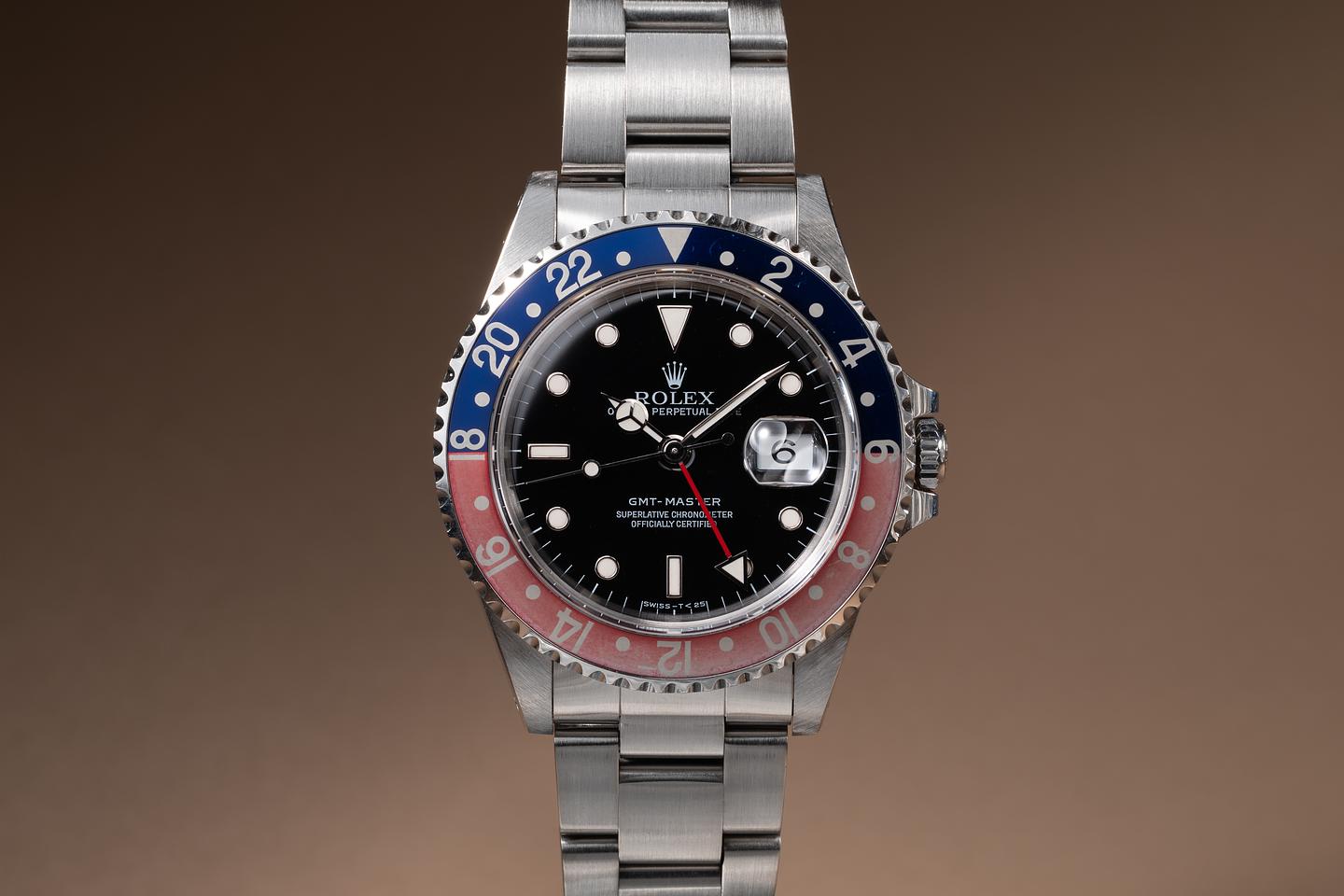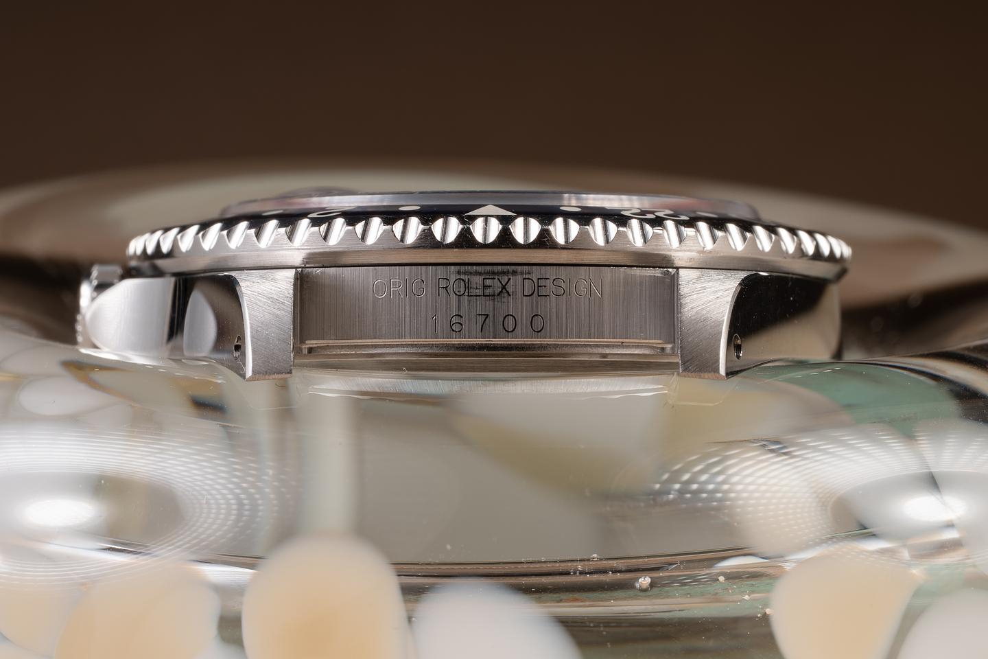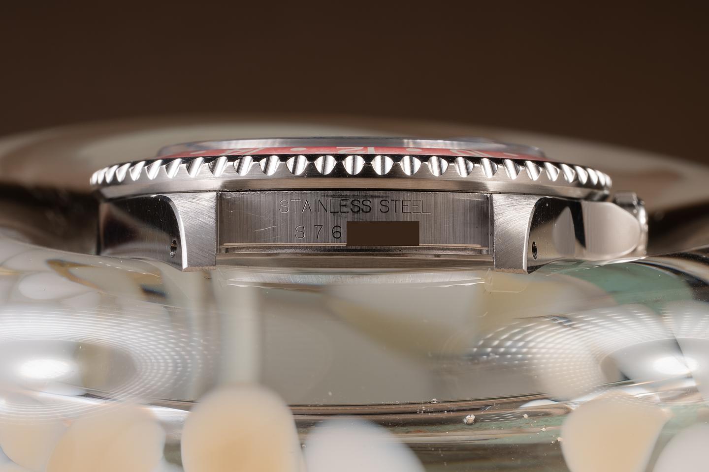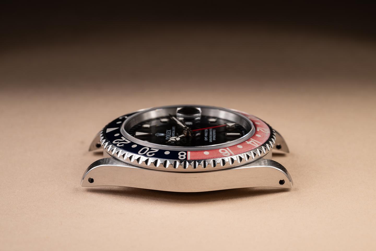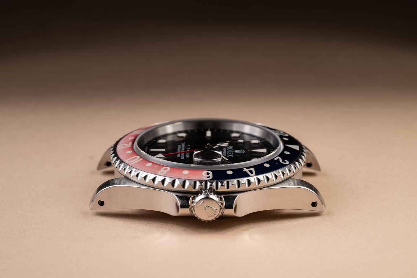 Case: The recently polished case is excellent, showing sharp, prominent bevels. The blue and red "Pepsi" bezel insert is also in excellent condition, showing significant fading to the red portion of the bezel.
