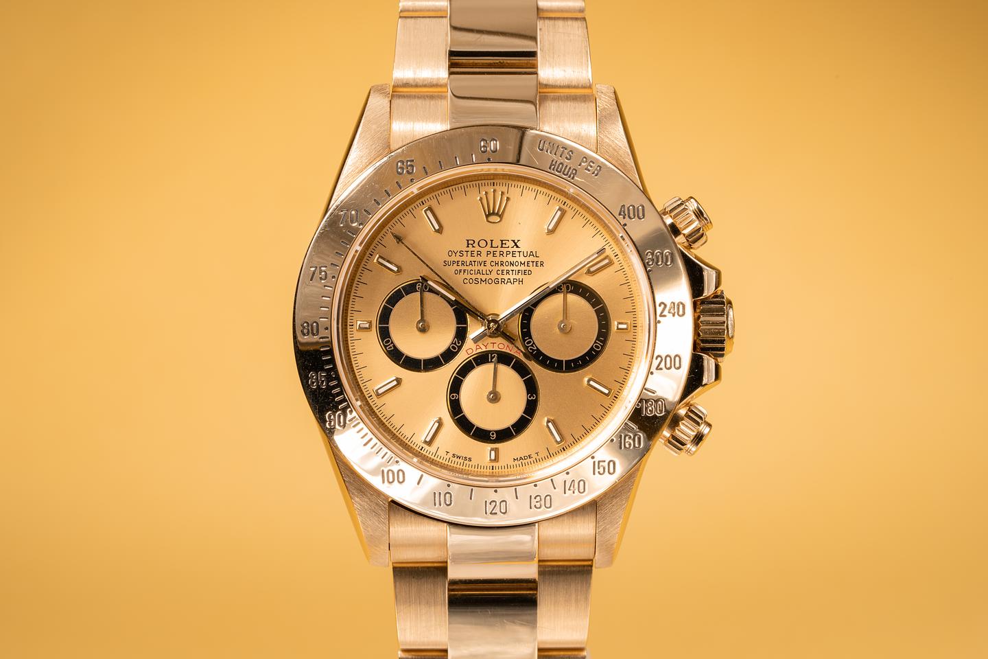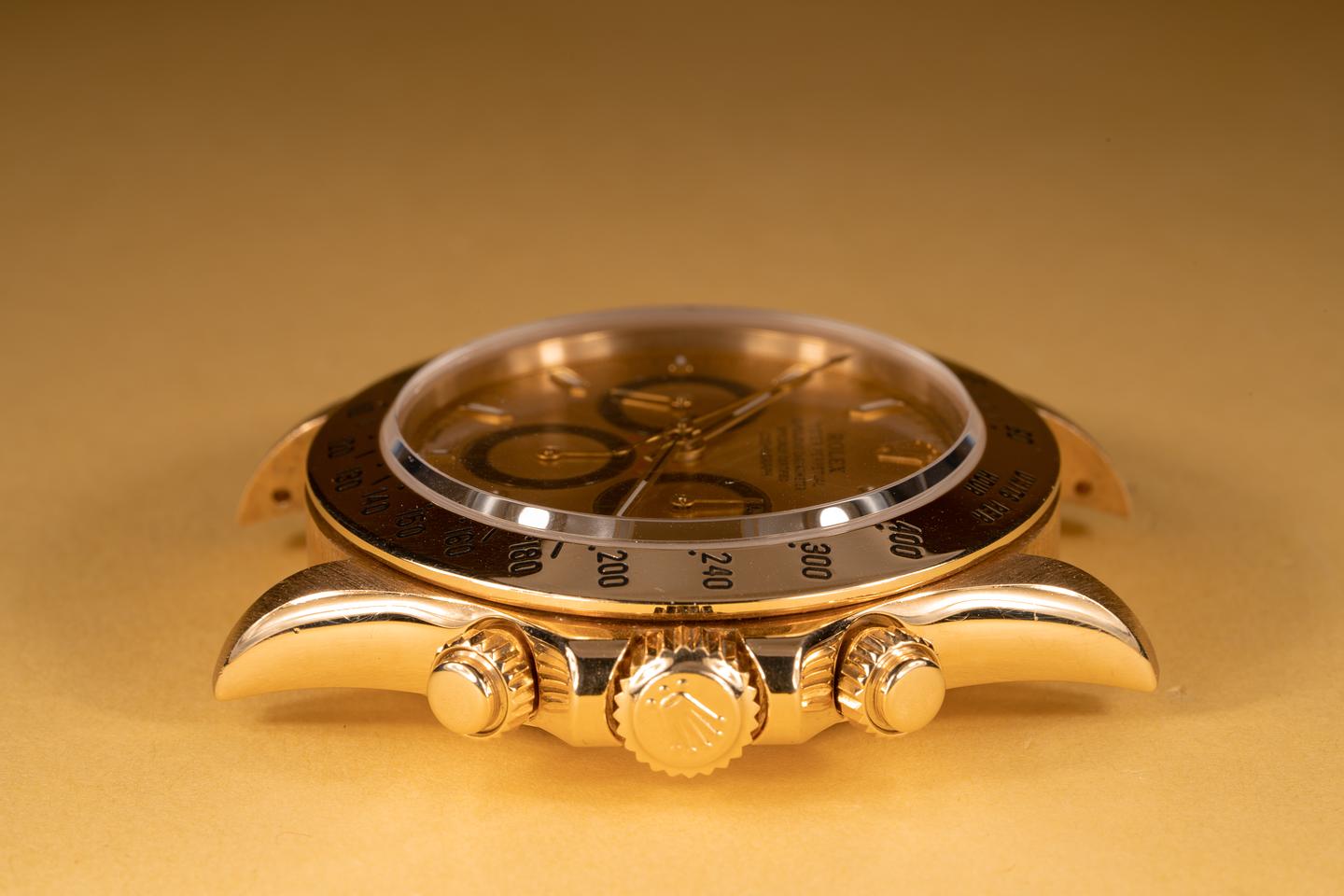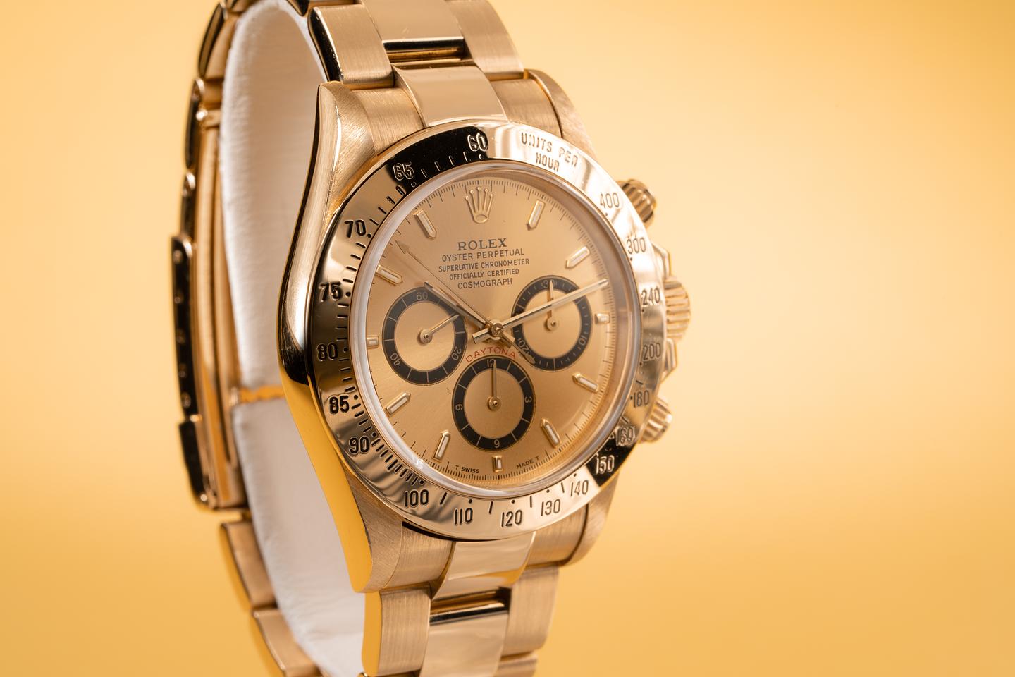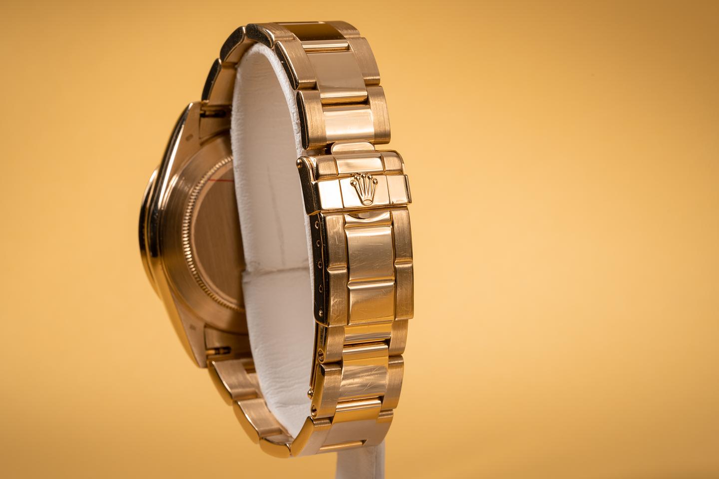 Bracelet: The 11 link 18k yellow gold oyster bracelet is excellent showing only very light stretch for its age. The clasp is stamped with a 1995 date code.