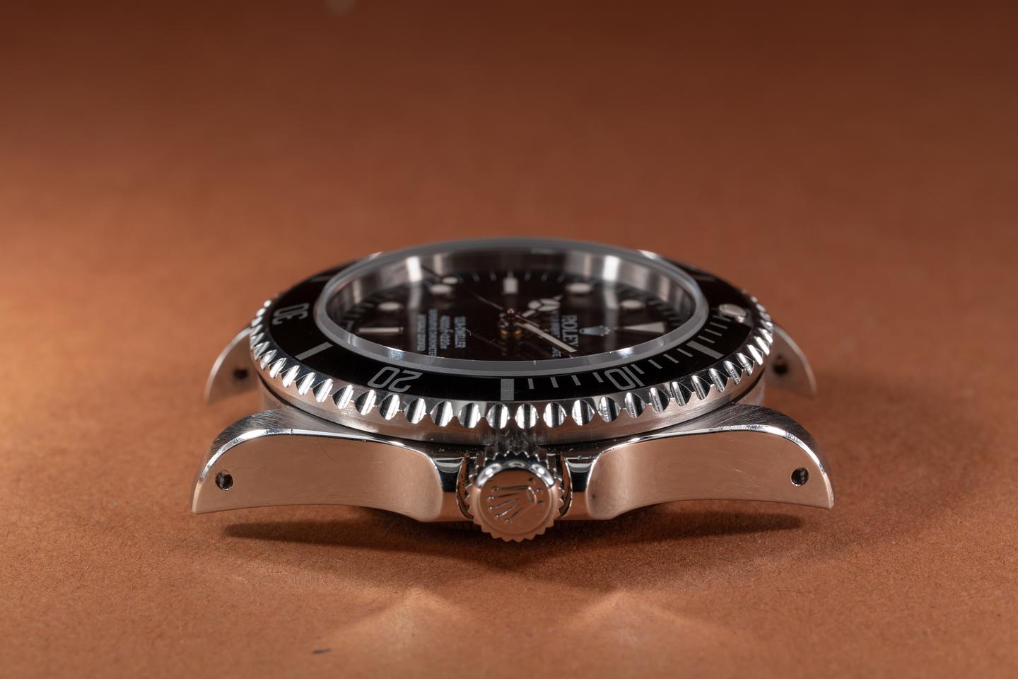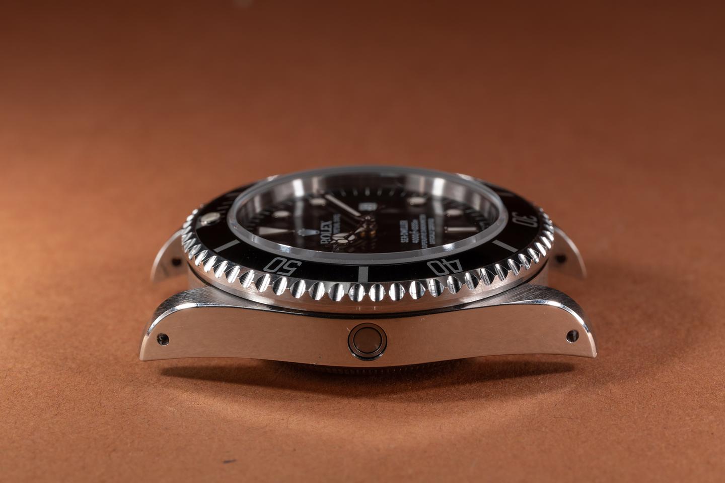 Case: The excellent thick and even case has been lightly polished in the past showing prominent bevels and only light wear from use. The black bezel insert is also in excellent condition showing only light wear from use.