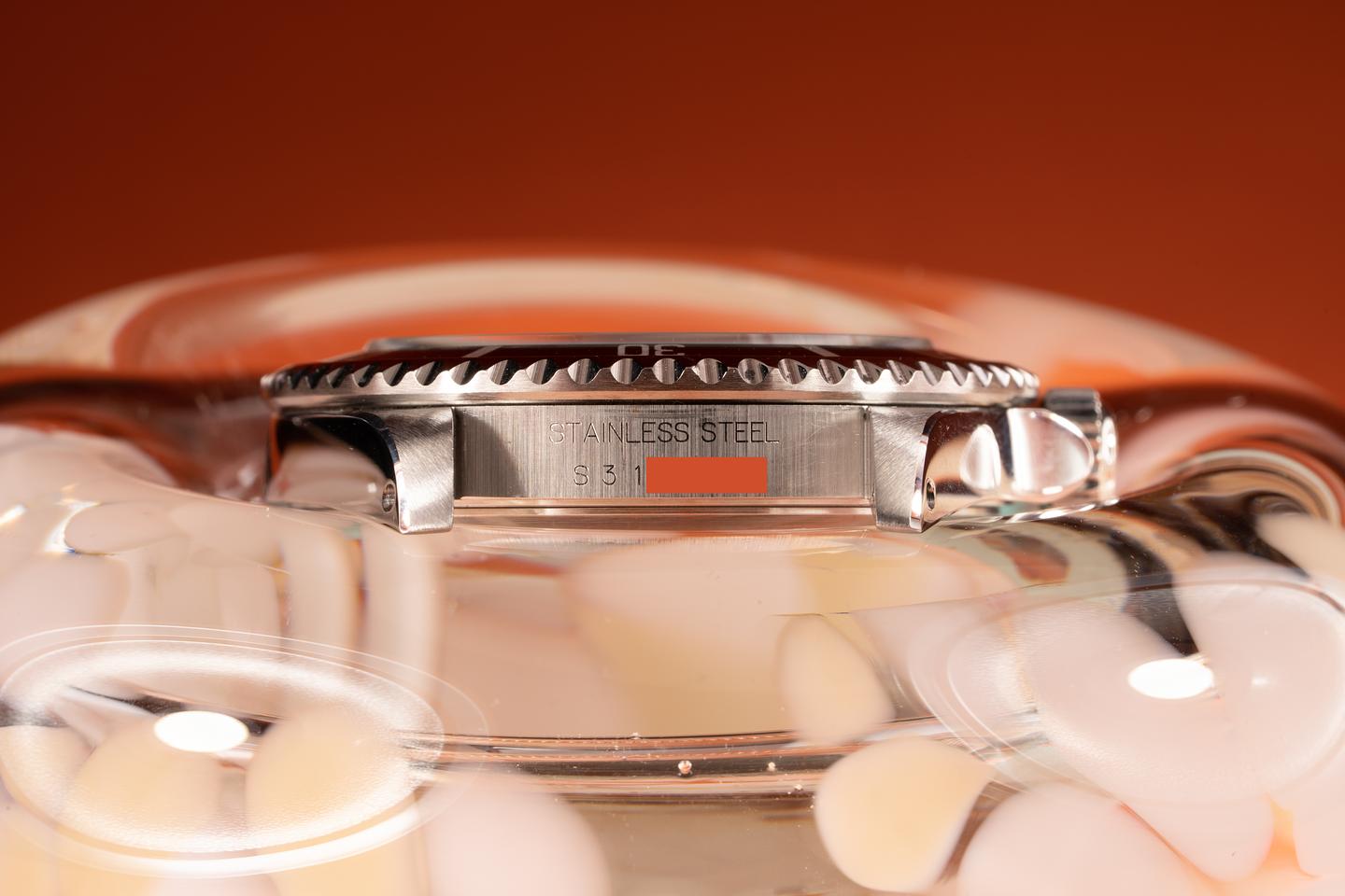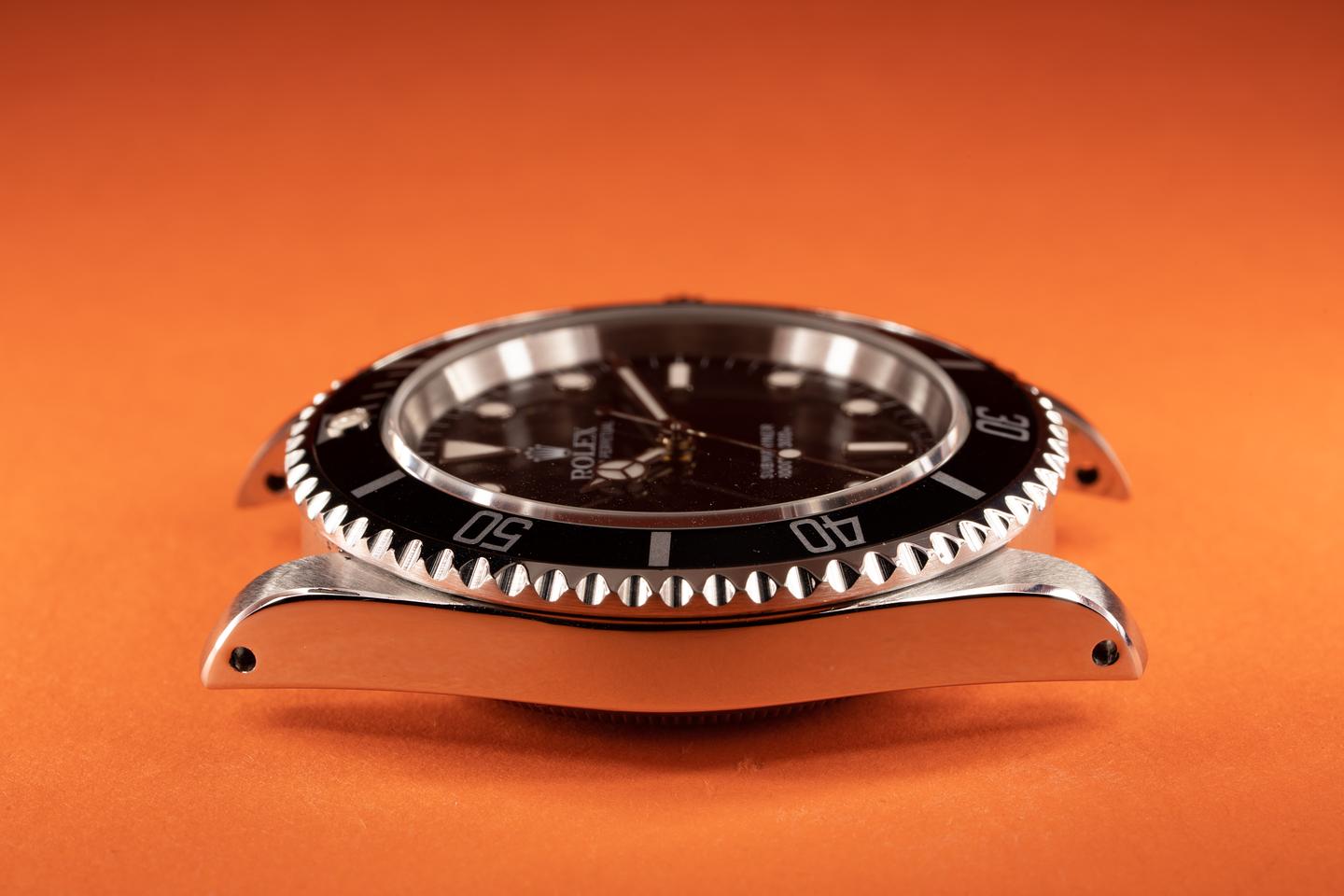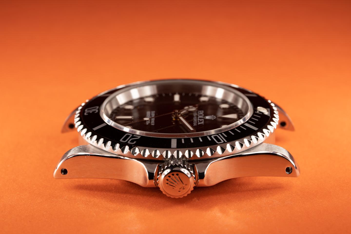 Case: The excellent case has just returned from polishing showing sharp prominent bevels. The black bezel insert is also in excellent condition and shows only light wear for its age.