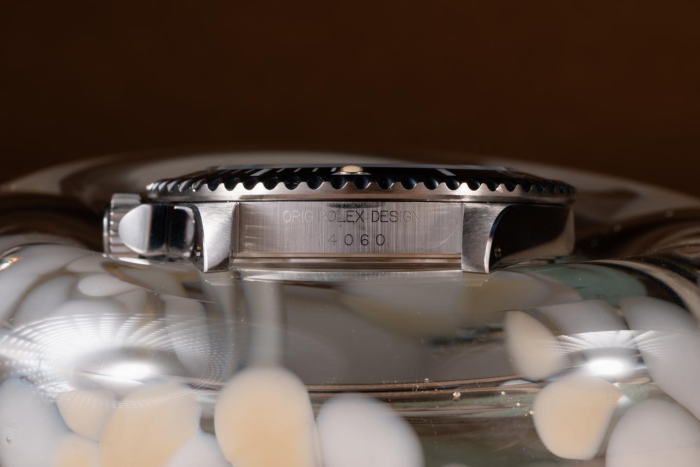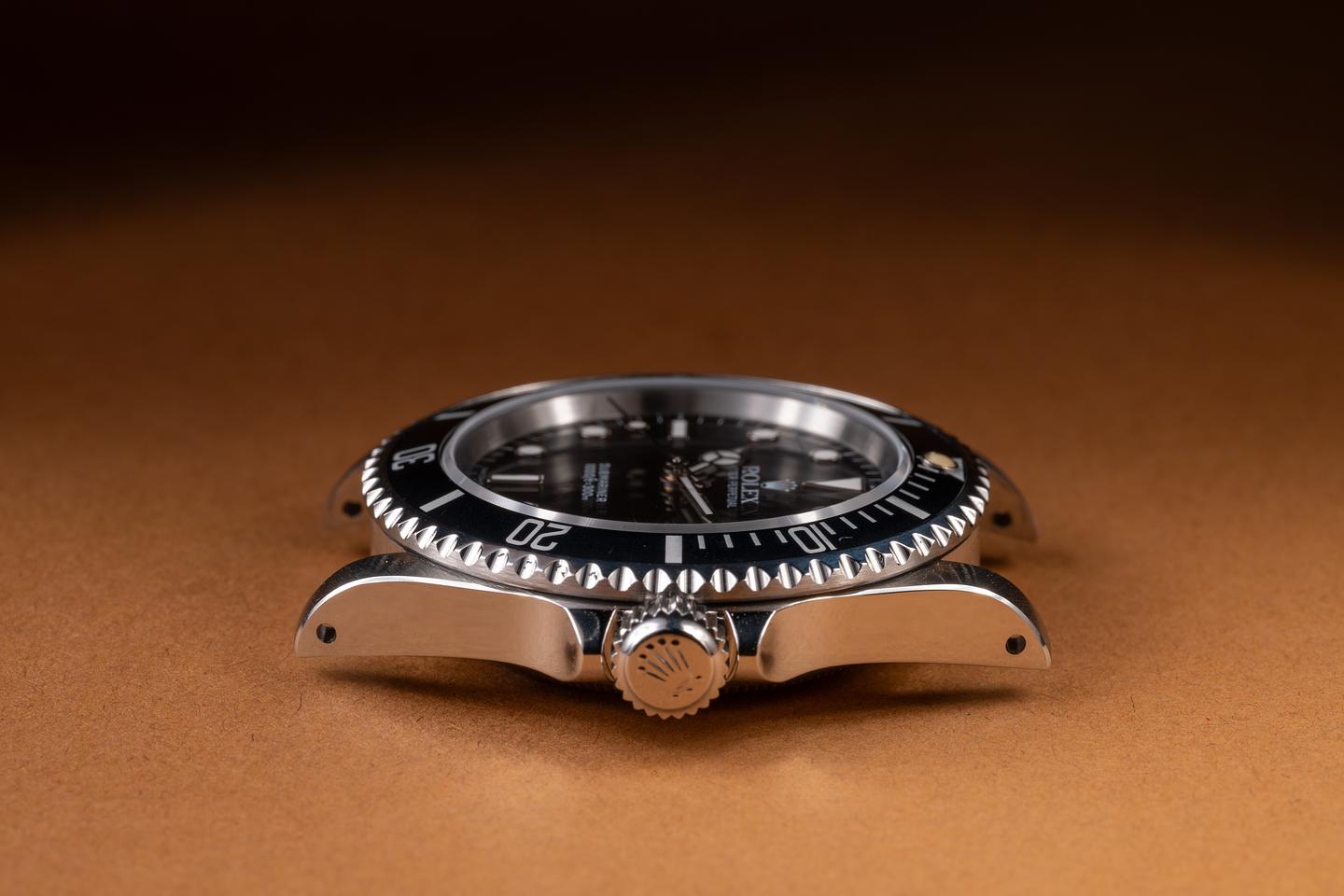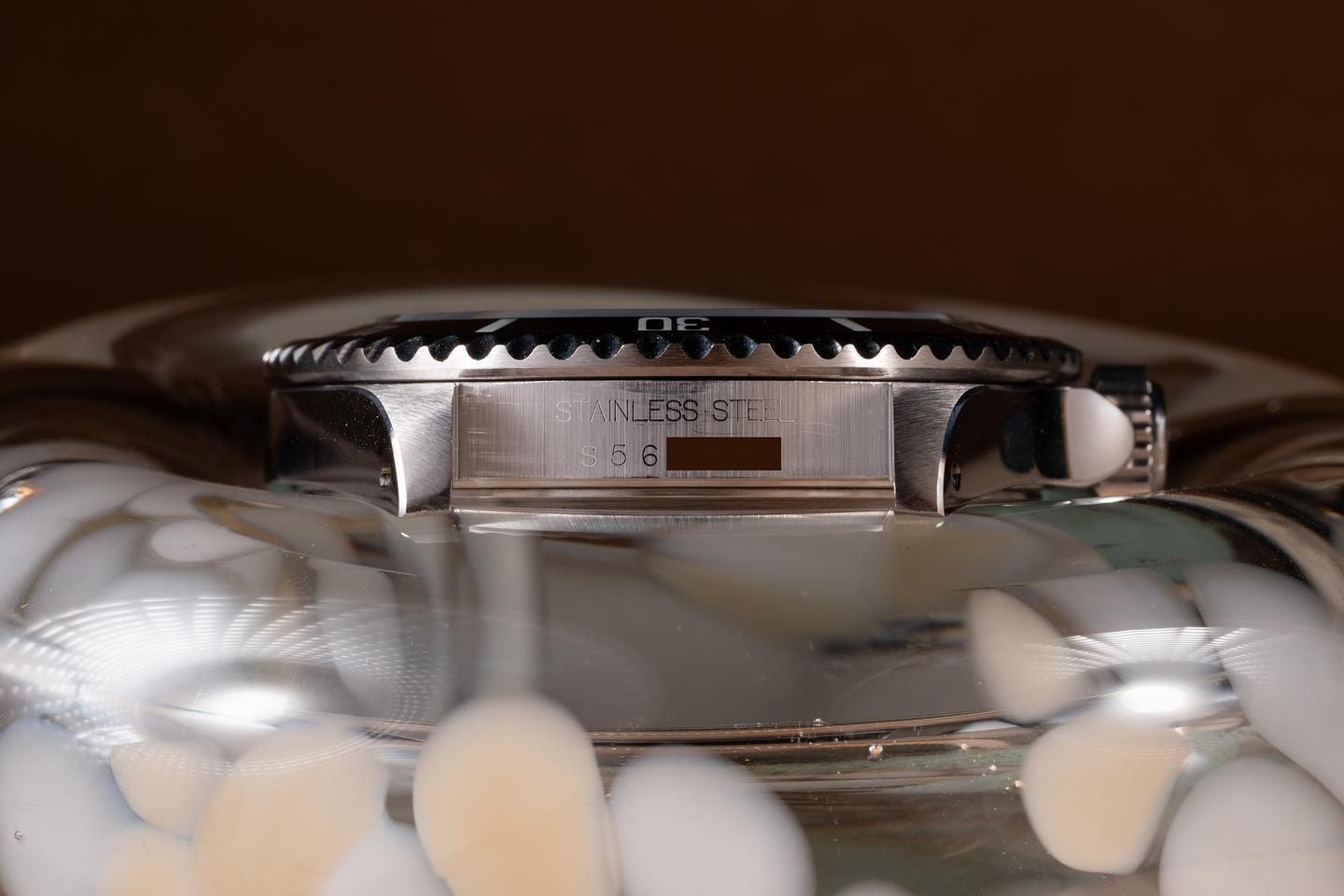Case: The recently polished case is excellent, showing sharp, prominent bevels and only very light wear. The black bezel insert is also in excellent condition, showing only very light wear from use.