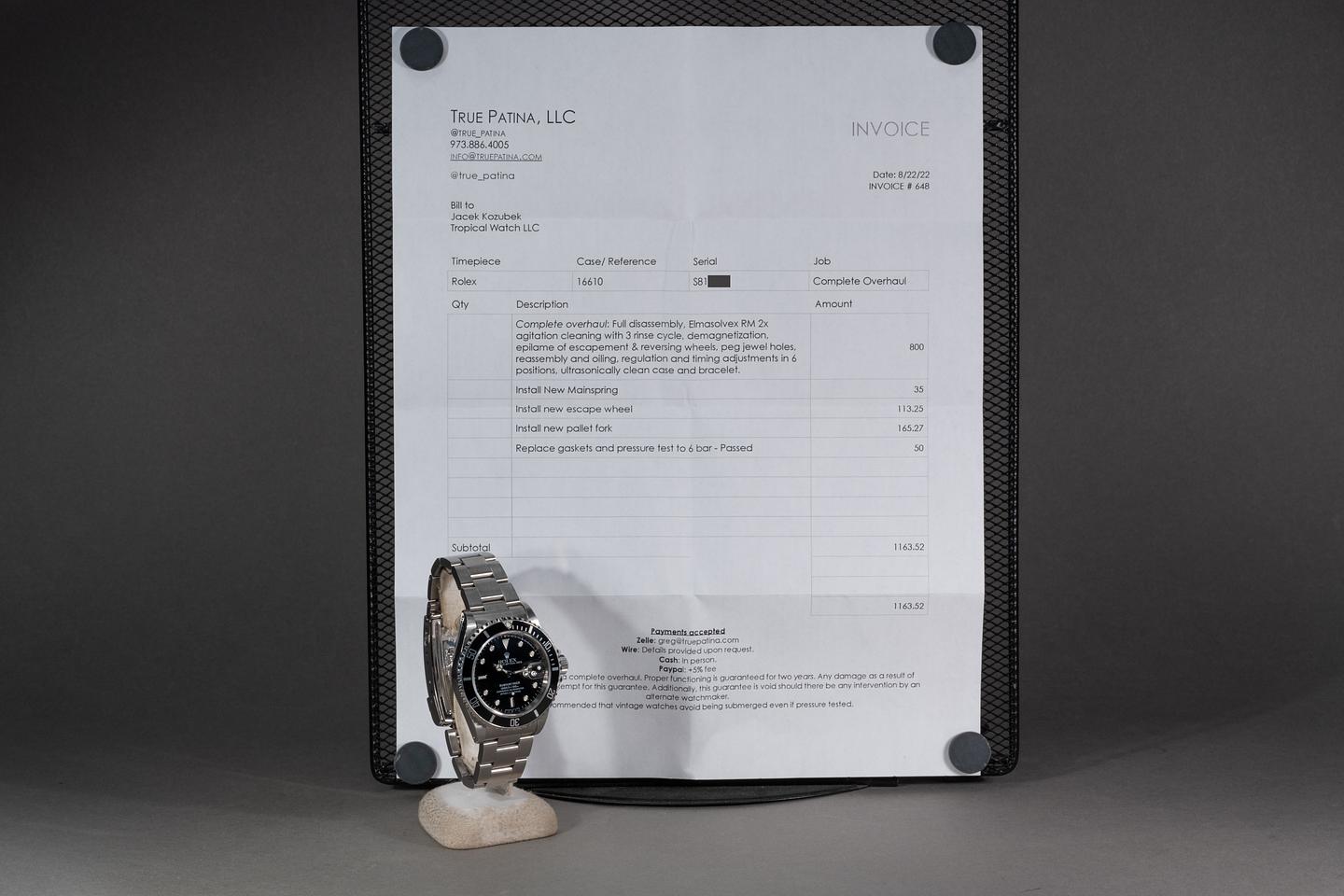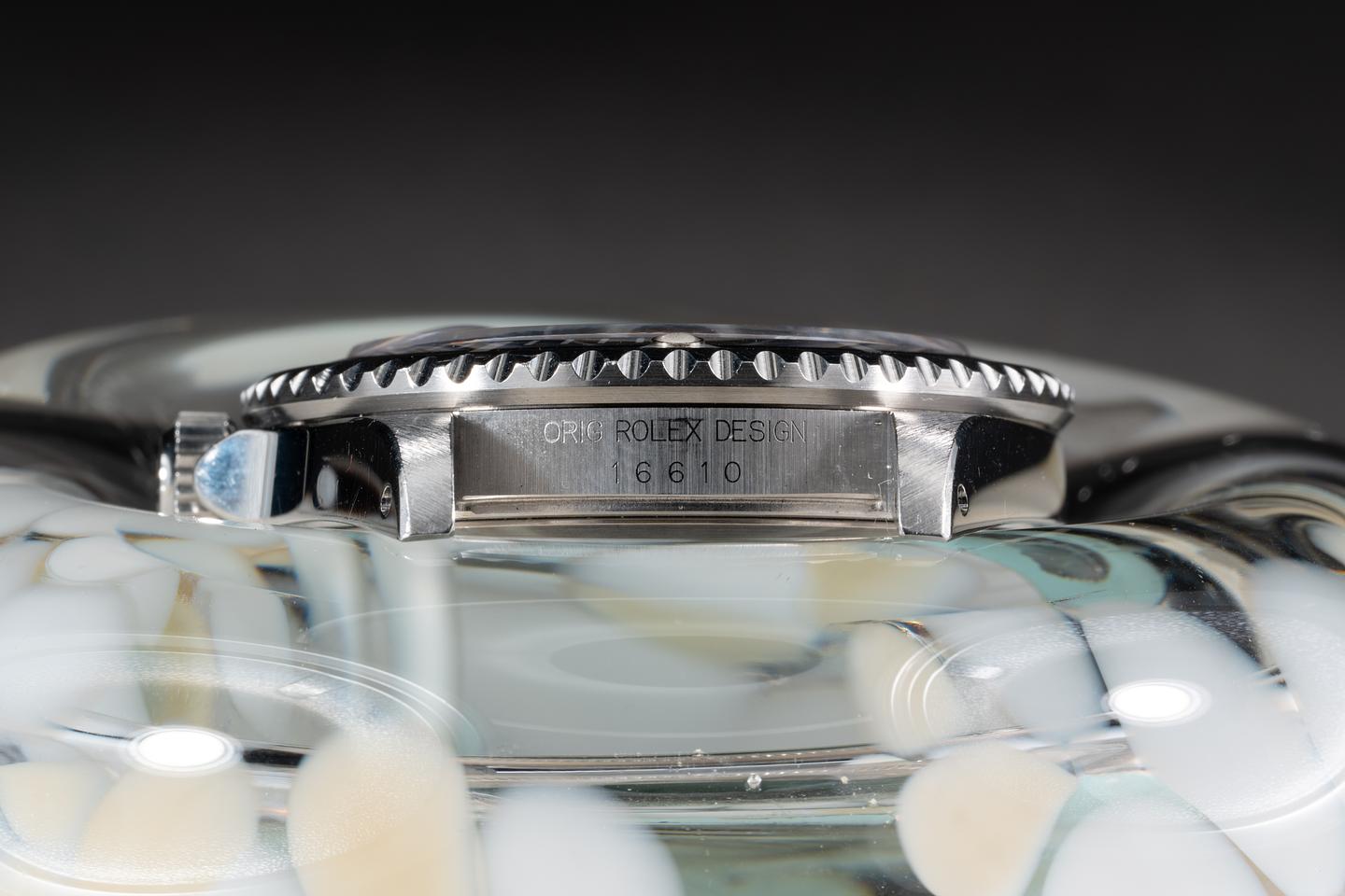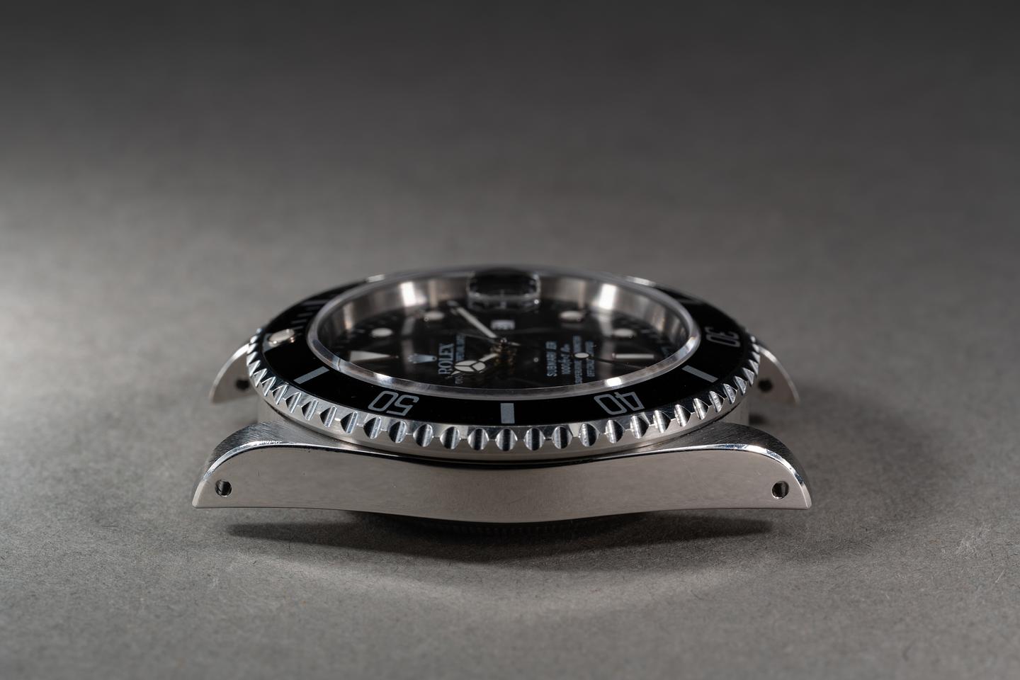 Case: The previously polished case is excellent showing prominent bevels and some light wear from use. the black bezel insert is also in excellent condition showing only light wear from use.