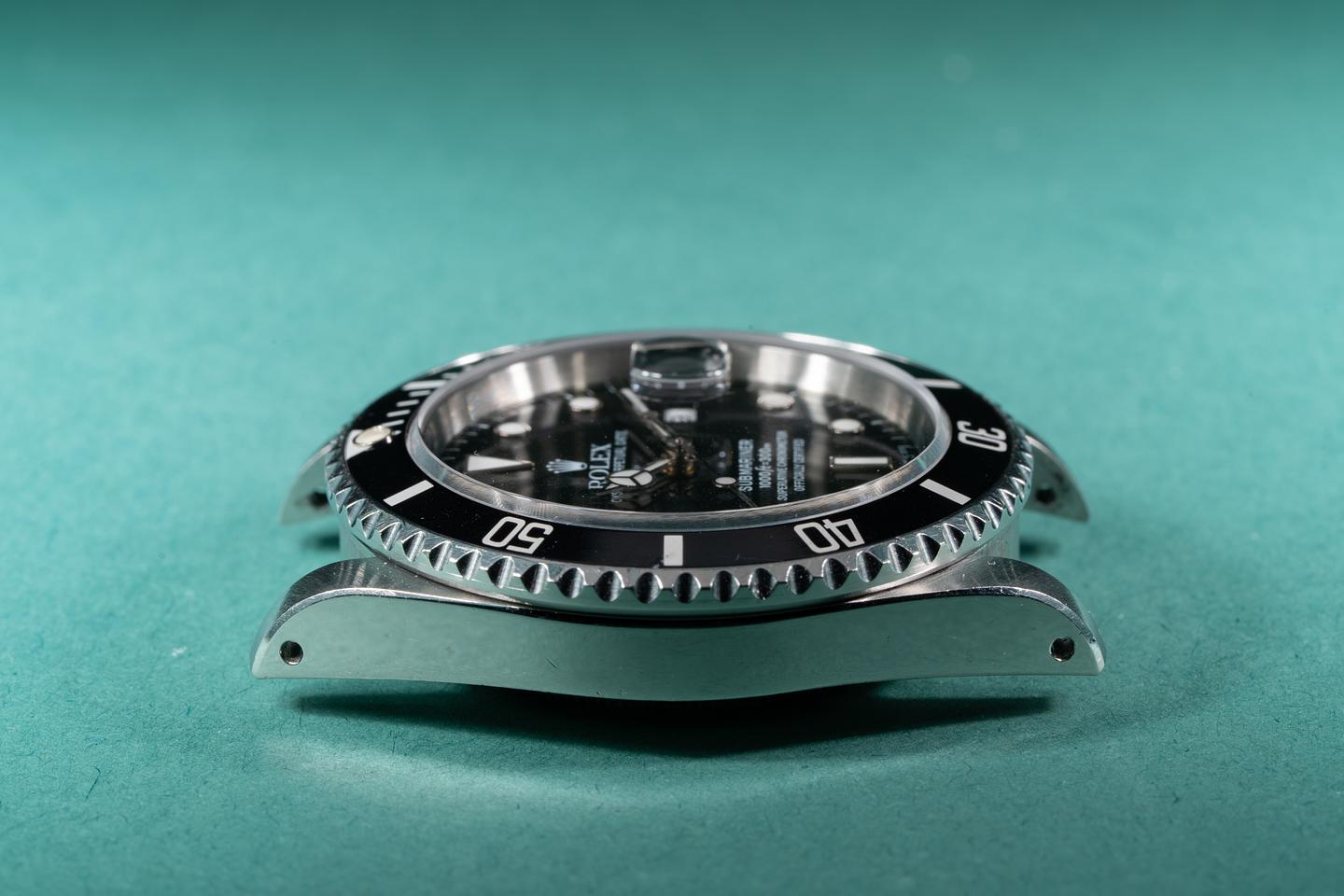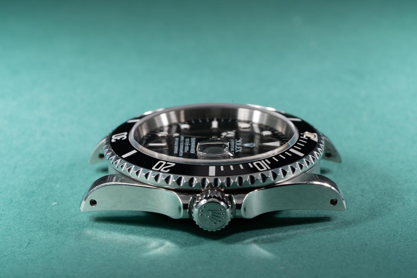 Case: The thick and even case is excellent and appears to be unpolished showing only light wear from use. The black bezel insert is also excellent showing light wear.
