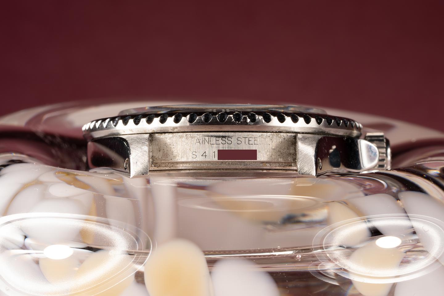 Case: Excellent case with light wear from use. The black bezel insert shows very light wear and the original pearl is present and intact.