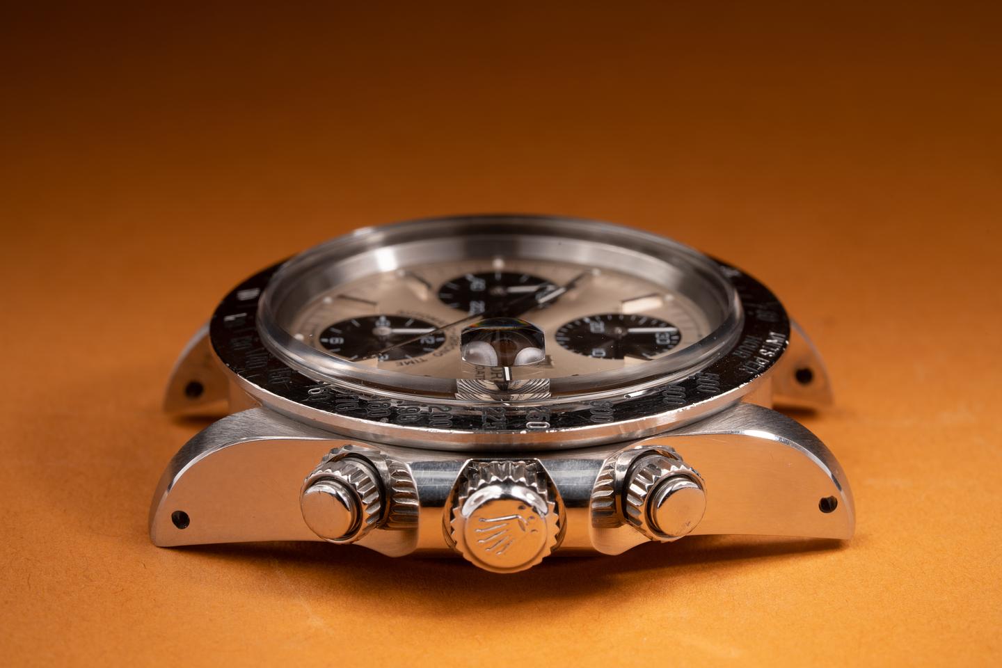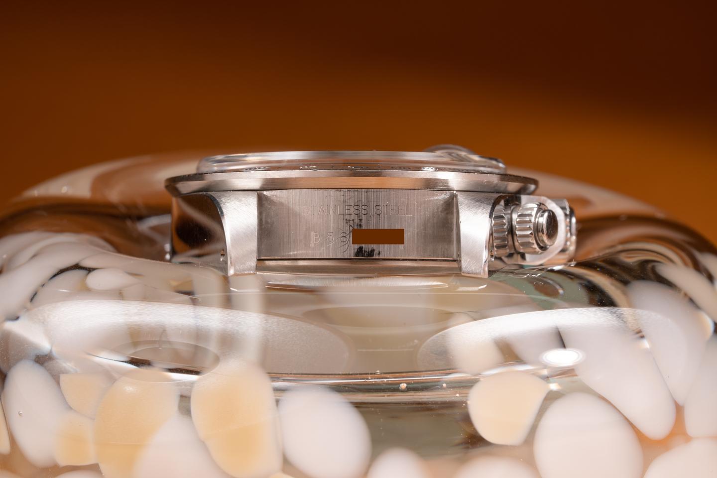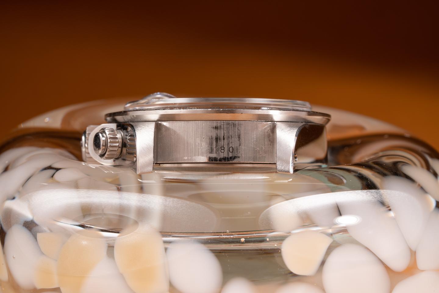 Case: The case has just returned from polishing showing sharp prominent bevels. The freshly polished stainless bezel is also in excellent condition.