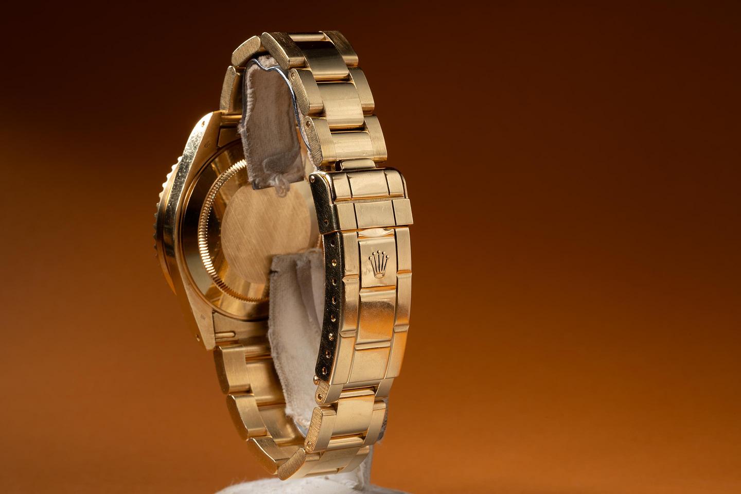 Bracelet: The 11 link 18K yellow gold Oyster bracelet is excellent showing only very light stretch for its age. The clasp is stamped with a matching 1994 date code.