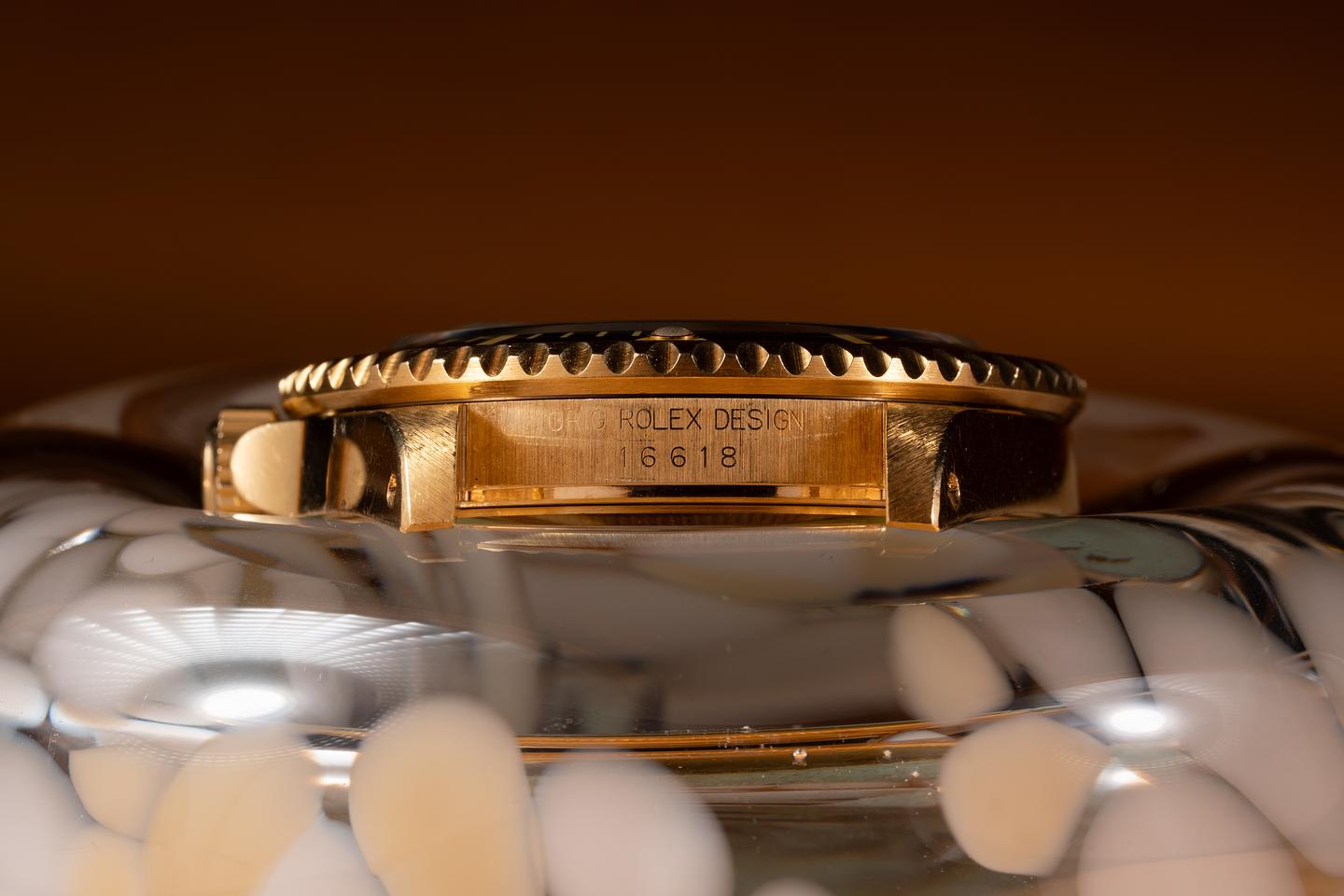 Bracelet: The 11 link 18K yellow gold Oyster bracelet is excellent showing only very light stretch for its age. The clasp is stamped with a matching 1994 date code.