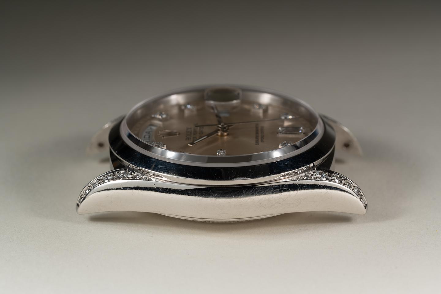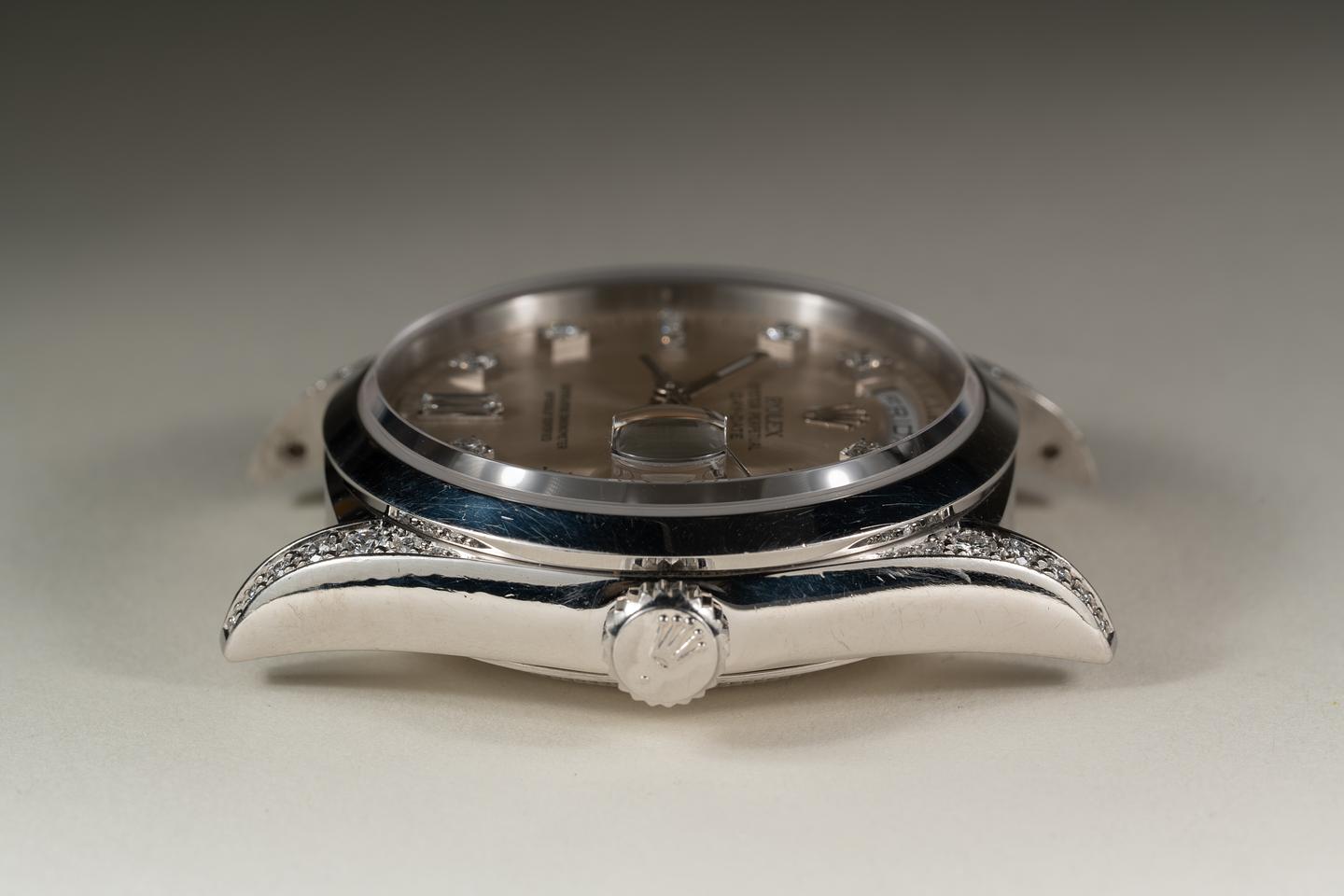 Case: The platinum and diamond case is excellent showing only very light wear from use. The smooth platinum bezel is also in excellent condition showing only light wear from use.