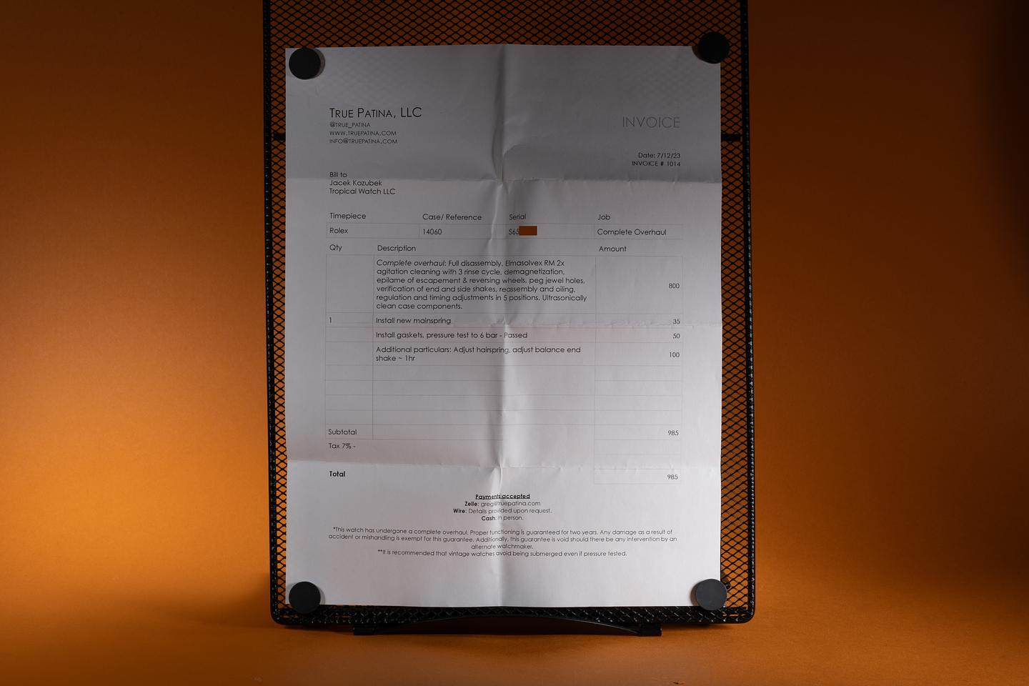 Accessories: Papers and July 2023 Service Papers from True Patina.