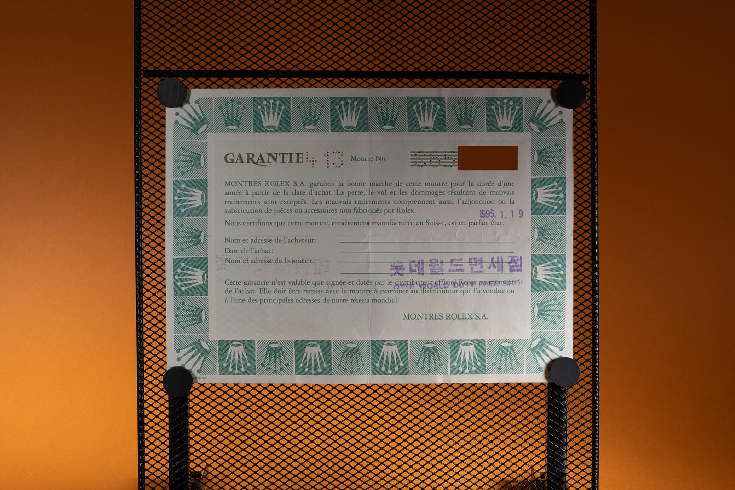 Bracelet: The 11 link Oyster bracelet is excellent showing only light stretch for its age. The clasp is stamped with a matching 1994 date code.