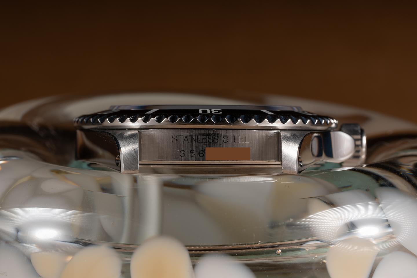 Case: The case is excellent showing only very light wear from use. The bezel insert has faded to a dark navy blue hue and shows only light wear from use.