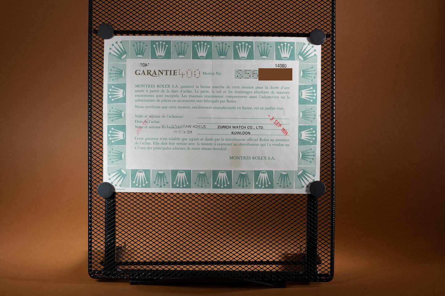 Bracelet: The 11 link oyster bracelet is excellent showing only light stretch for its age. The clasp is stamped with a matching 1994 date code.