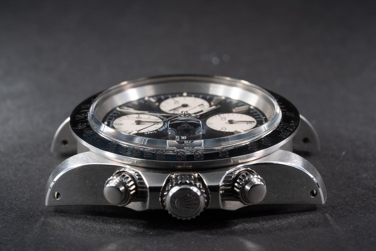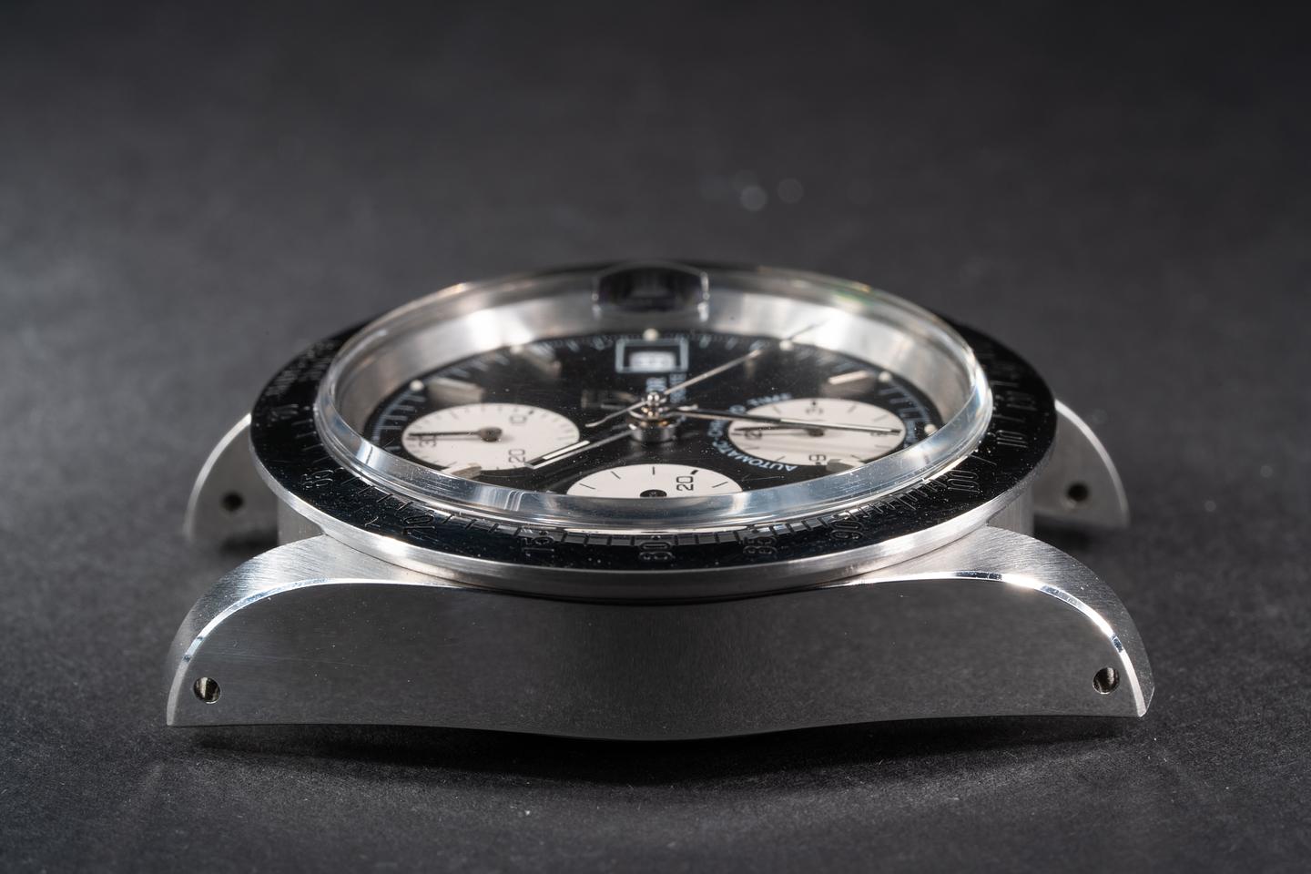 Case: Excellent case with sharp prominent bevels. The case shows only some extremely light shop wear. The stainless bezel is also in overall excellent showing only extremely light shop wear. there is some scuffing present around the 150 index.