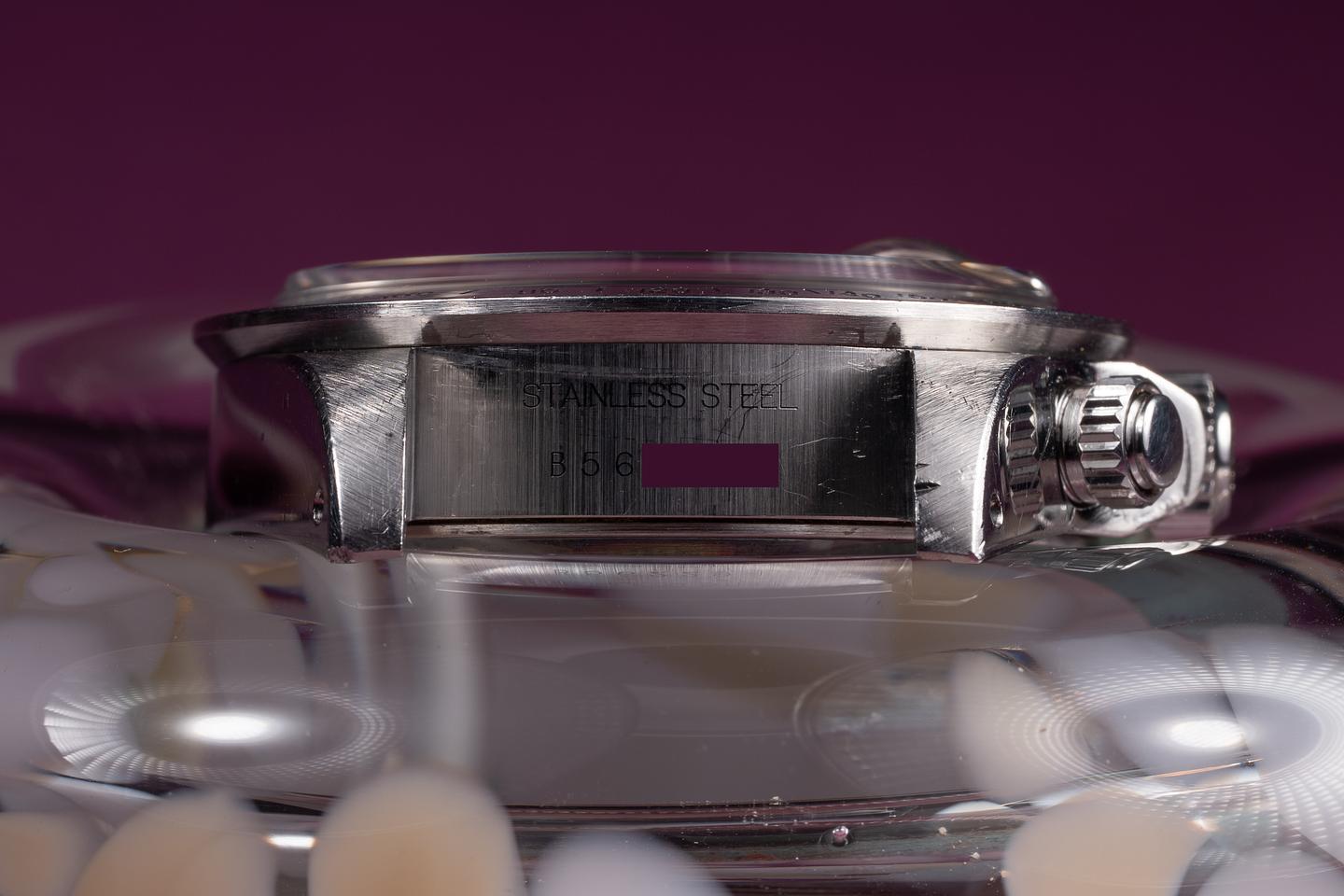 Case: The unpolished 40mm case is excellent, showing light to average wear from use. The stainless bezel is also in excellent condition, showing only light wear from use.